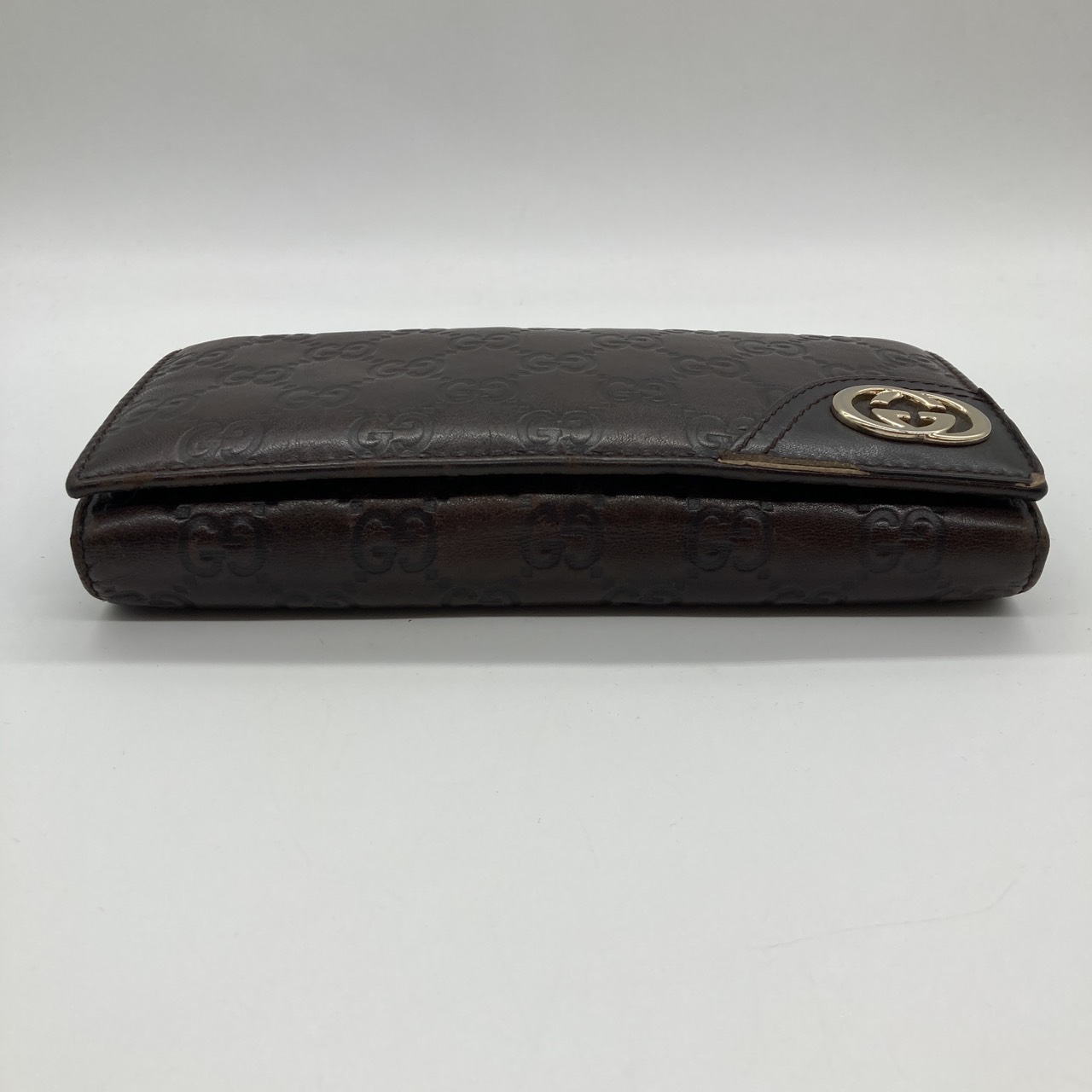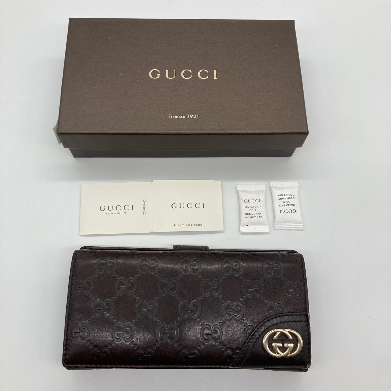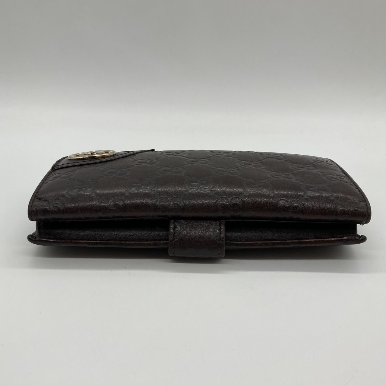 グッチシマ レザー 二つ折り長財布 インターロッキングG ブラウン系 181593