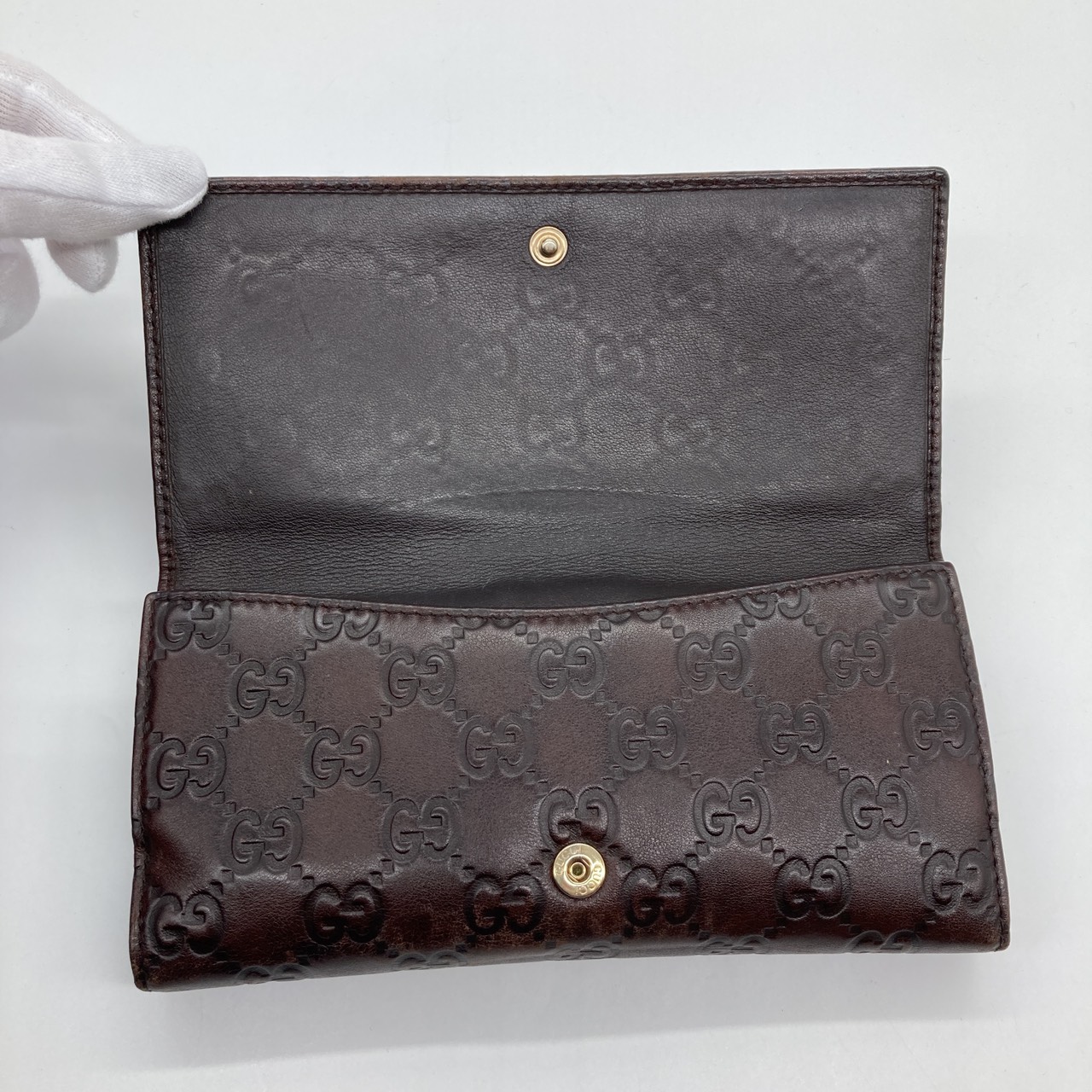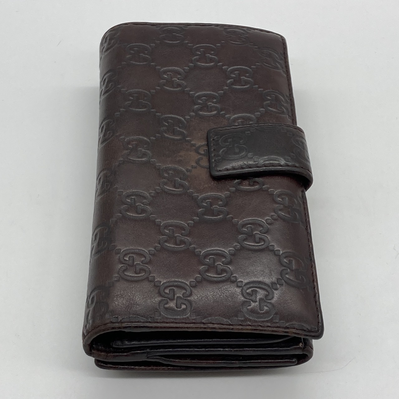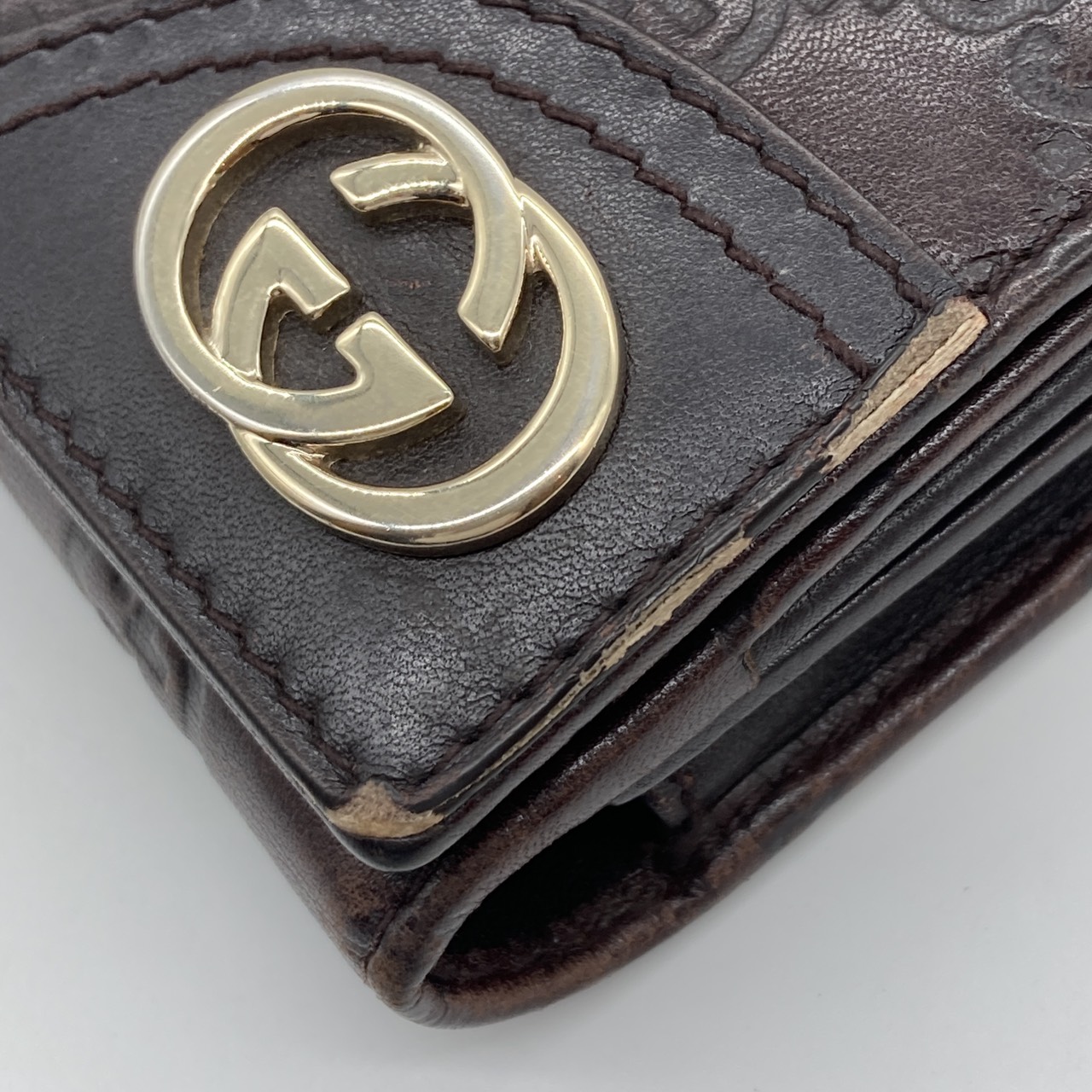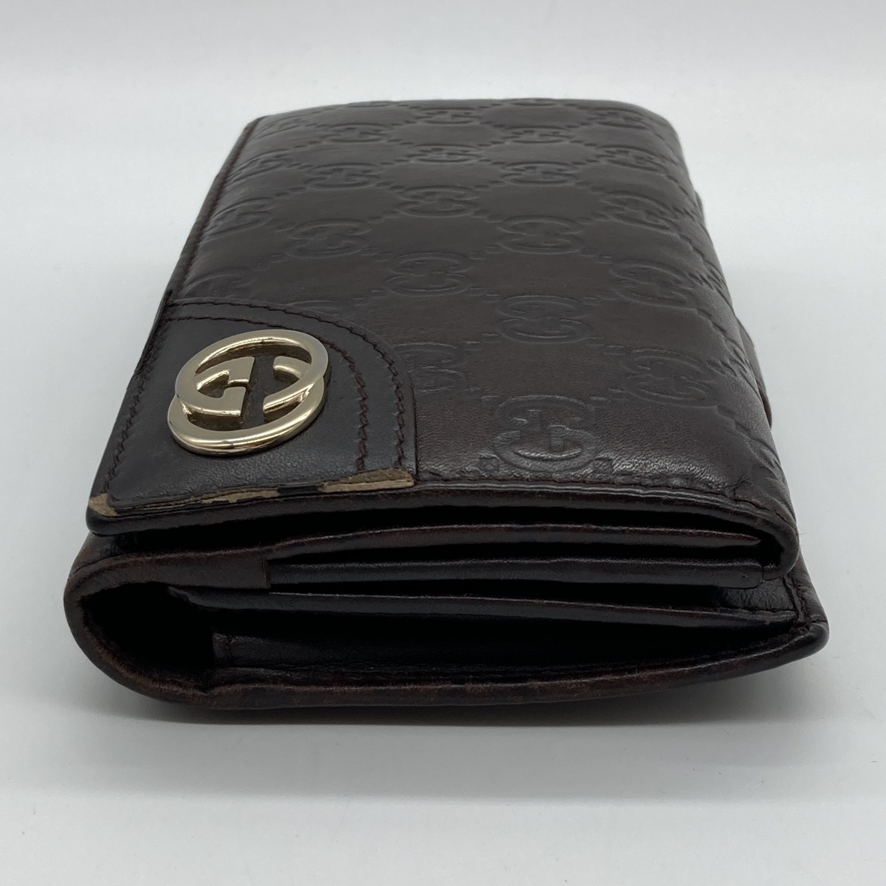 グッチシマ レザー 二つ折り長財布 インターロッキングG ブラウン系 181593