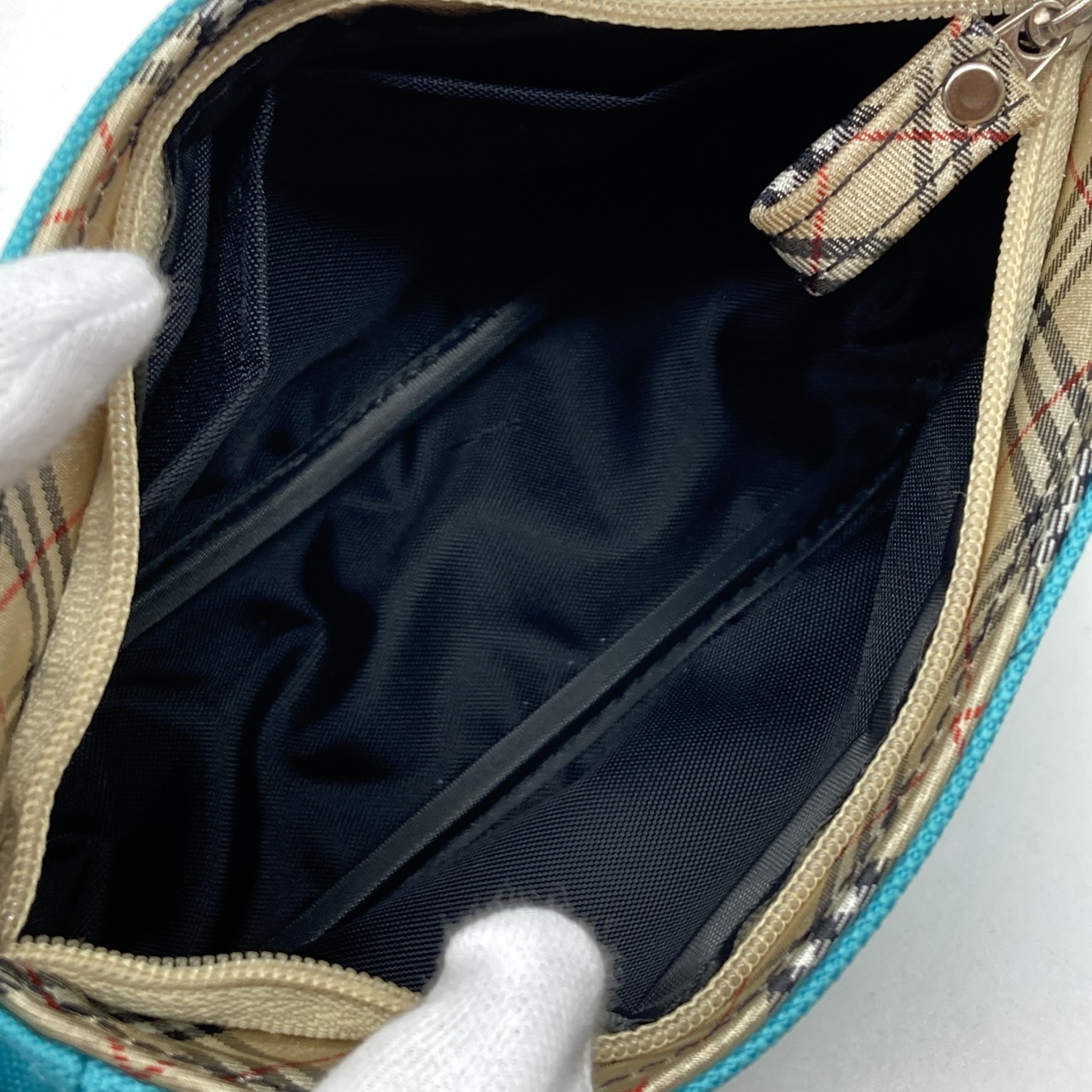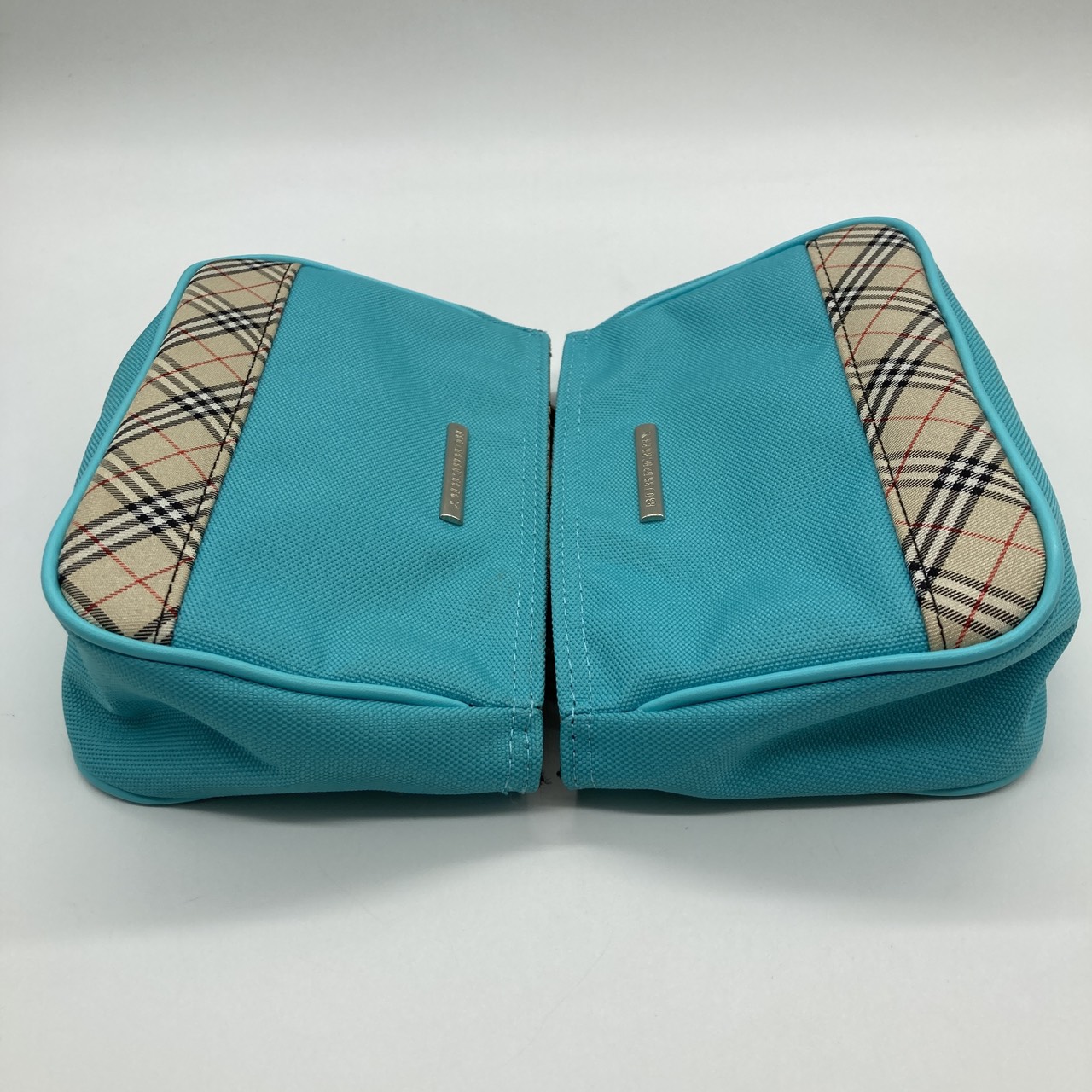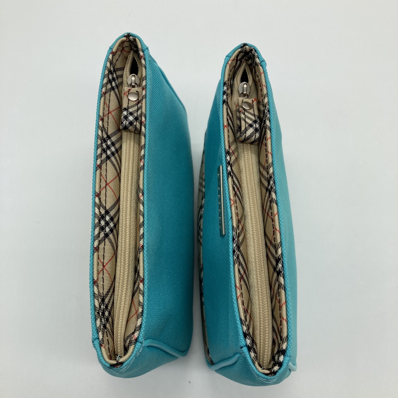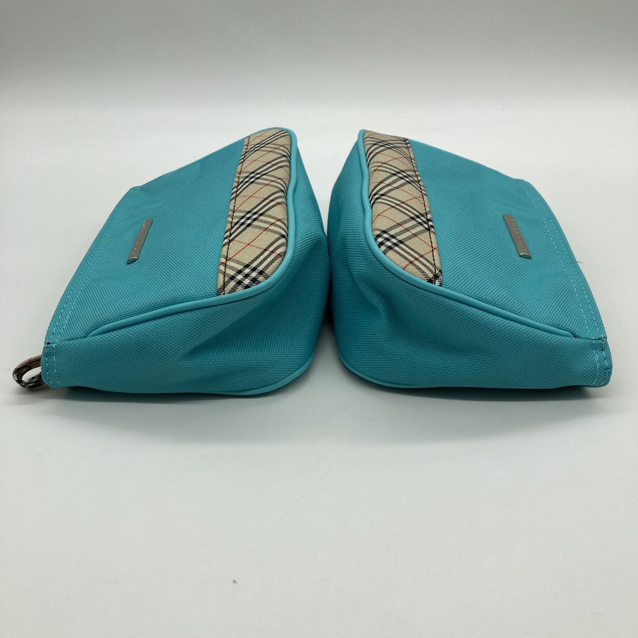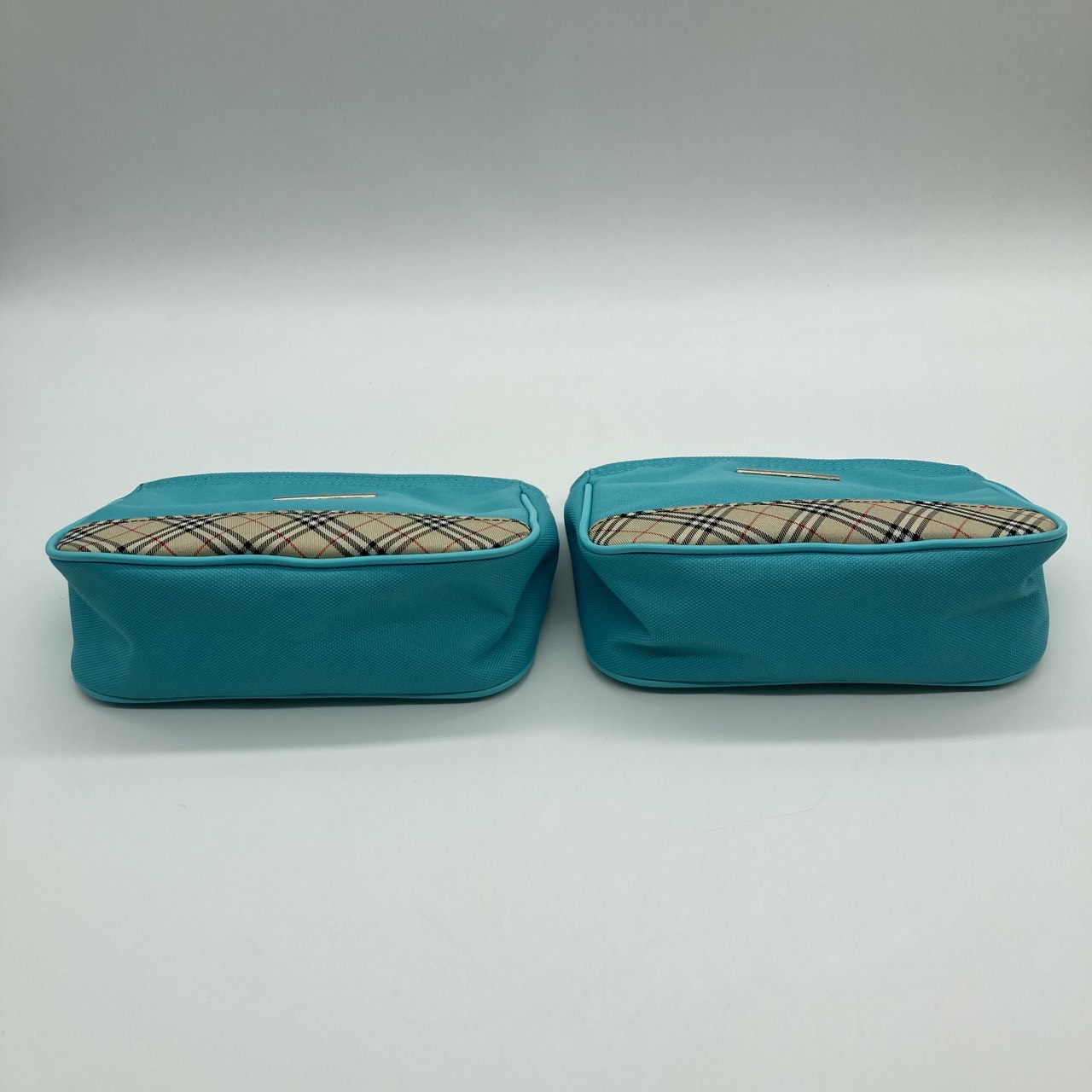 ノバチェック キャンバス ポーチ ブルー系 2点
