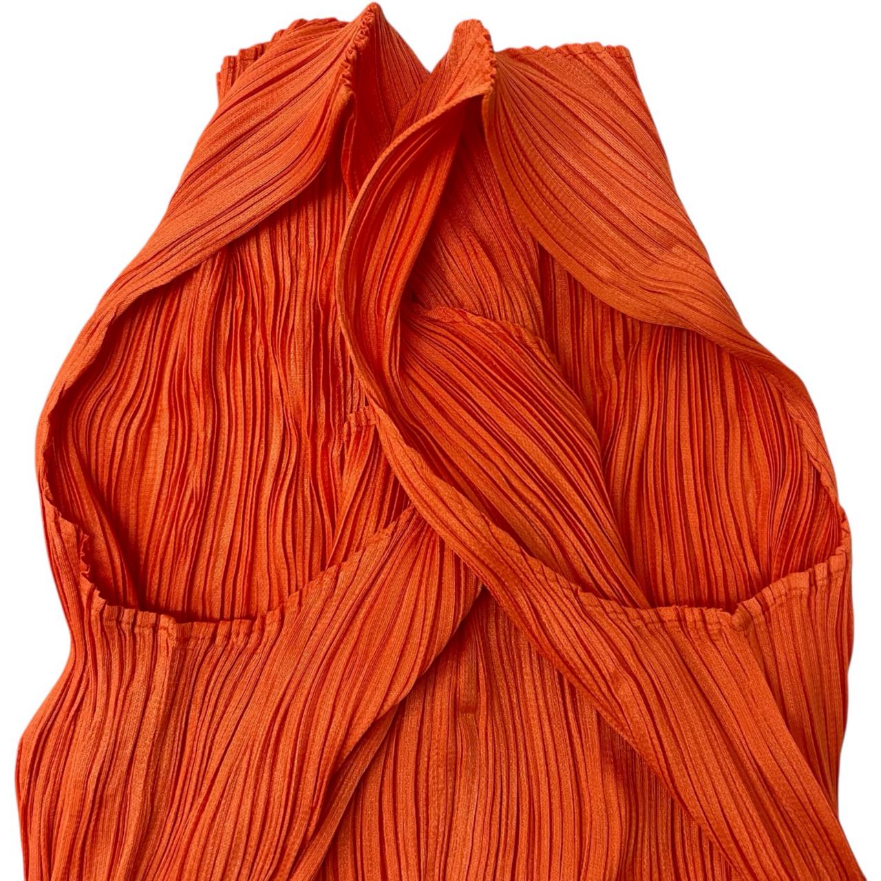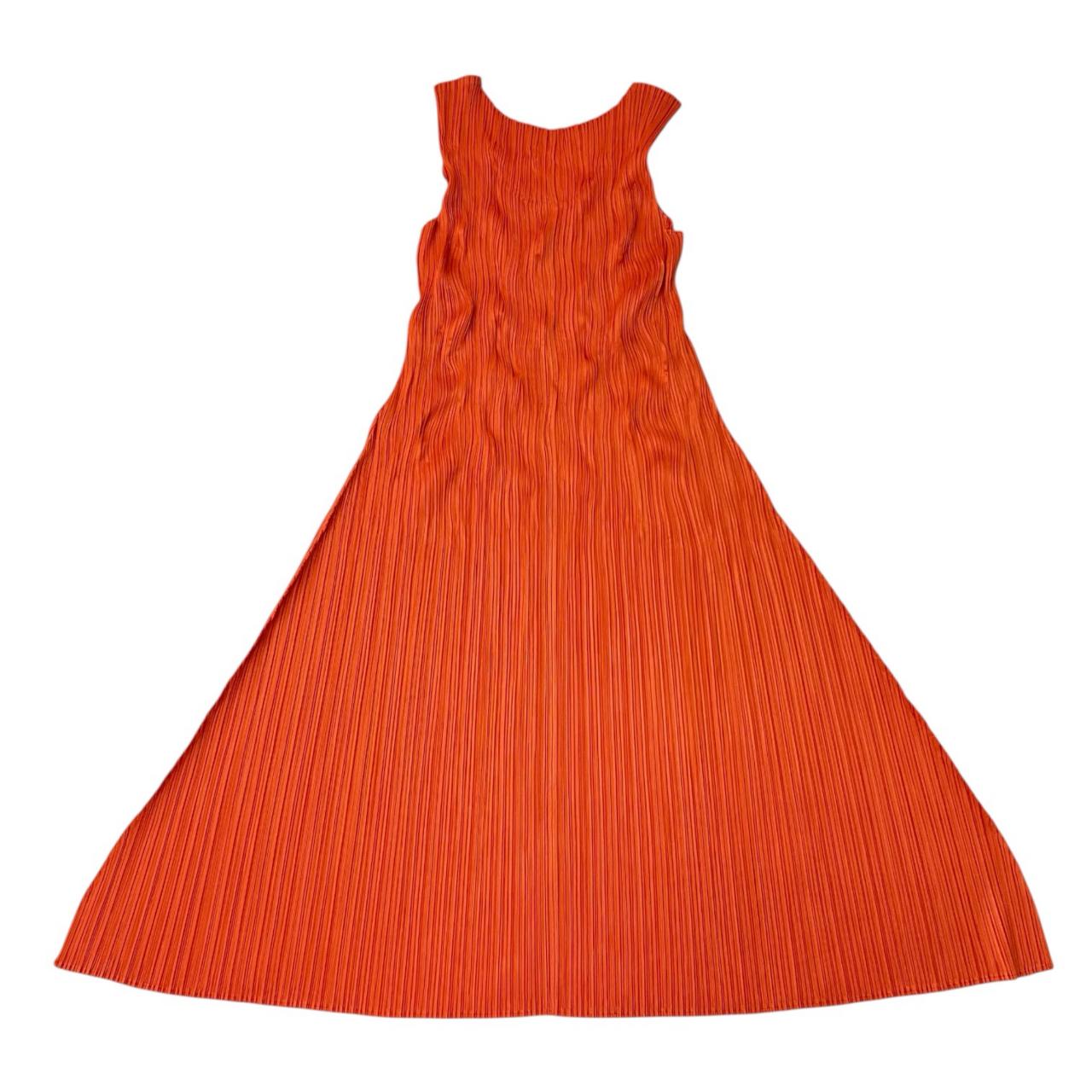 ISSEY MIYAKE イッセイミヤケ PLEATS PLEASE ISSEY ノースリーブ ひざ丈 ワンピース ドレス PP11-JH582 オレンジ系 サイズ4 レディース