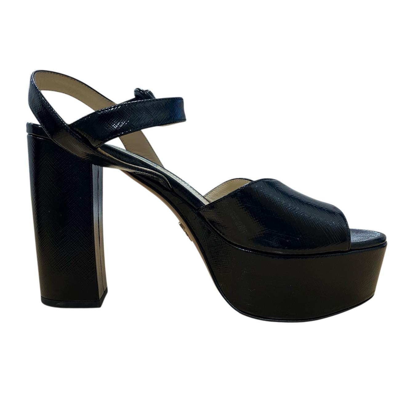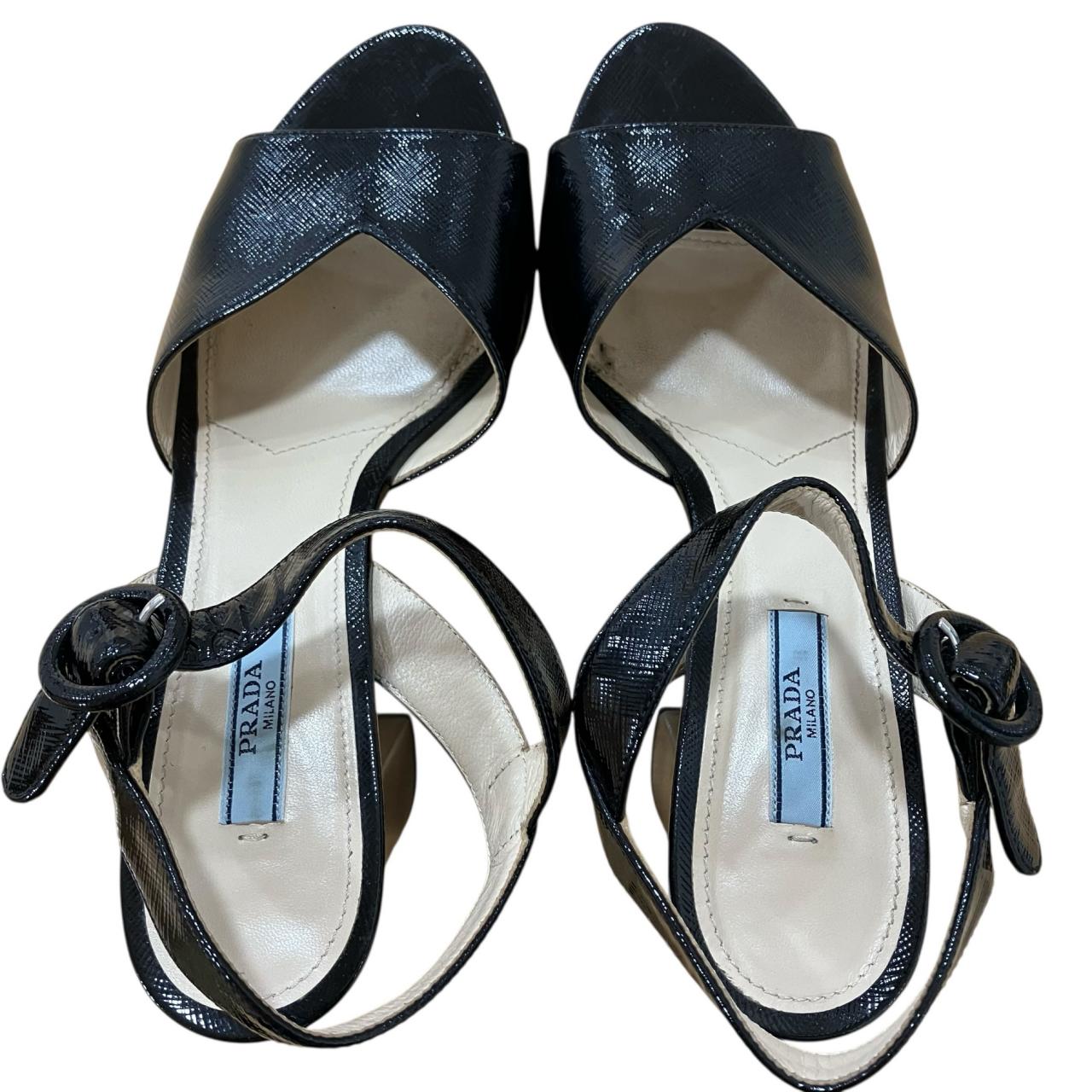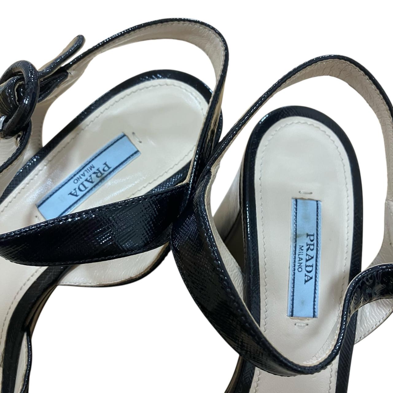 パテントレザー ヒール ストラップ サンダル ブラック サイズ36 1/2