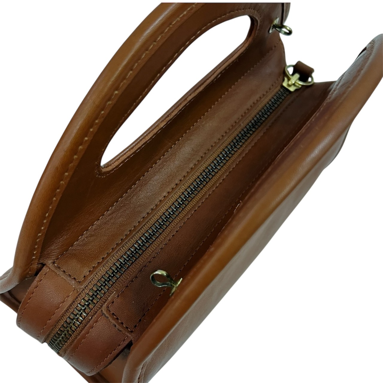 2WAY レザー ハンドバッグ ショルダーストラップ付き ブラウン系 9942