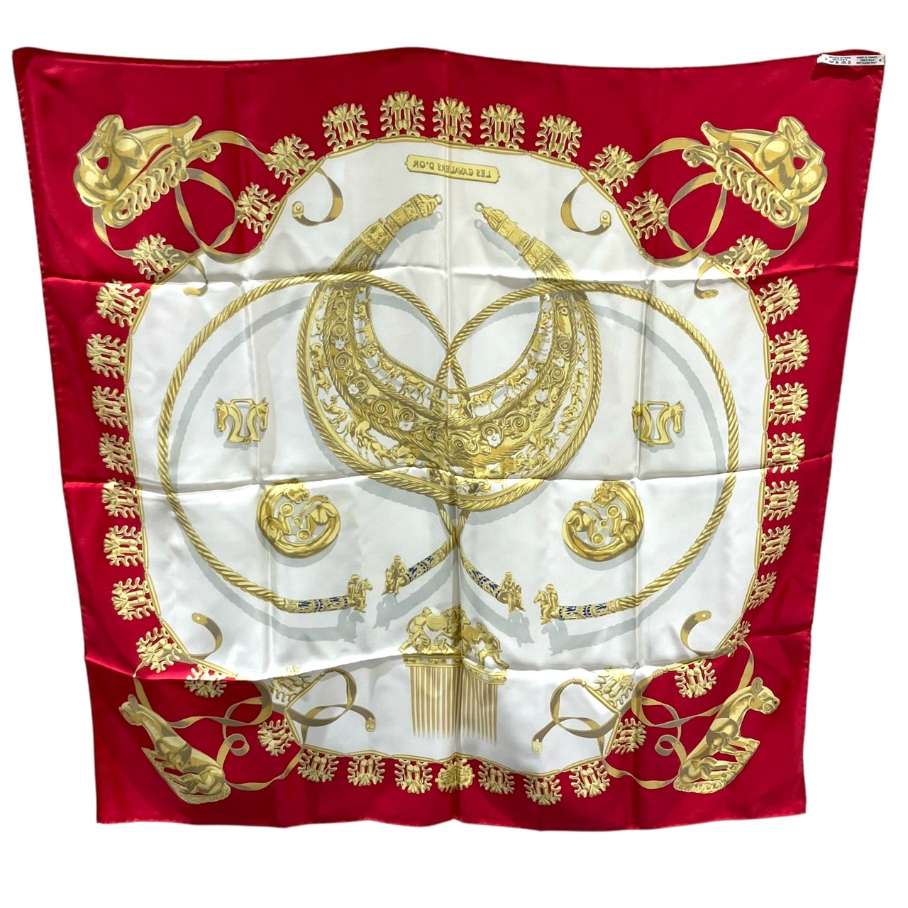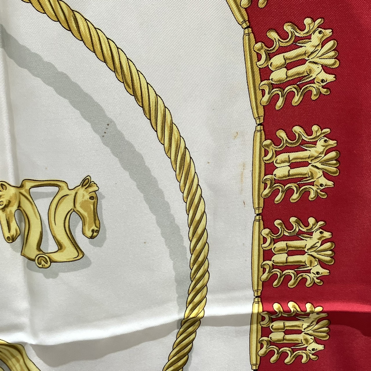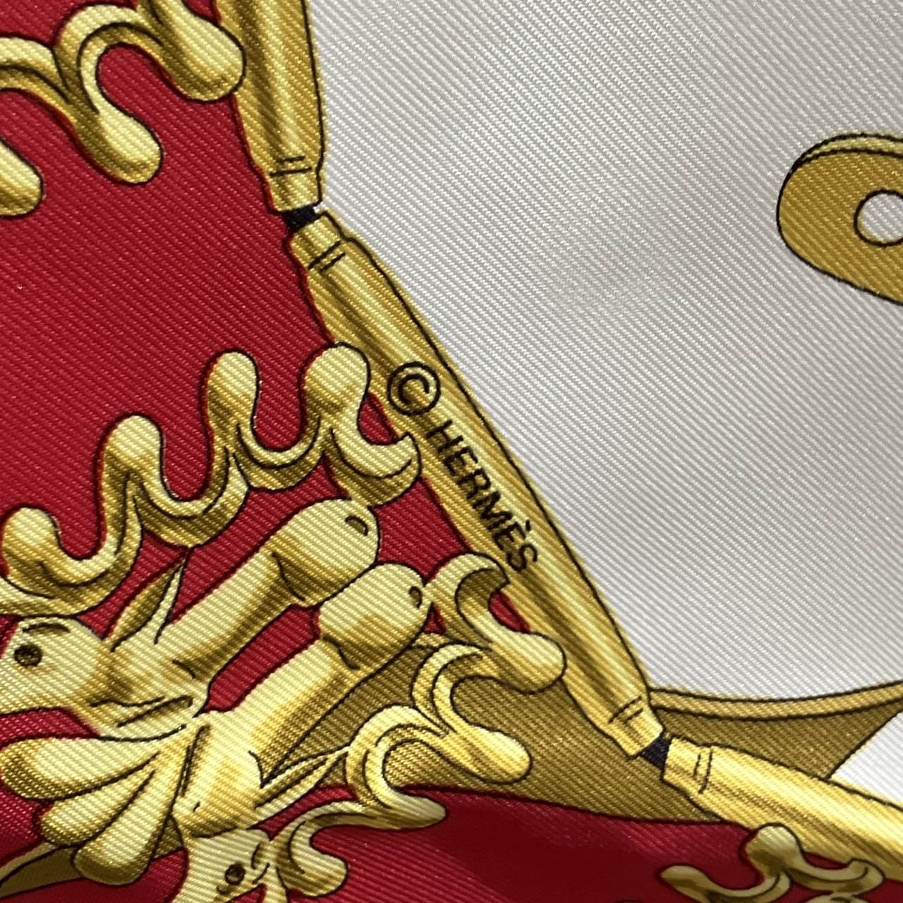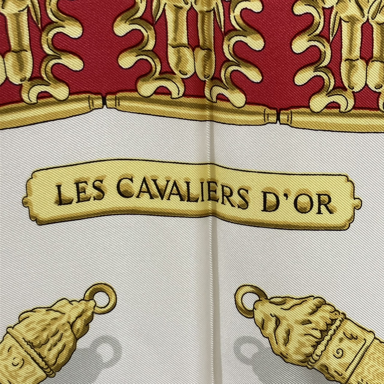LES CAVALIERS D’OR 黄金の騎士 カレ90 シルク100% レッド スカーフ