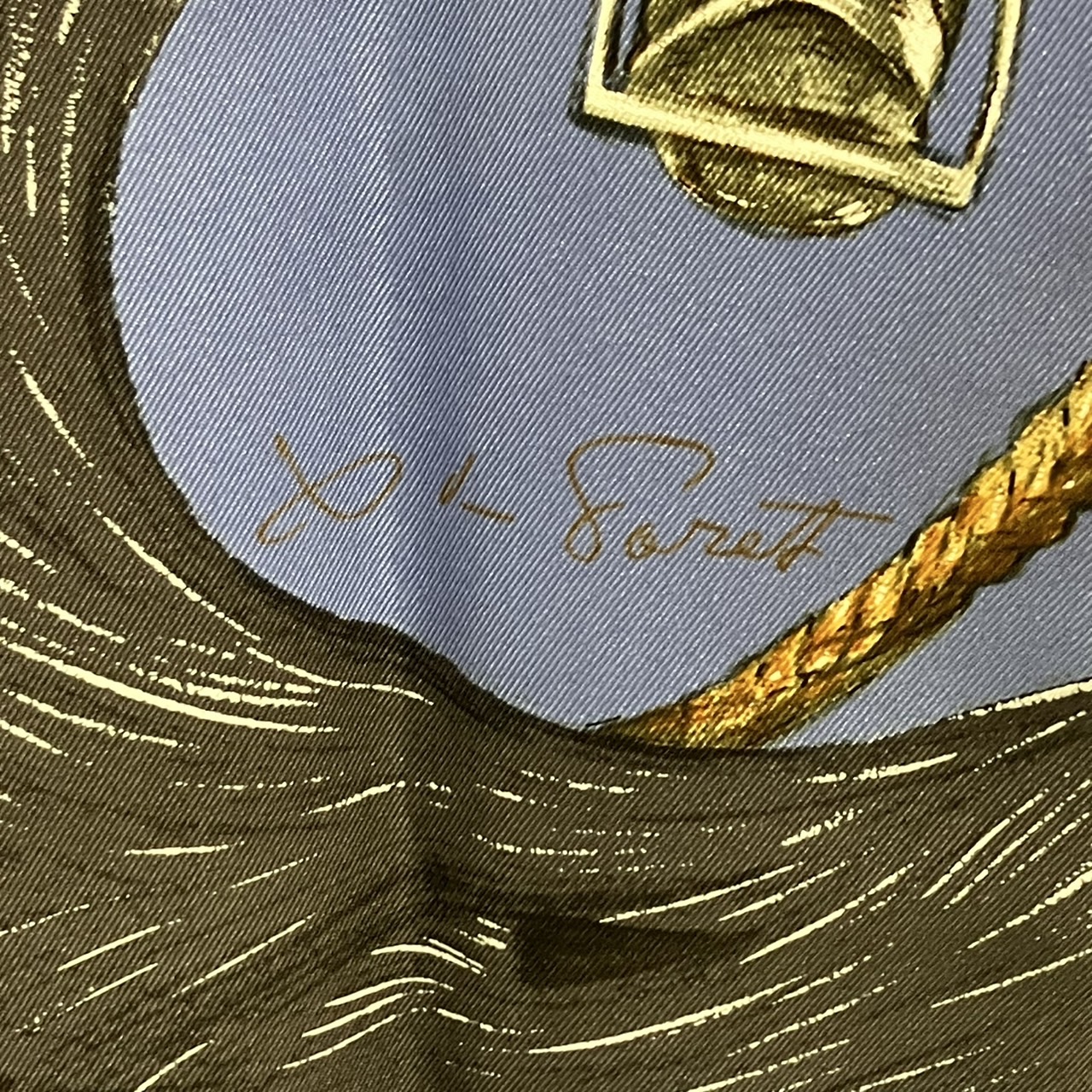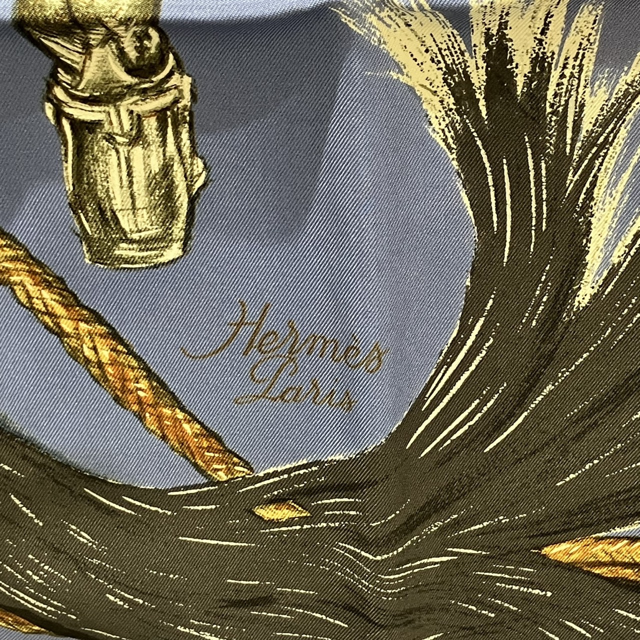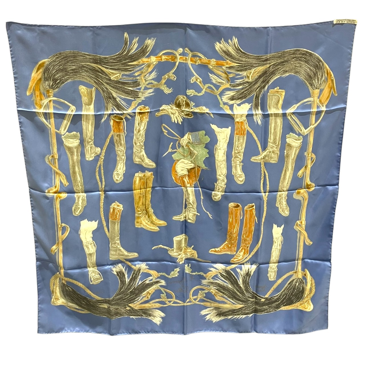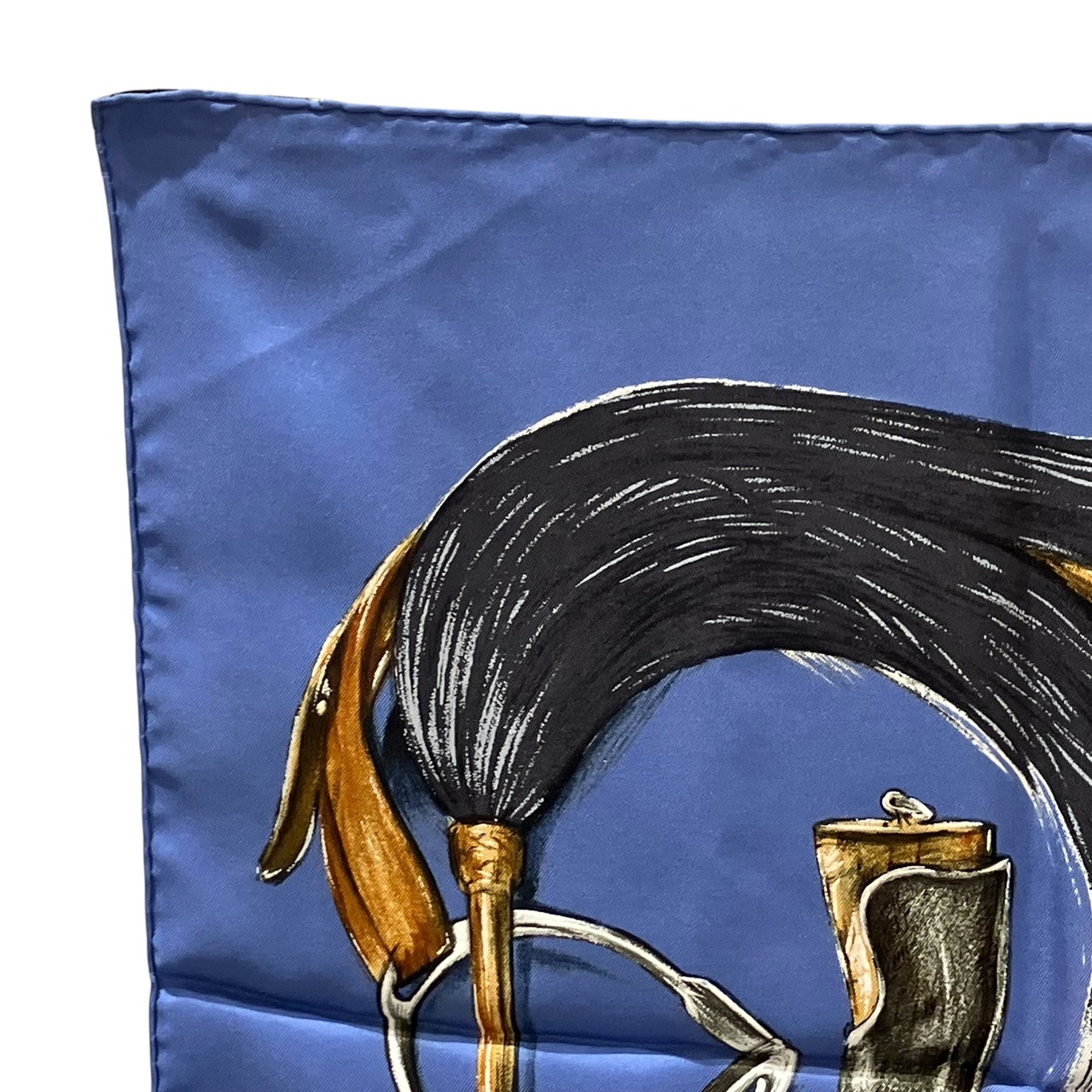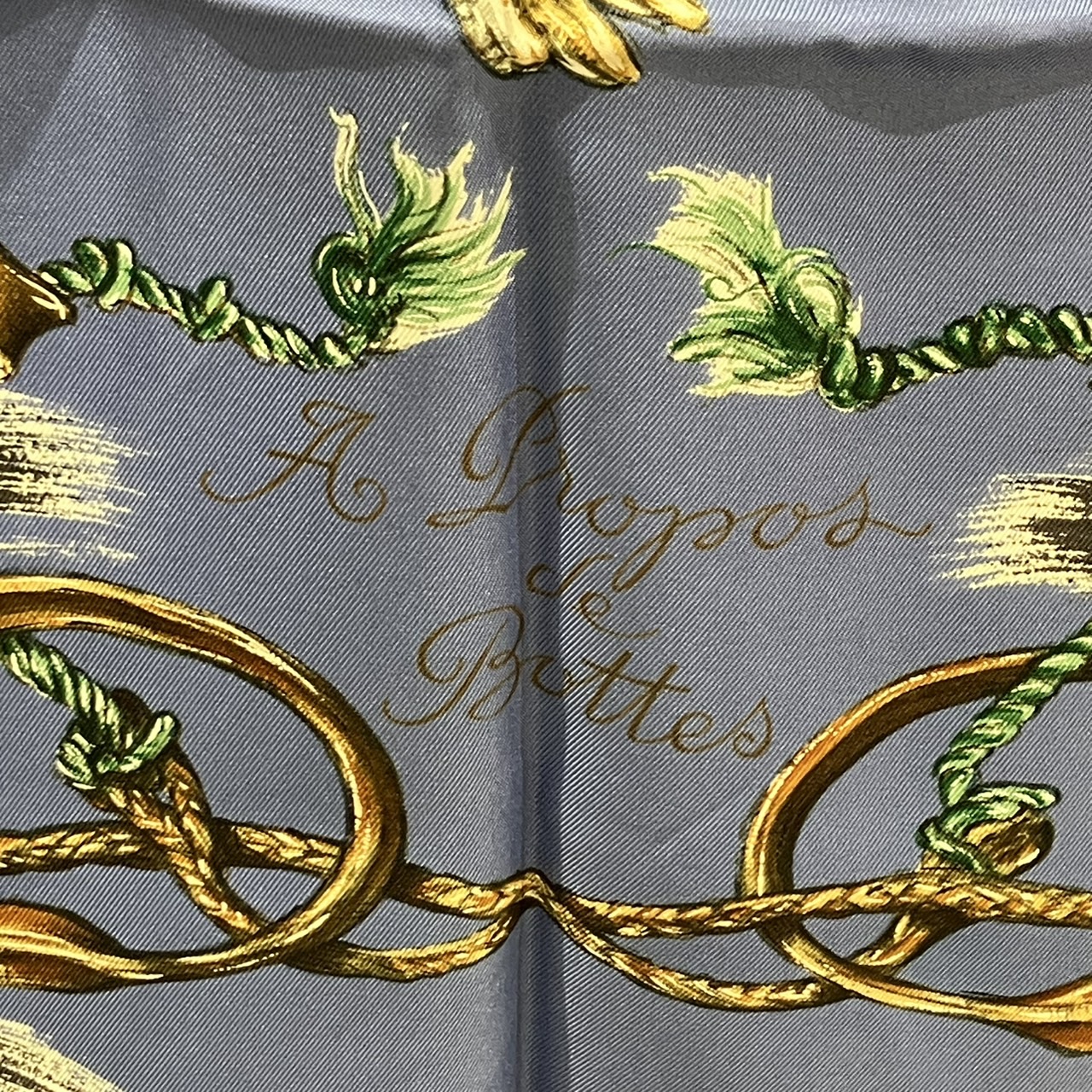 美品 A Propos de Bottes ブーツについて カレ90 シルク100% ブルー系 スカーフ