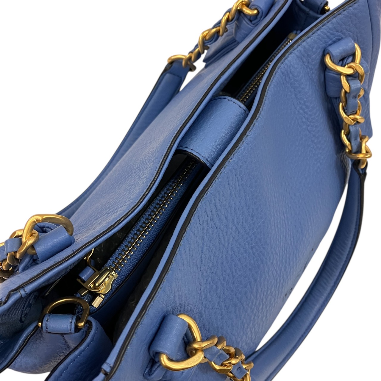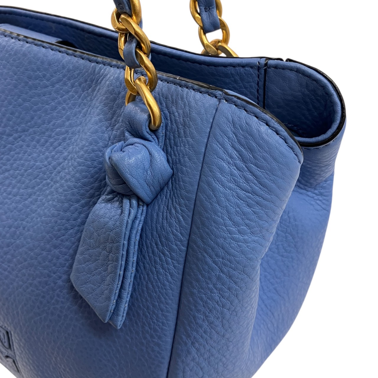 ブルー ロゴ ソフト 本革 2WAY チェーン ショルダーバッグ