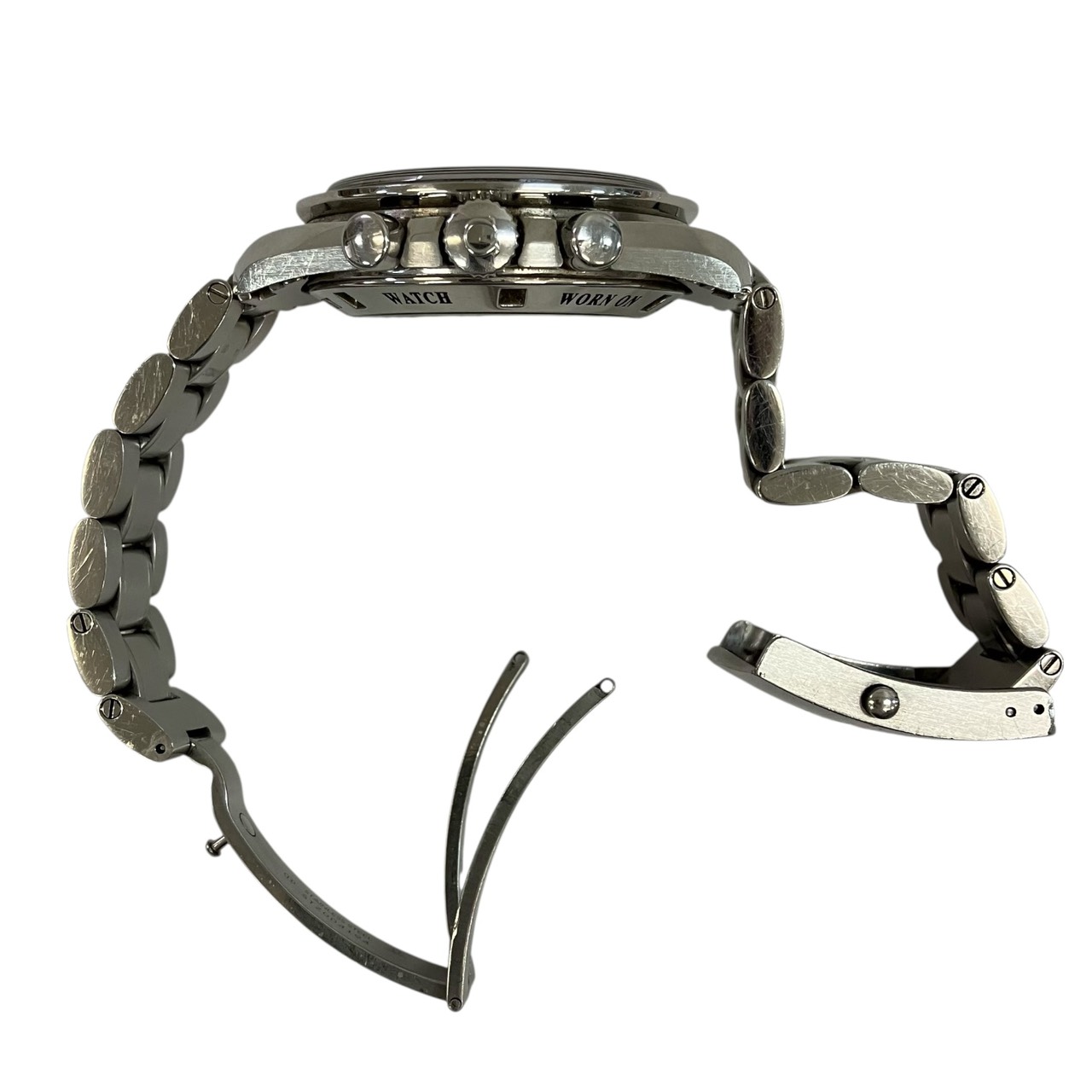備考:稼働。 小傷、スレ、汚れ。 ベルト破損。 風防に傷、カケなし。 特殊機構及び、日差等の確認は行なっておりませんのでご了承ください。 ※時計について、経年劣化や素材の脆弱性により、購入後に損傷や不具合が生じる可能性があります。修理・調整・部品交換等が必要となった場合、その費用や責任は弊社では負えず、落札者様のご負担となります。■商品の情報