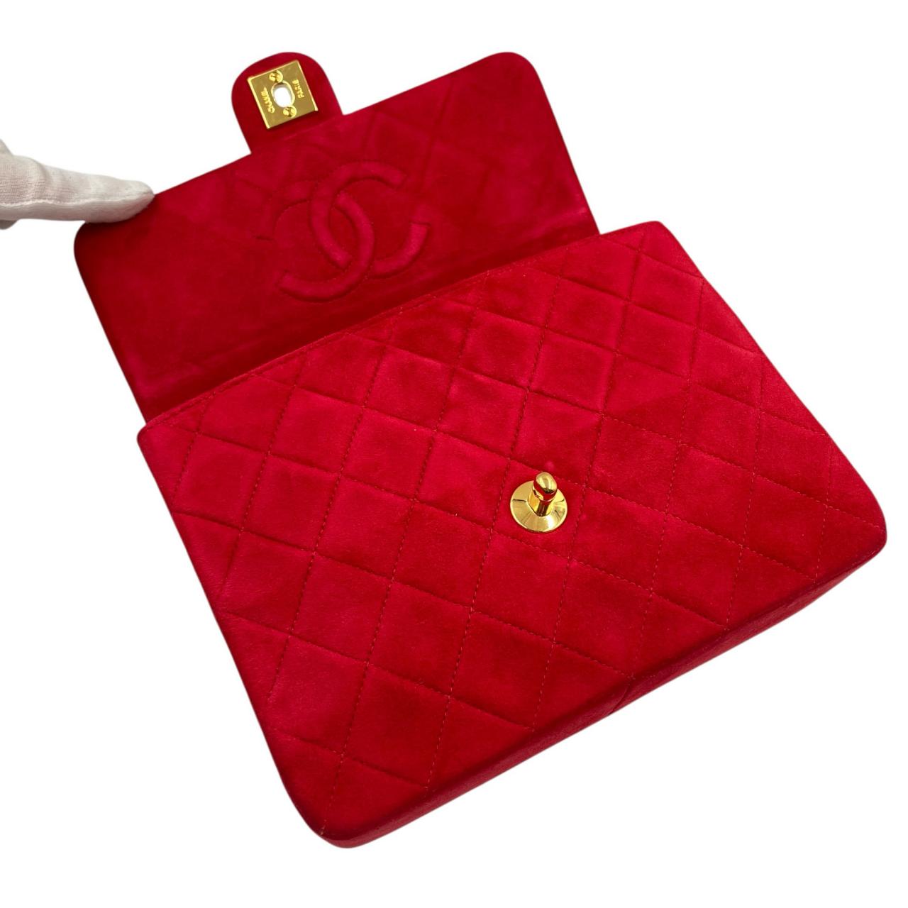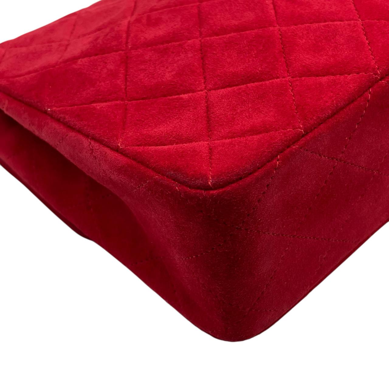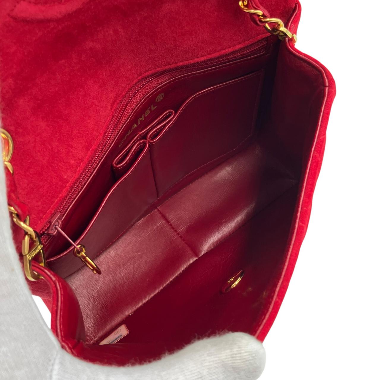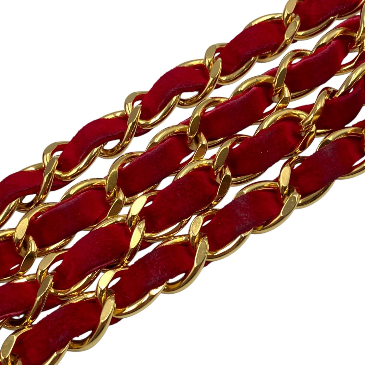 ミニマトラッセ ターンロック チェーンショルダーバッグ Sチェーン/Sフラップ スエード ゴールド金具 レッド系 2番台
