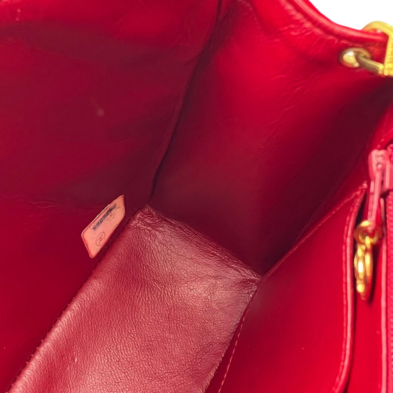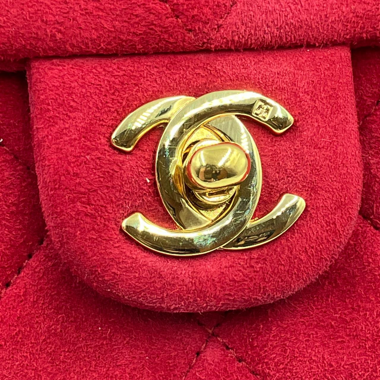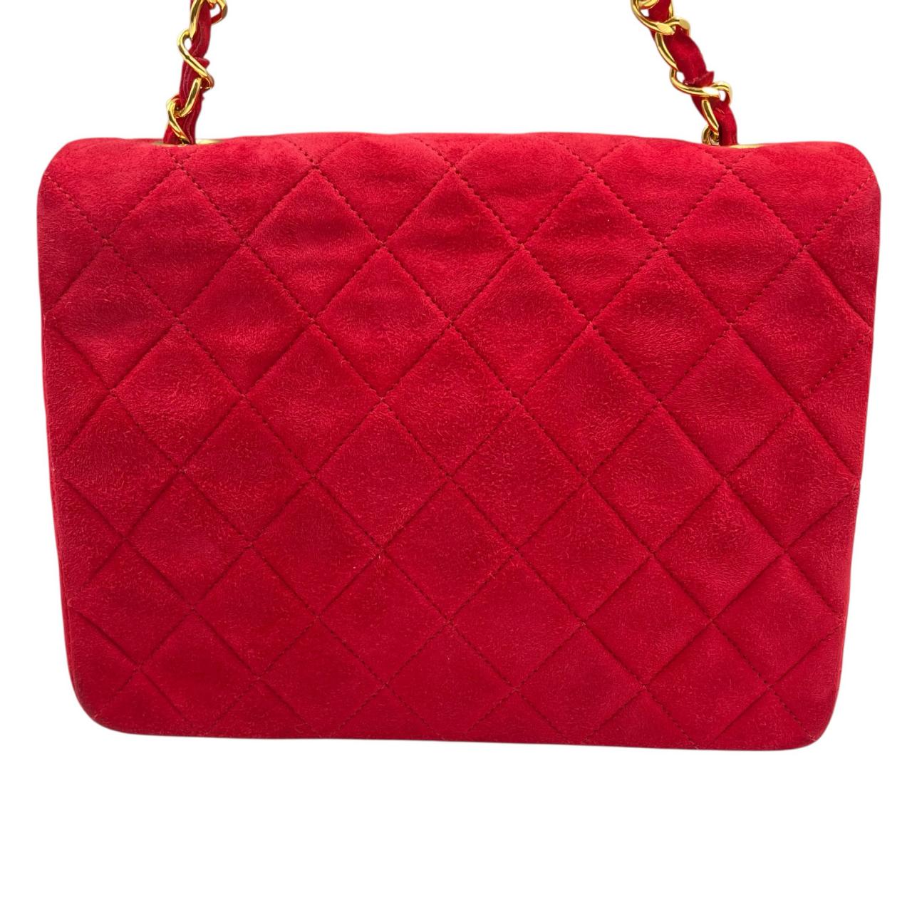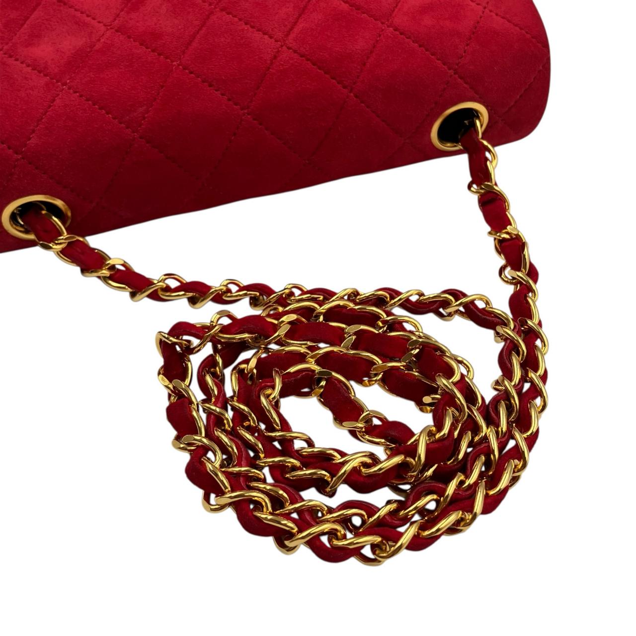 ミニマトラッセ ターンロック チェーンショルダーバッグ Sチェーン/Sフラップ スエード ゴールド金具 レッド系 2番台