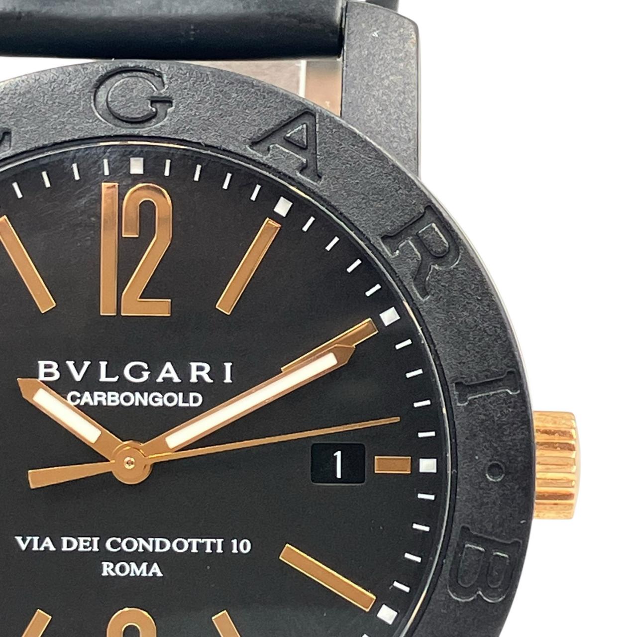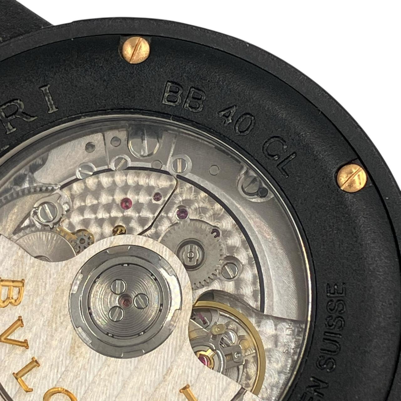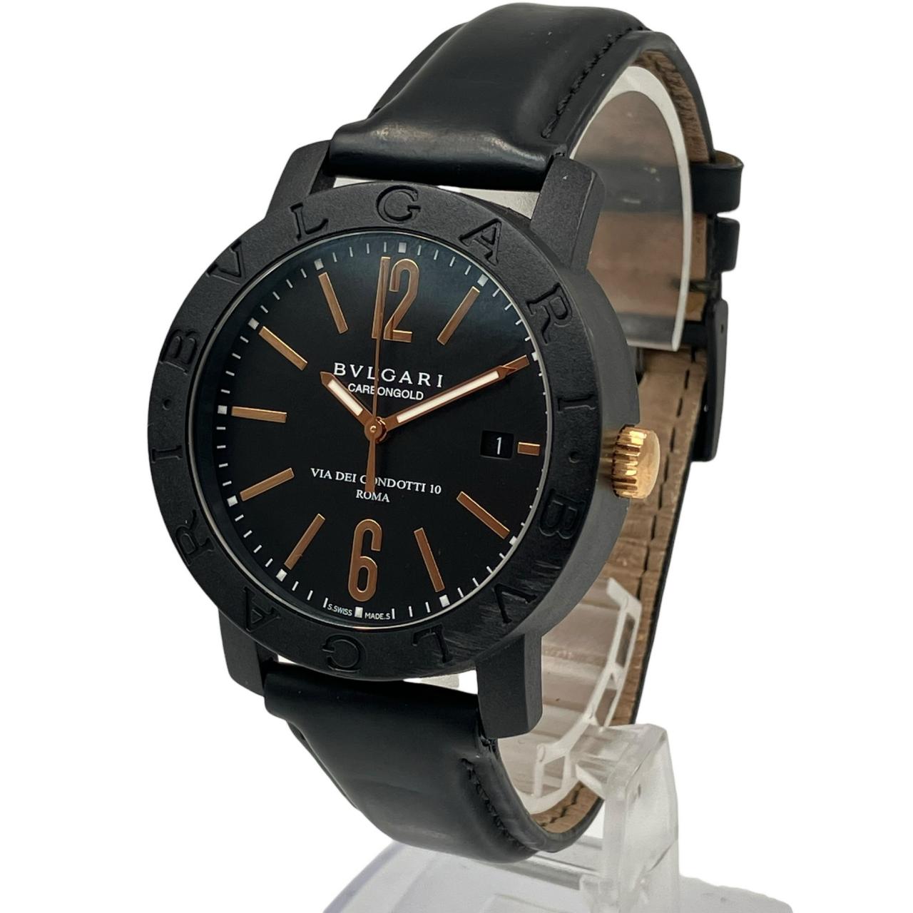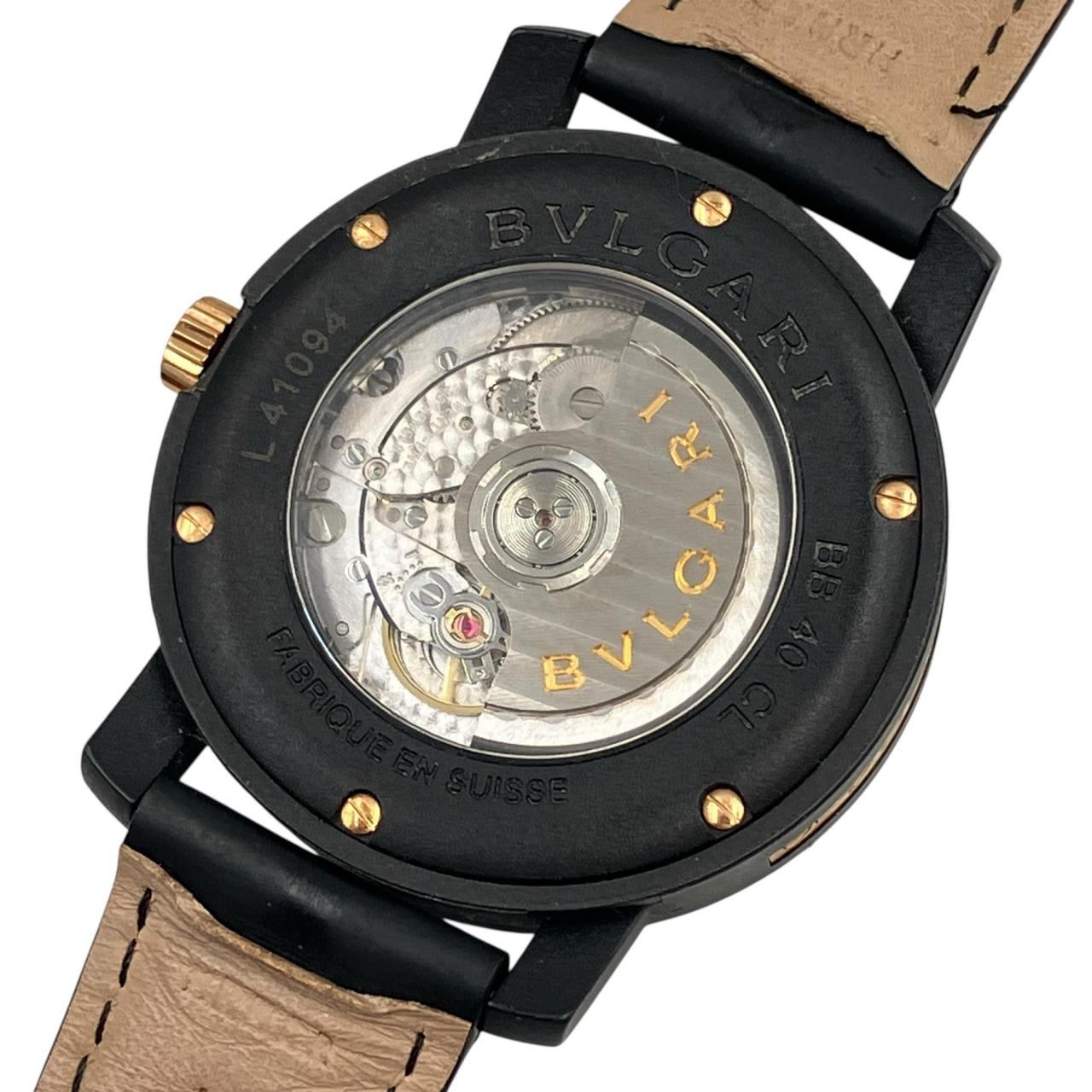 ブルガリブルガリ カーボンゴールド デイト 自動巻き 黒文字盤 裏スケ 革ベルト 稼動確認済み 腕時計 BB40CL