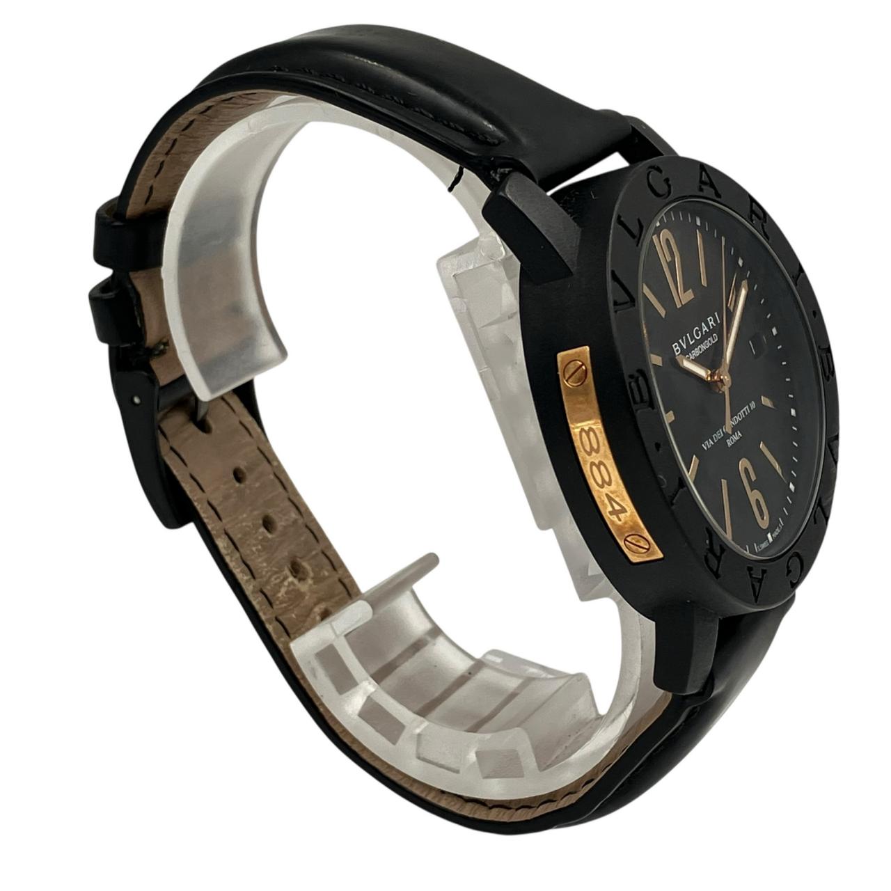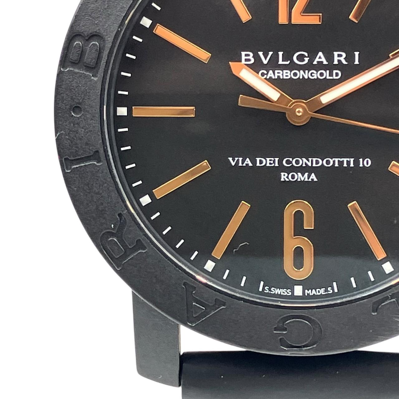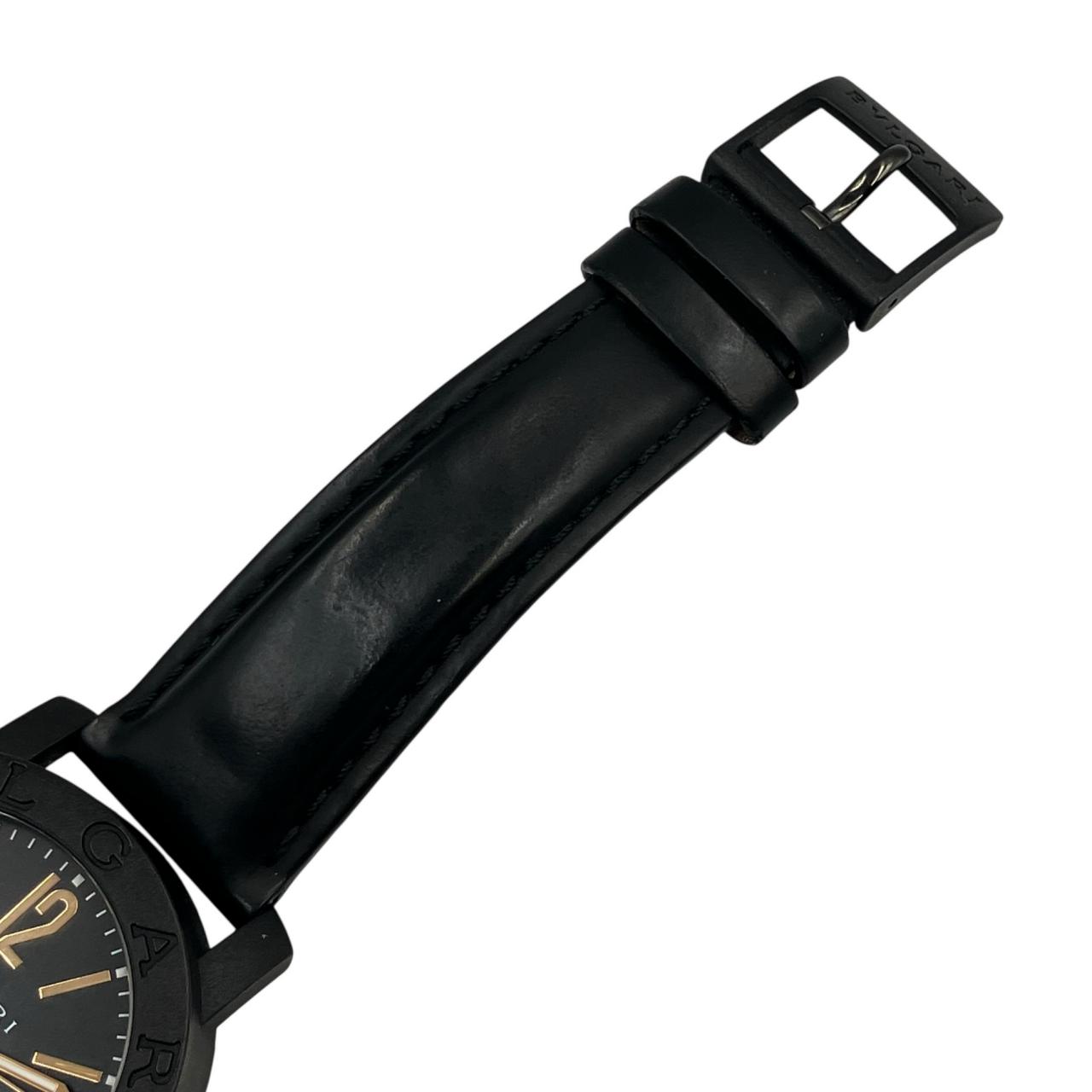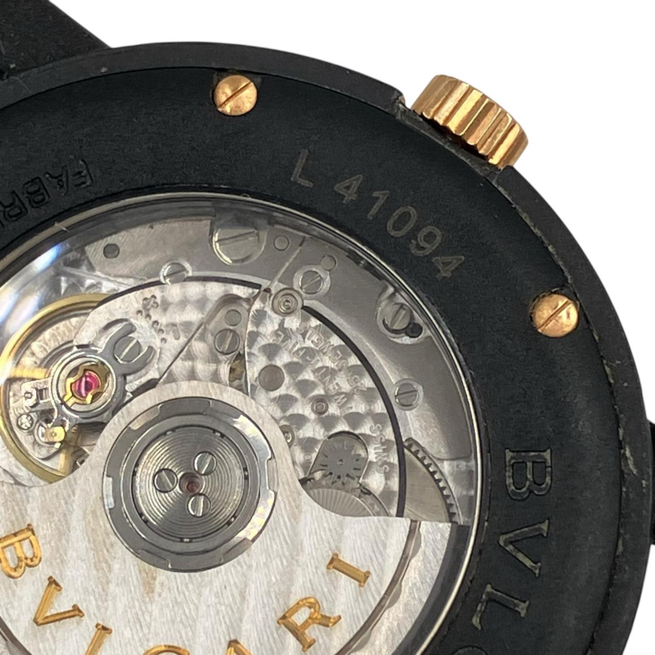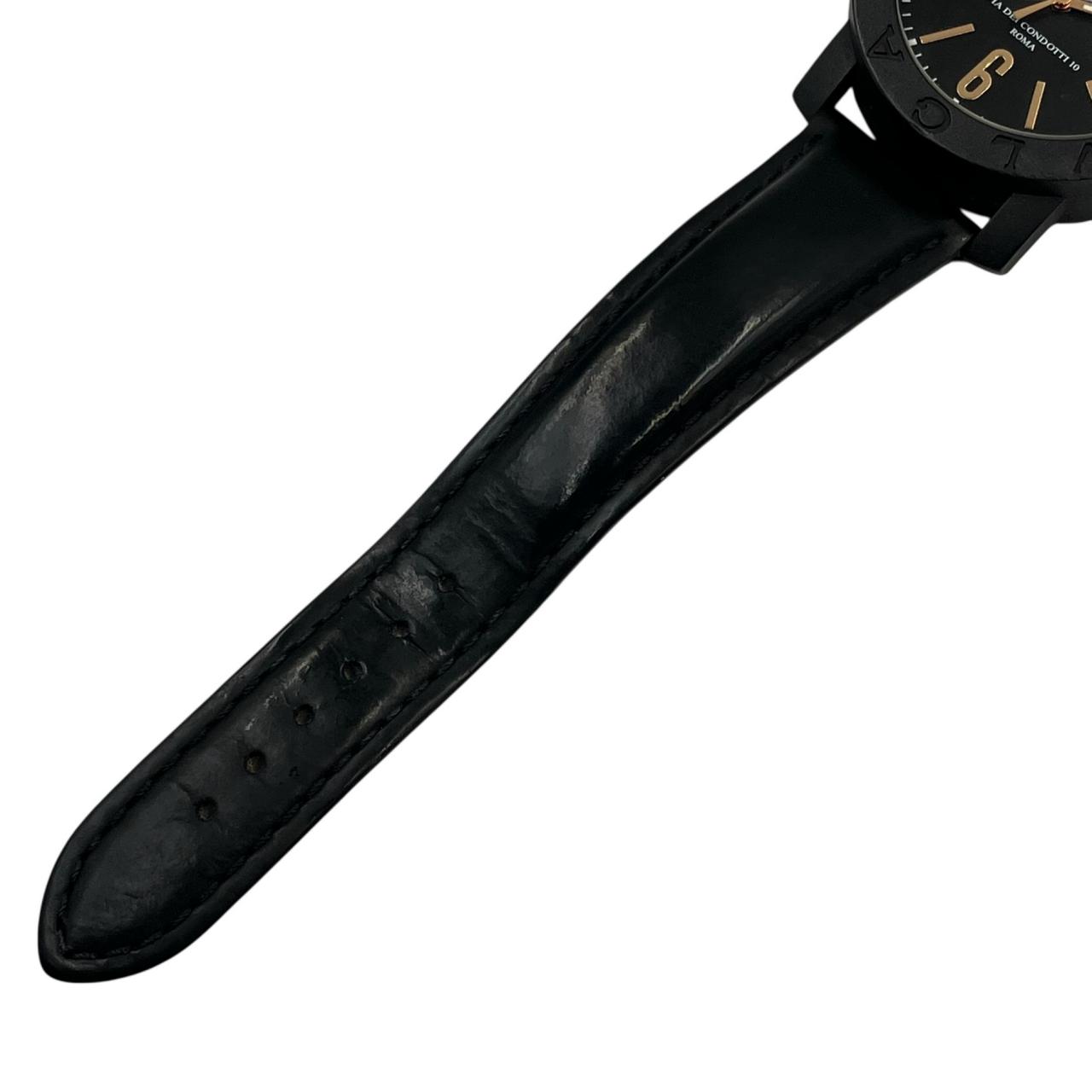 ブルガリブルガリ カーボンゴールド デイト 自動巻き 黒文字盤 裏スケ 革ベルト 稼動確認済み 腕時計 BB40CL