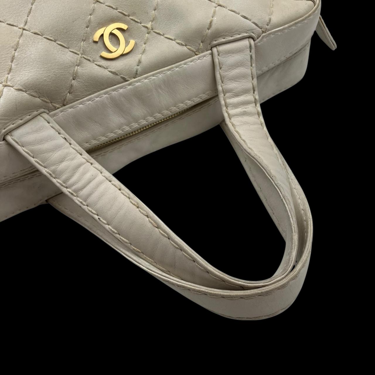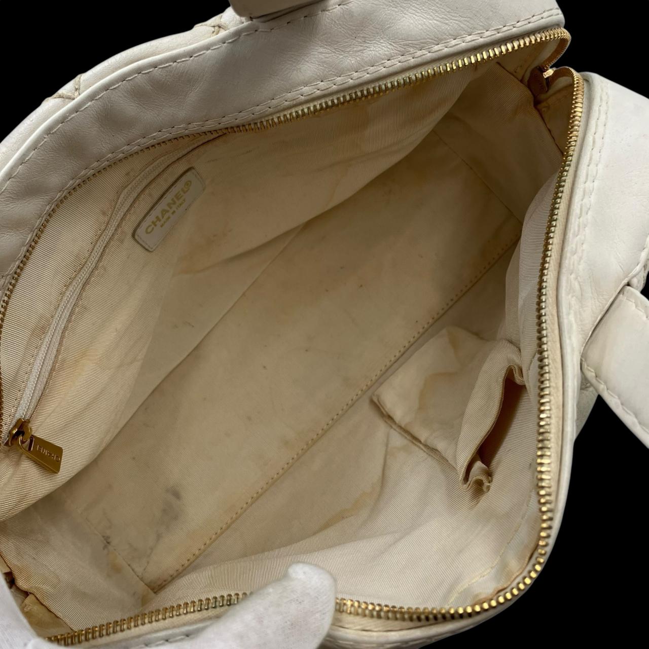 ワイルドステッチ ハンドバッグ ラムスキン ホワイト系 6番台
