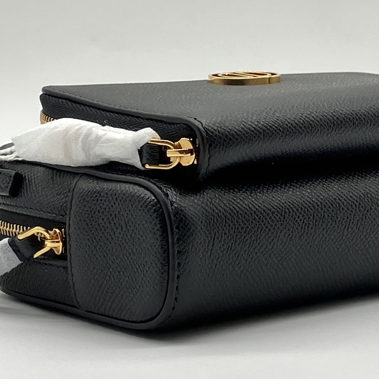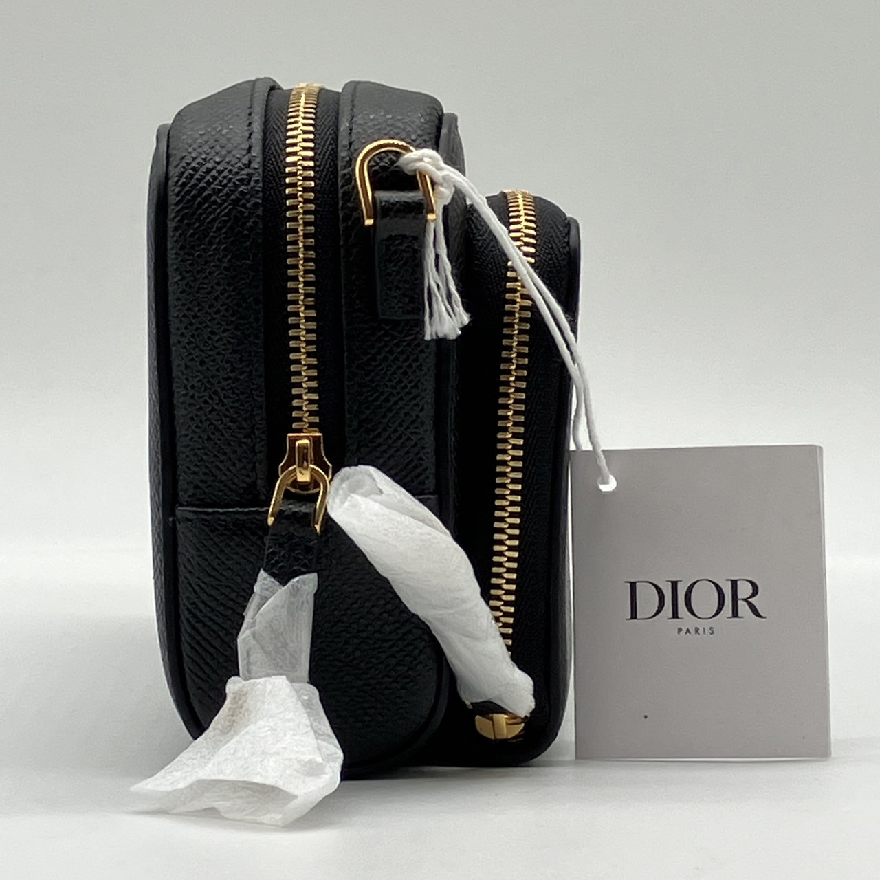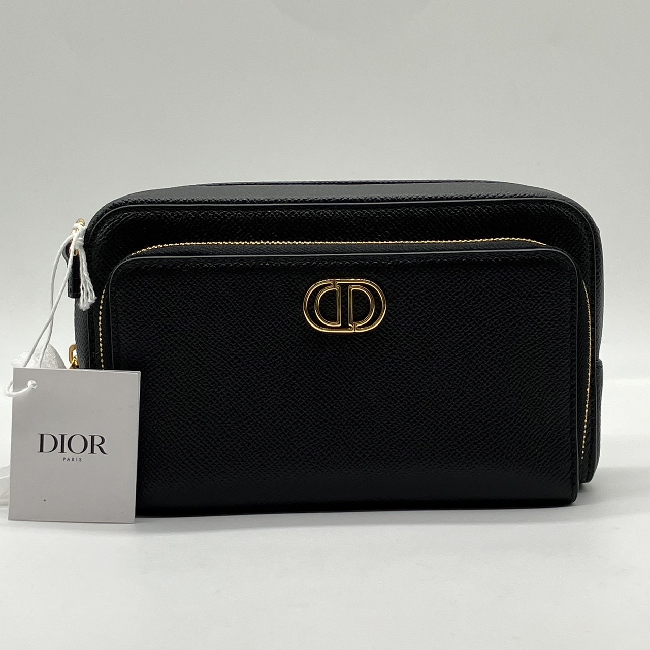 Dior Caro Double Pouch S7431UBAE Black Shoulder Bag Women's