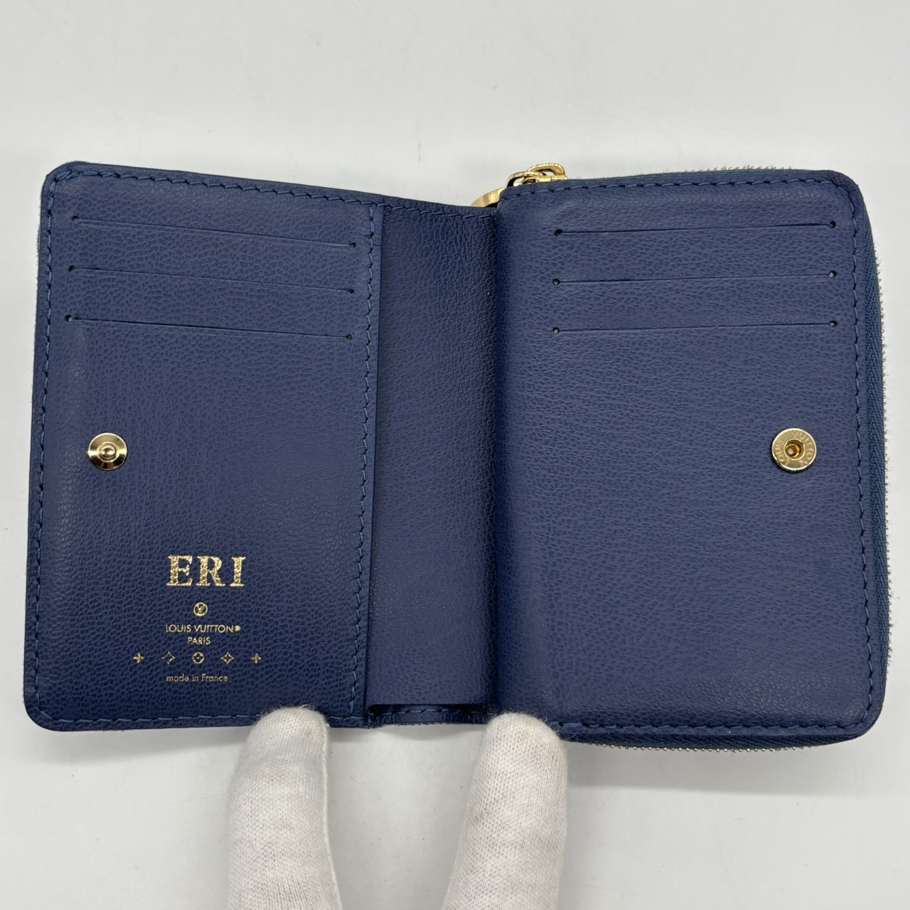モノグラム デニム ポルトフォイユ・ルー M83160 RFID 二つ折り財布 ネーム入り 保存袋