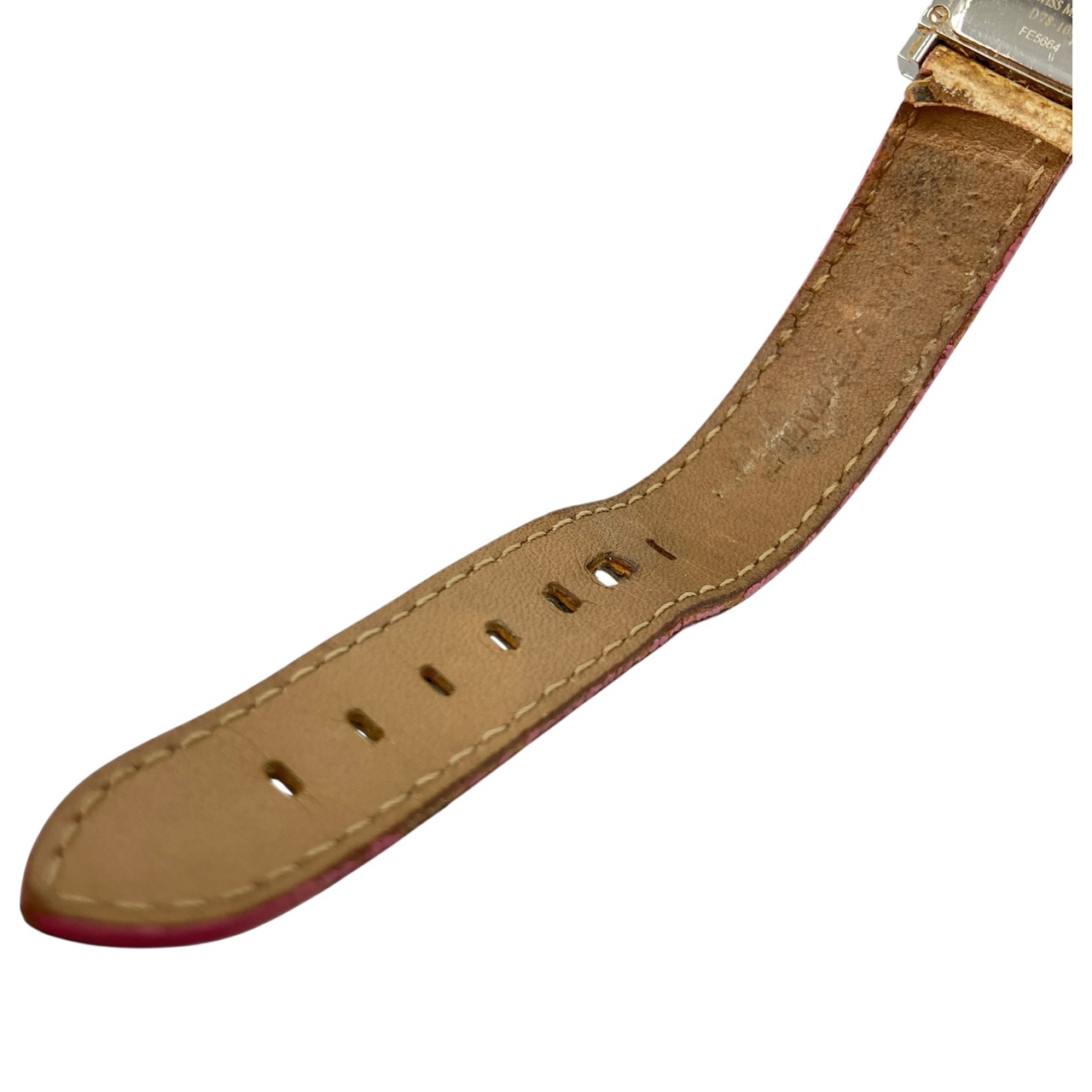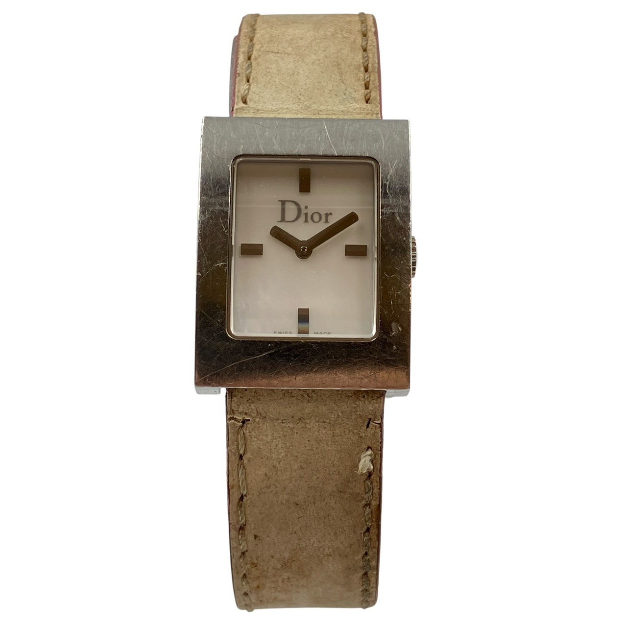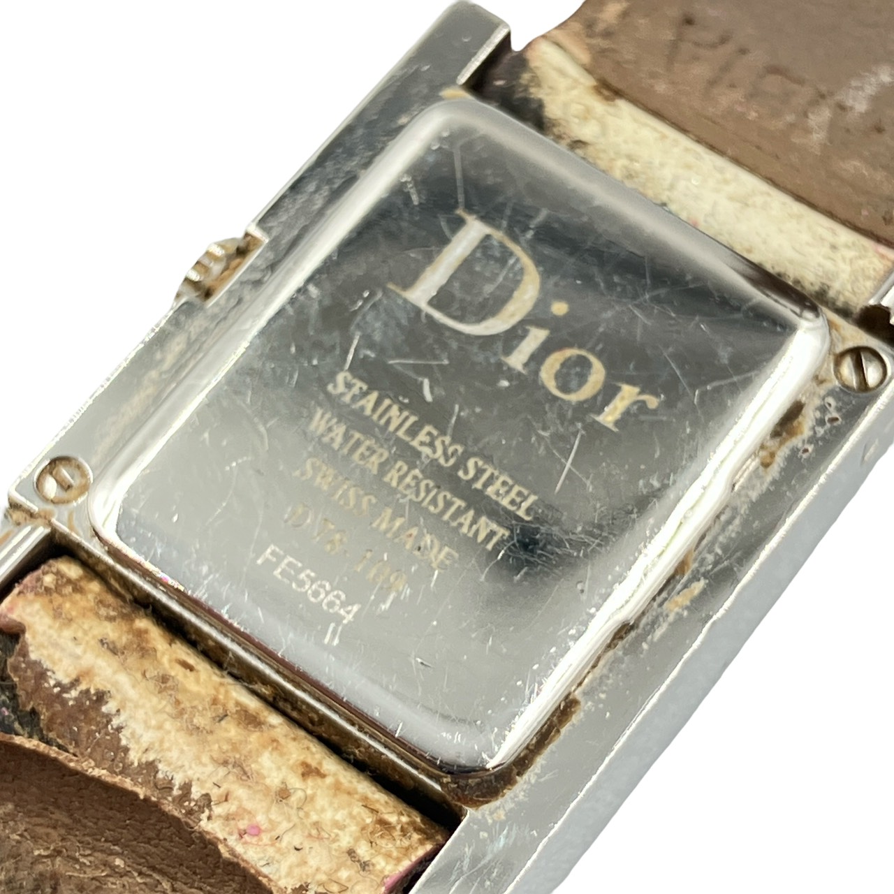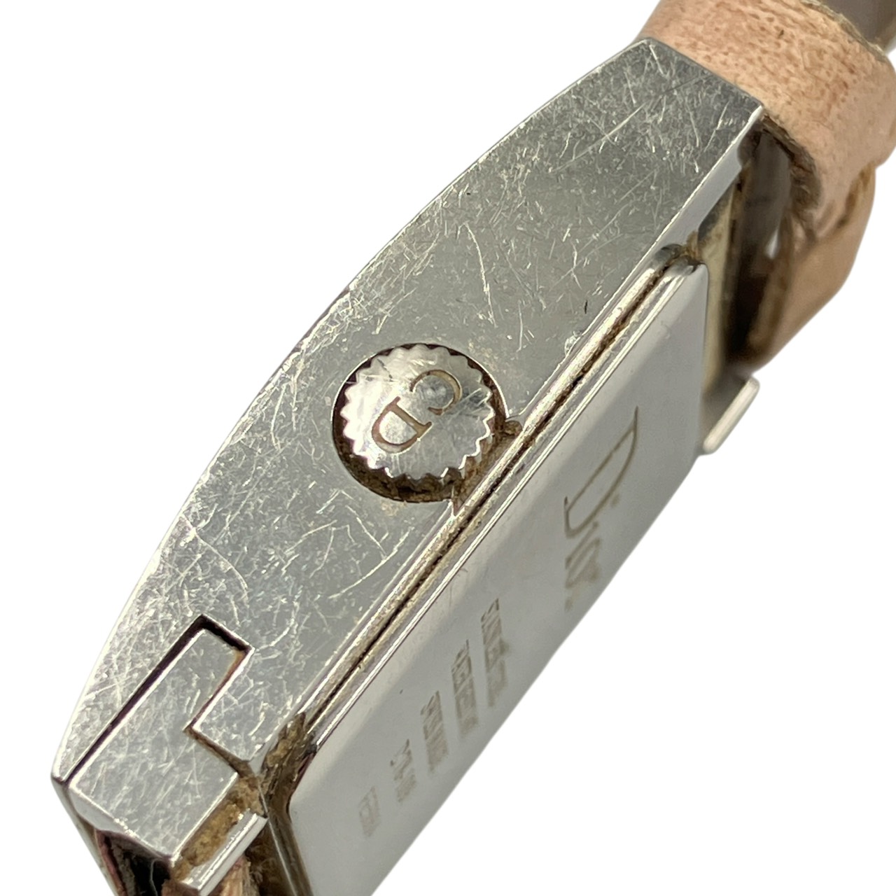 クォーツ 稼働品 シェル文字盤 腕時計 D78-109 レディース スクエアフェイス シルバーカラー レザーベルト