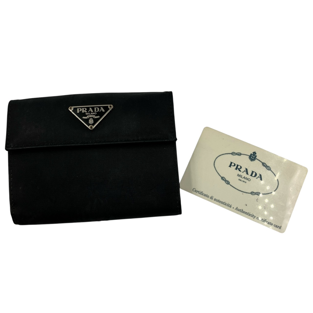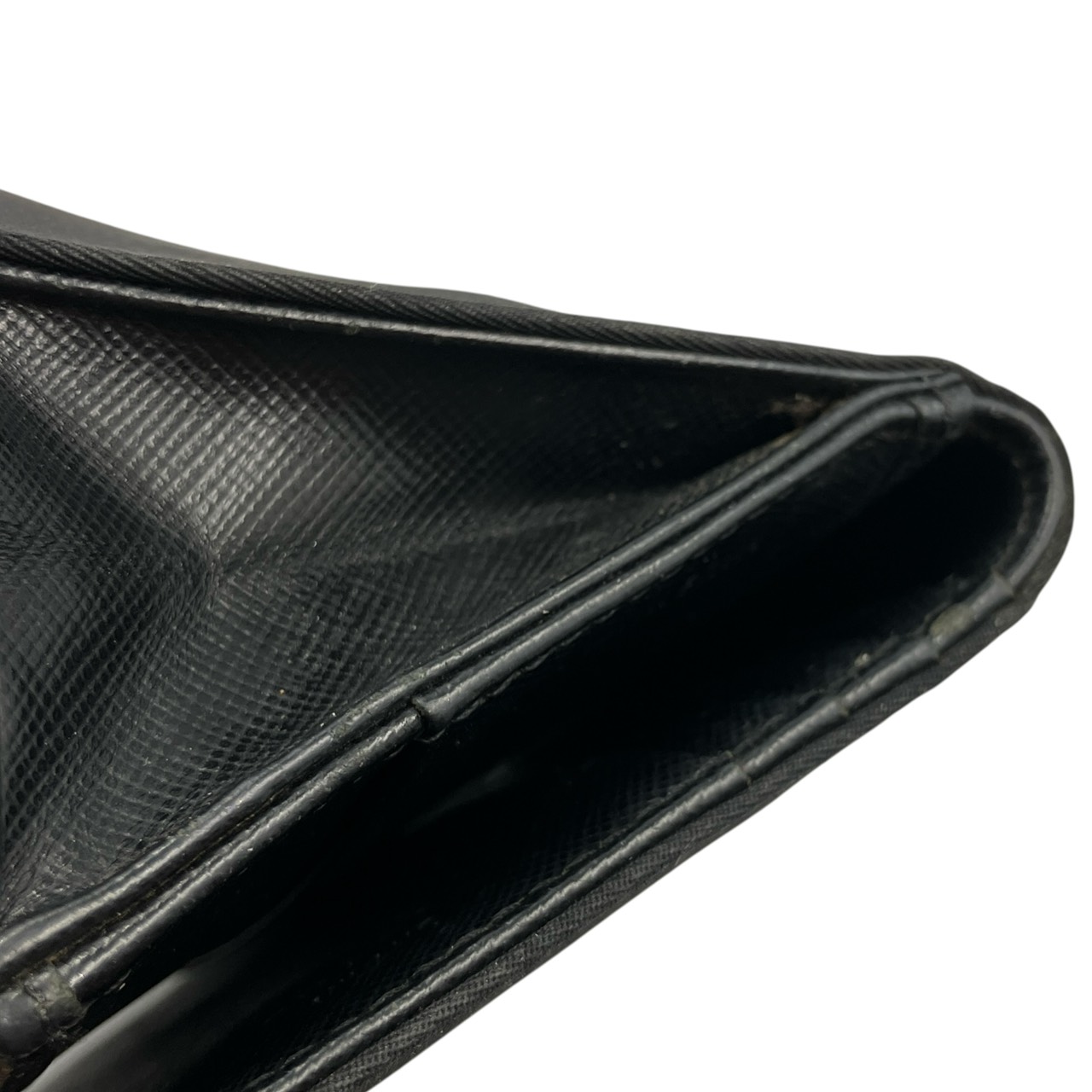 ナイロン×サフィアーノレザー 2つ折り財布 ブラック系 ※シミあり