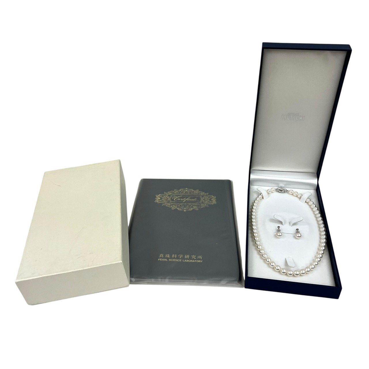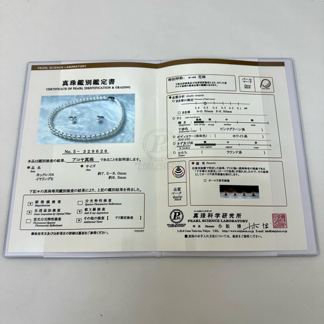 パール ネックレス 7.5-7.8 イヤリングk14WG 2Pセット