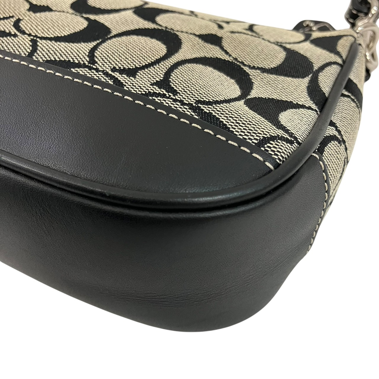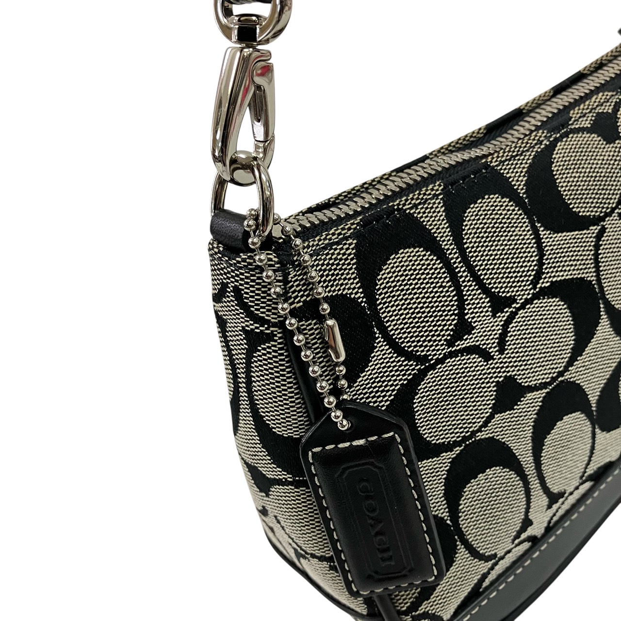 シグネチャー キャンバス地×レザー ブラックカラー ポーチ ワンショルダーバッグ 6094
