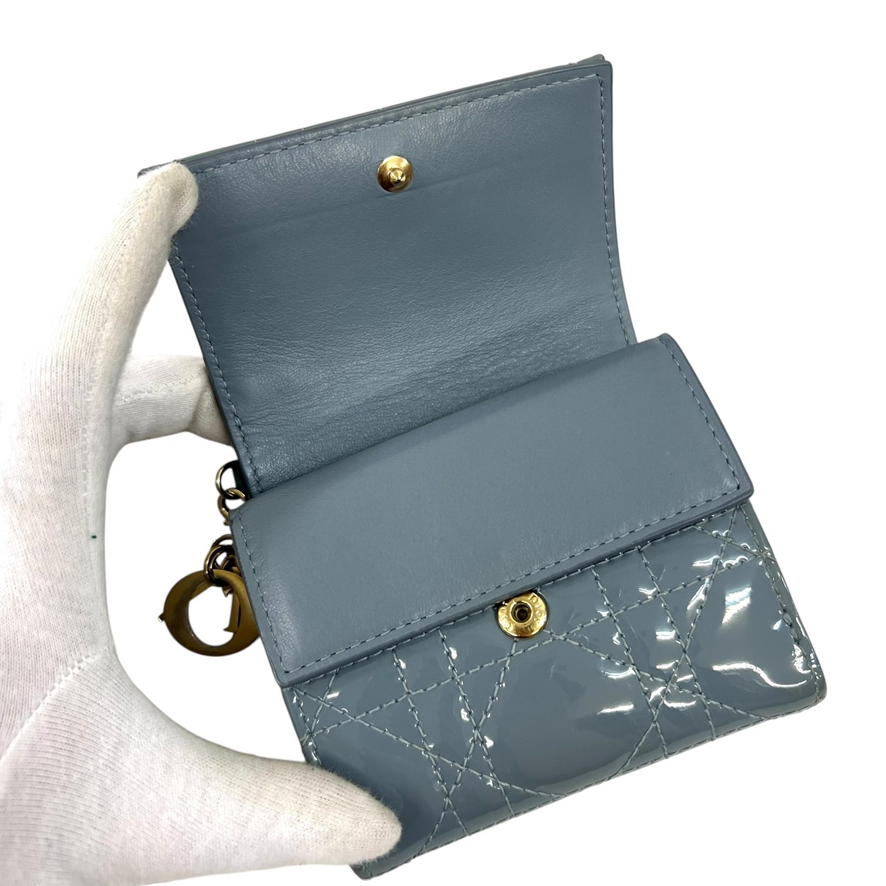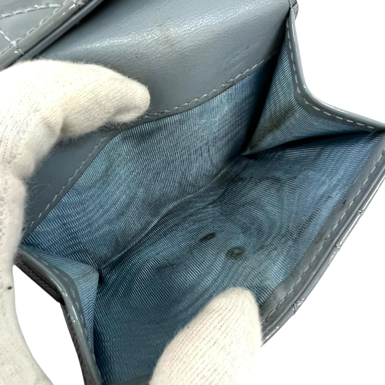 カナージュ レディディオール エナメル ブルー系 グレー系 三つ折り財布