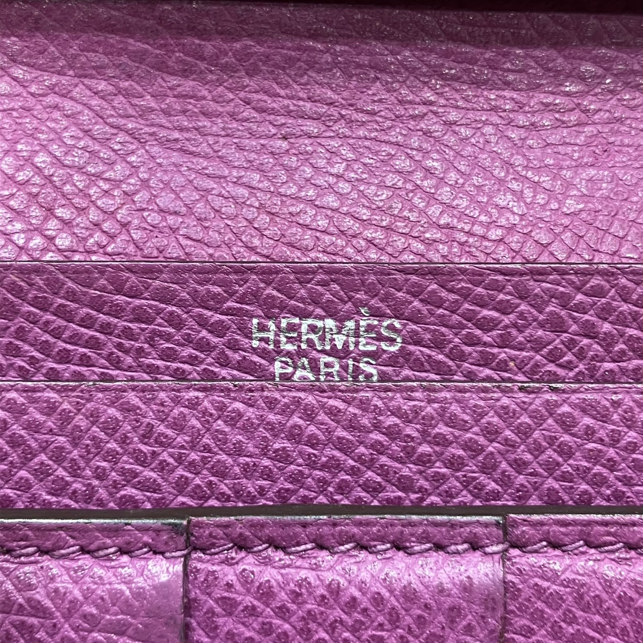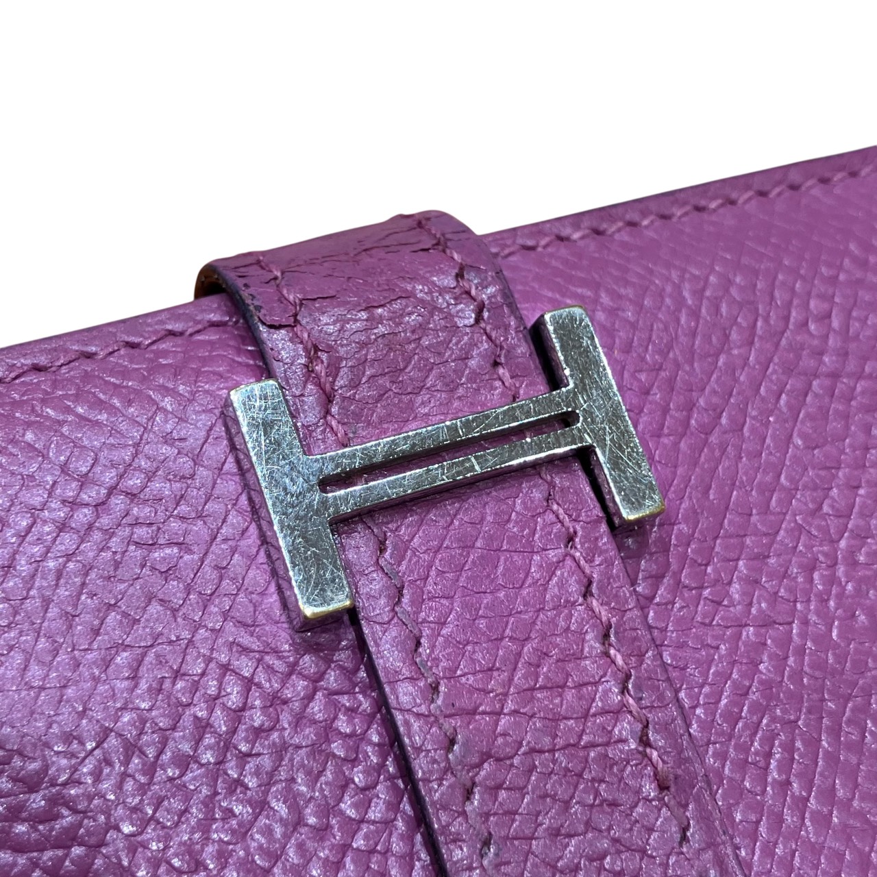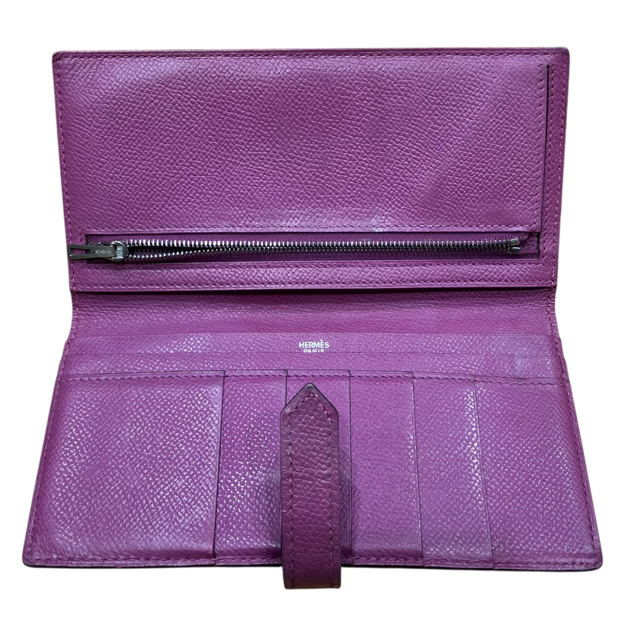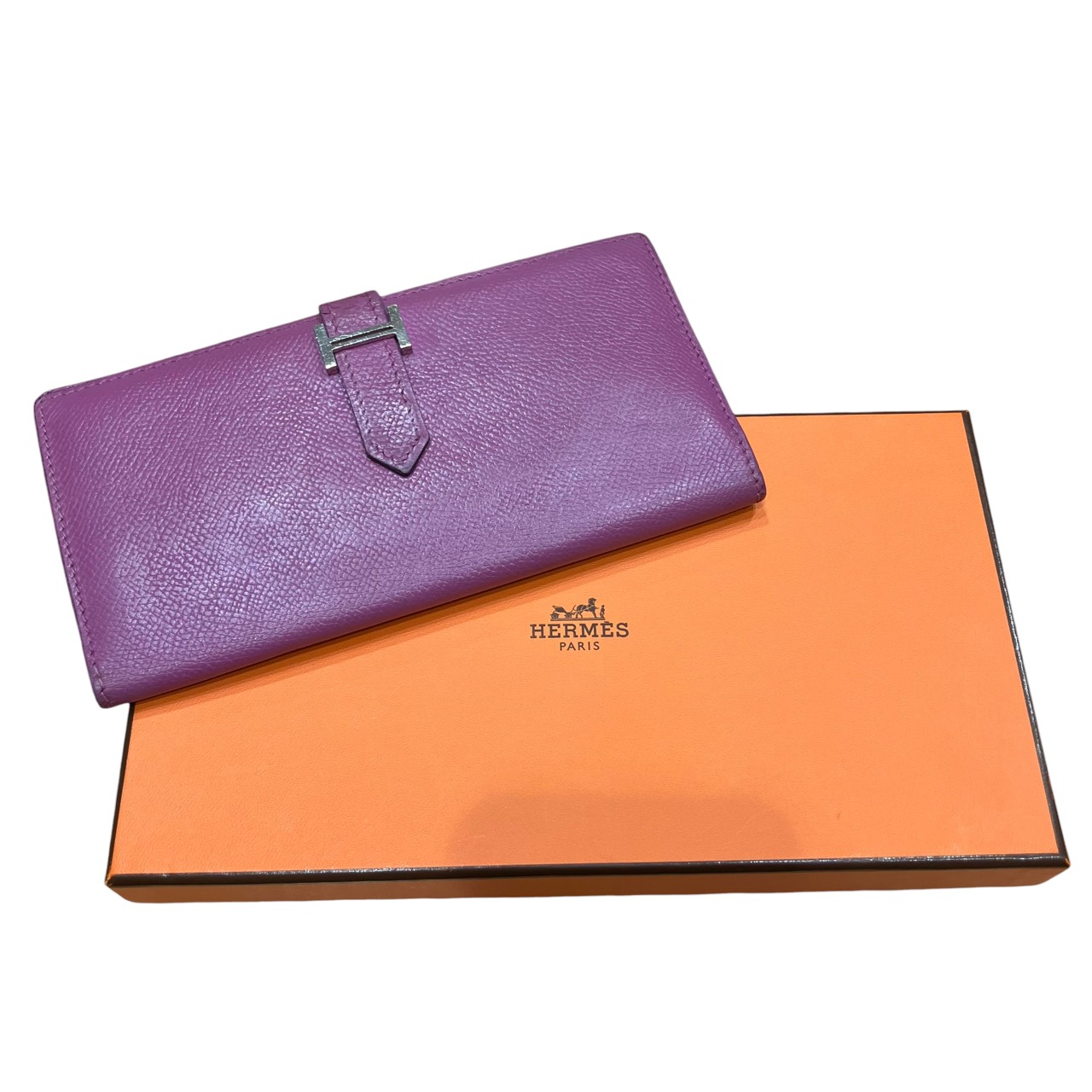 エルメス ベアン エプソン シルバー金具 長財布 □H ローズパープル系