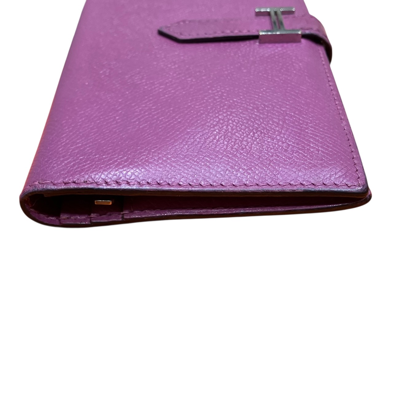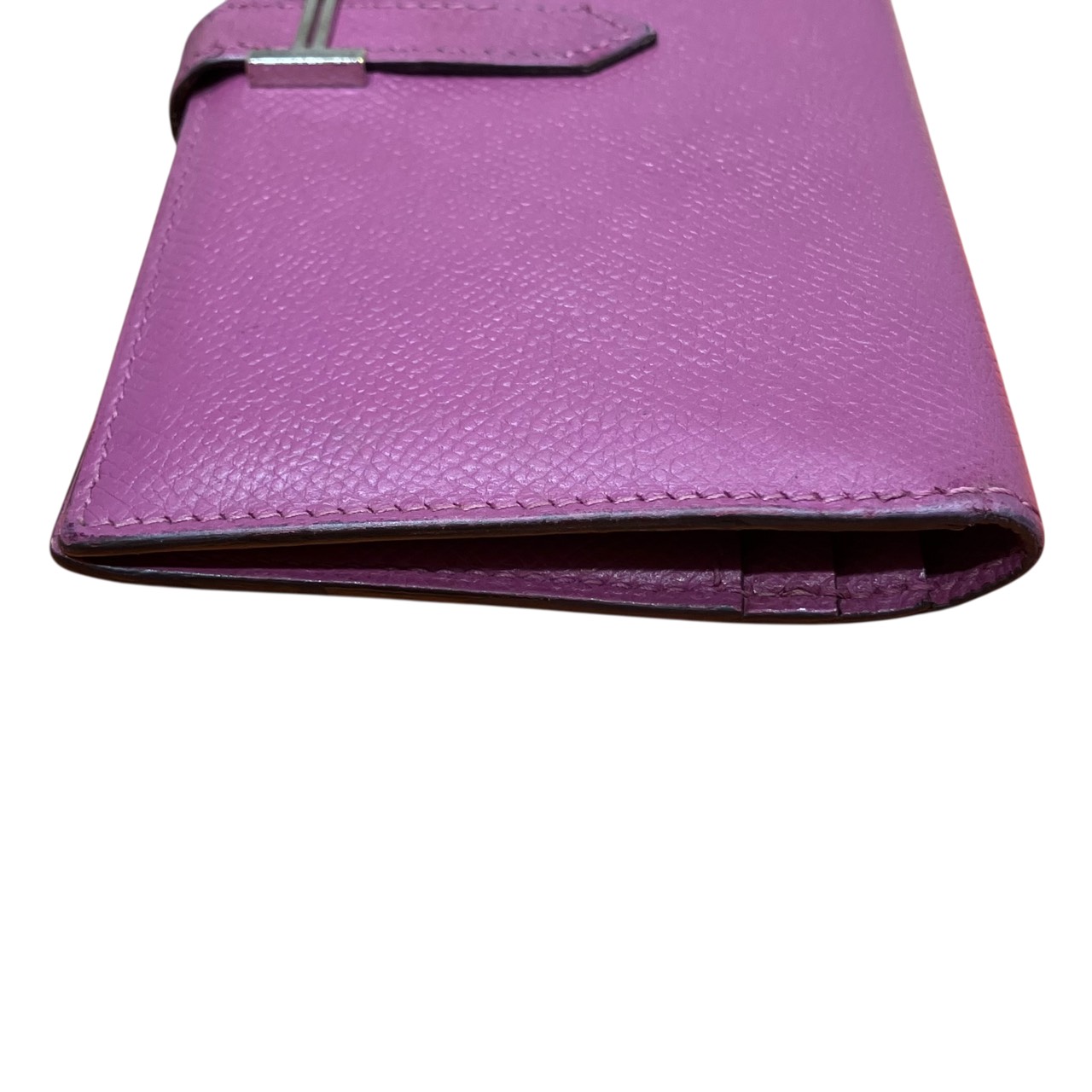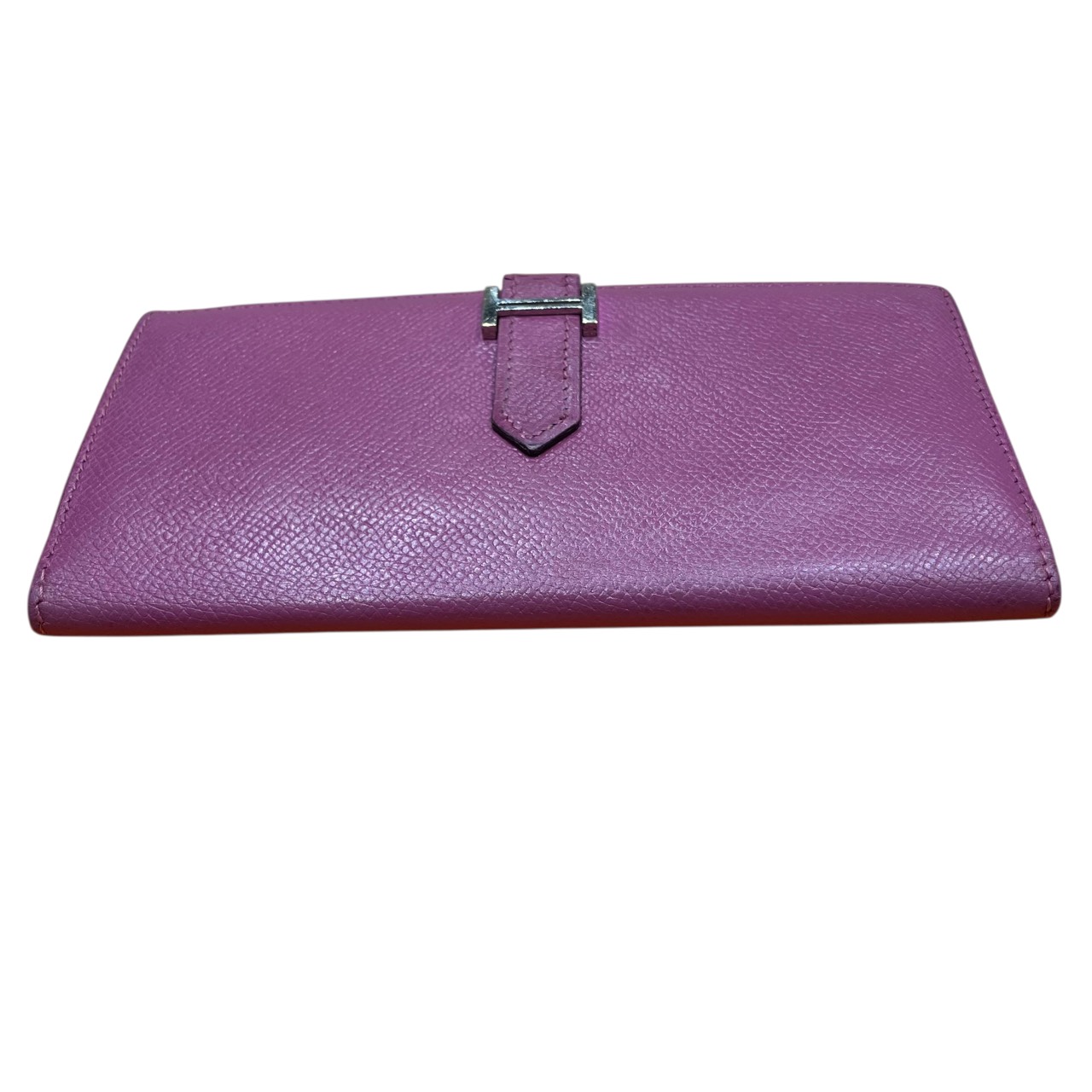 エルメス ベアン エプソン シルバー金具 長財布 □H ローズパープル系