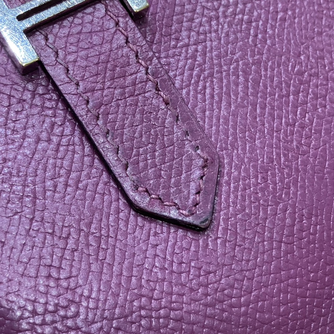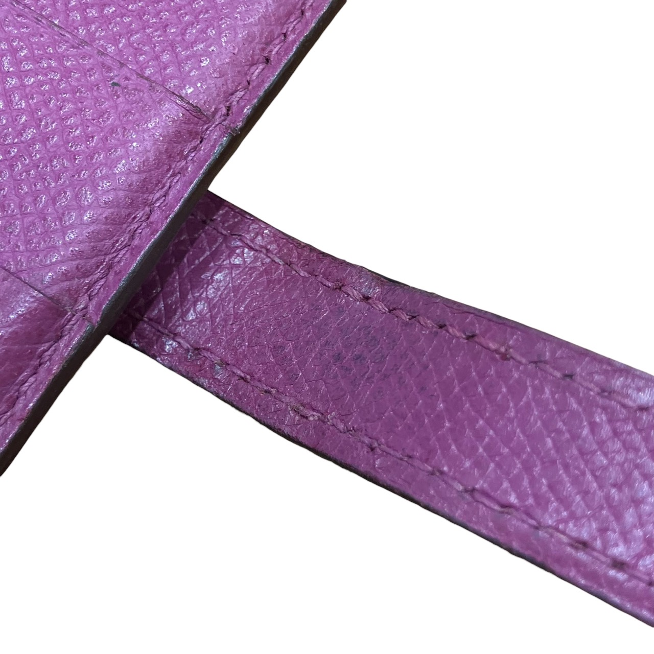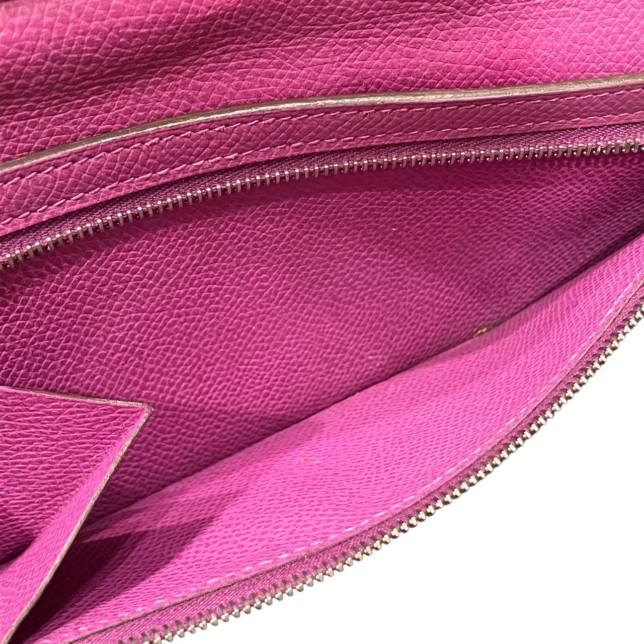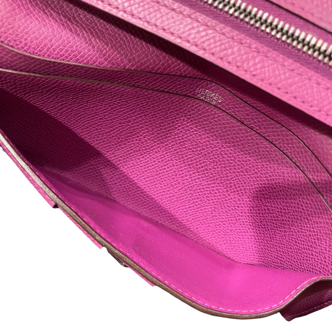 エルメス ベアン エプソン シルバー金具 長財布 □H ローズパープル系