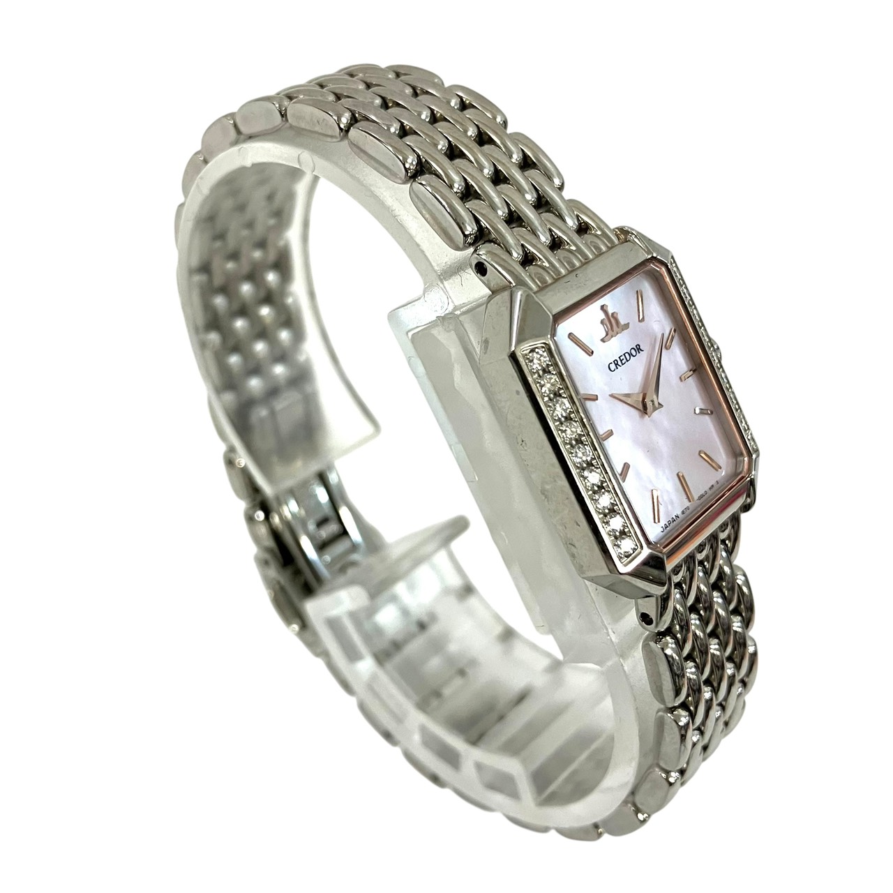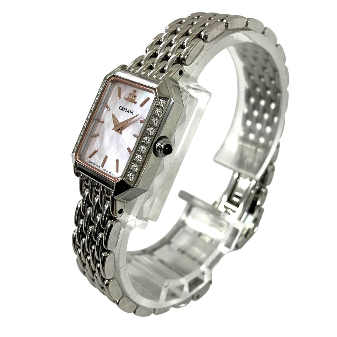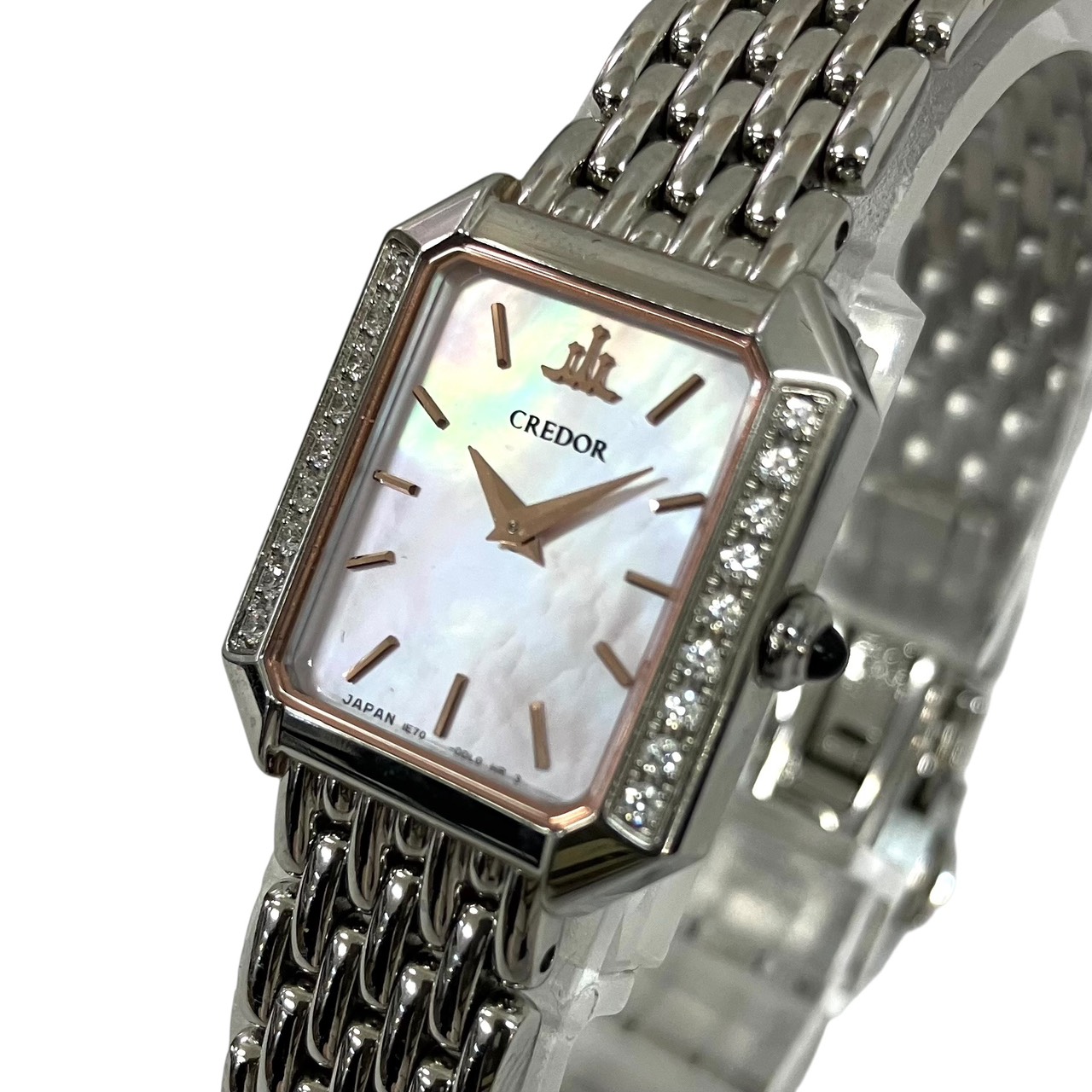 【クォーツ】クレドール 1E70-0CG0 ピンクシェル ダイヤベゼル SS シルバーカラー 腕時計