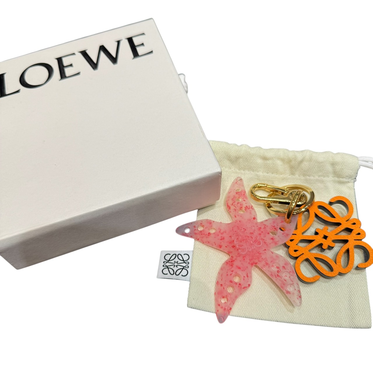 LOEWE Anagram Starfish Charm, Gold Metal key ring Pink orange Women's