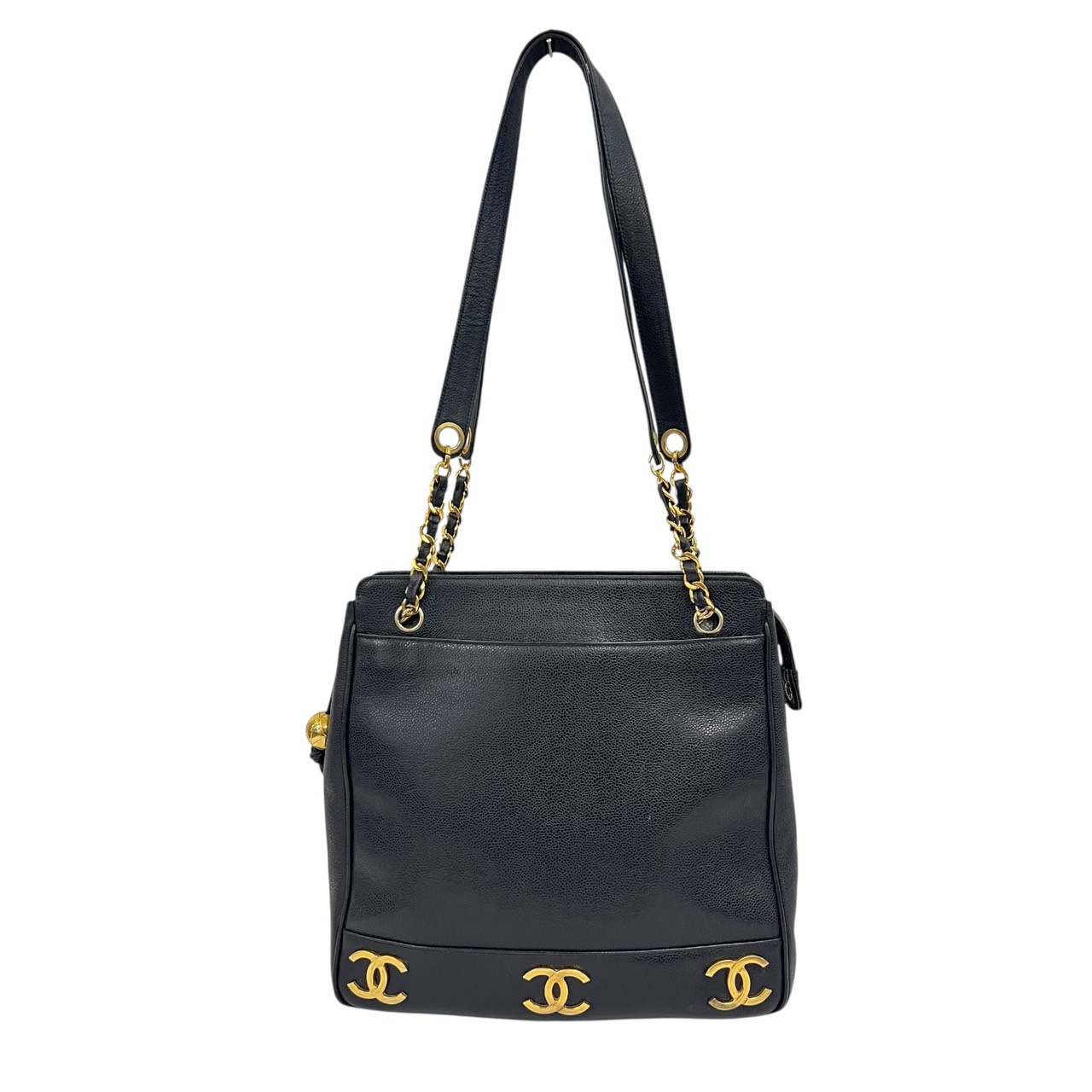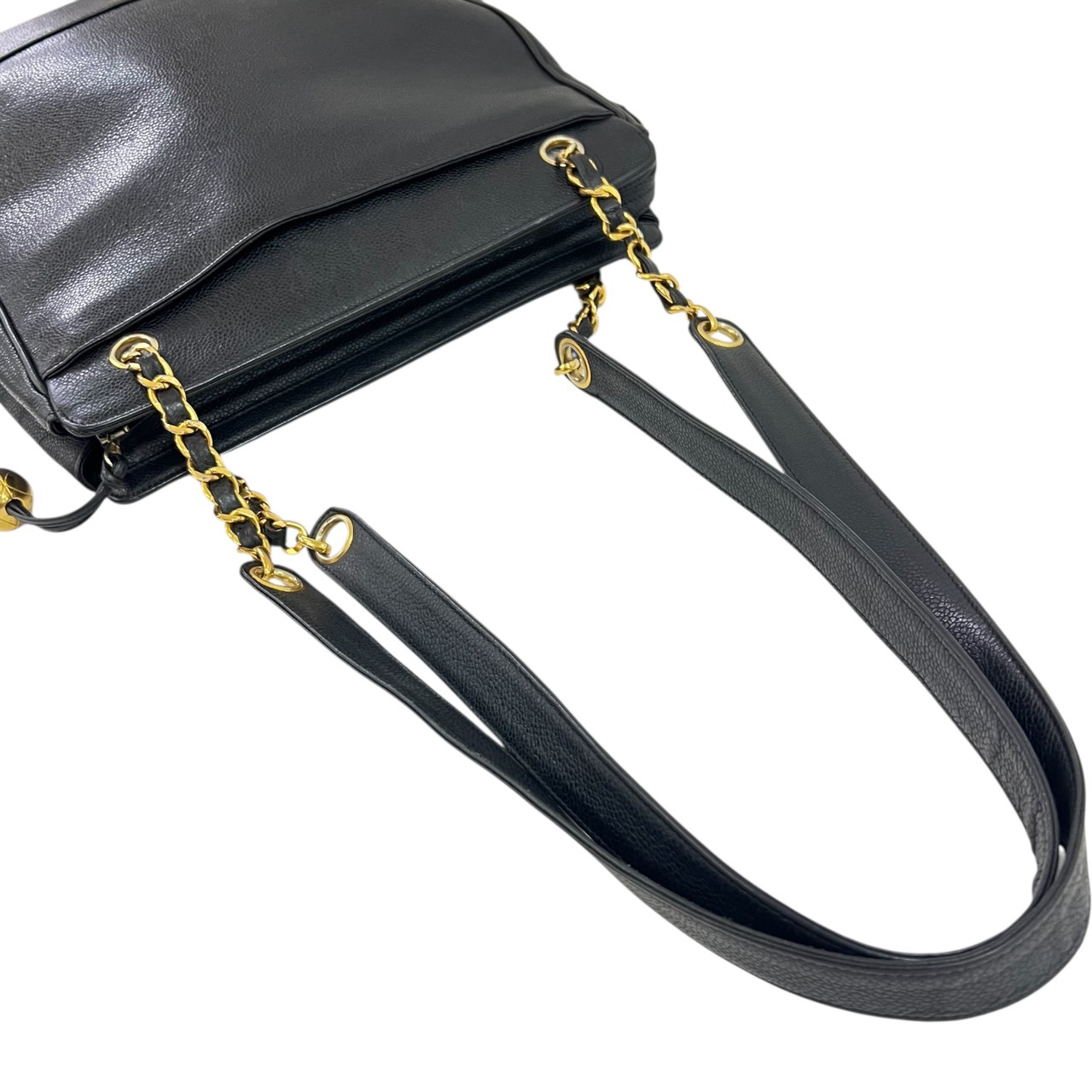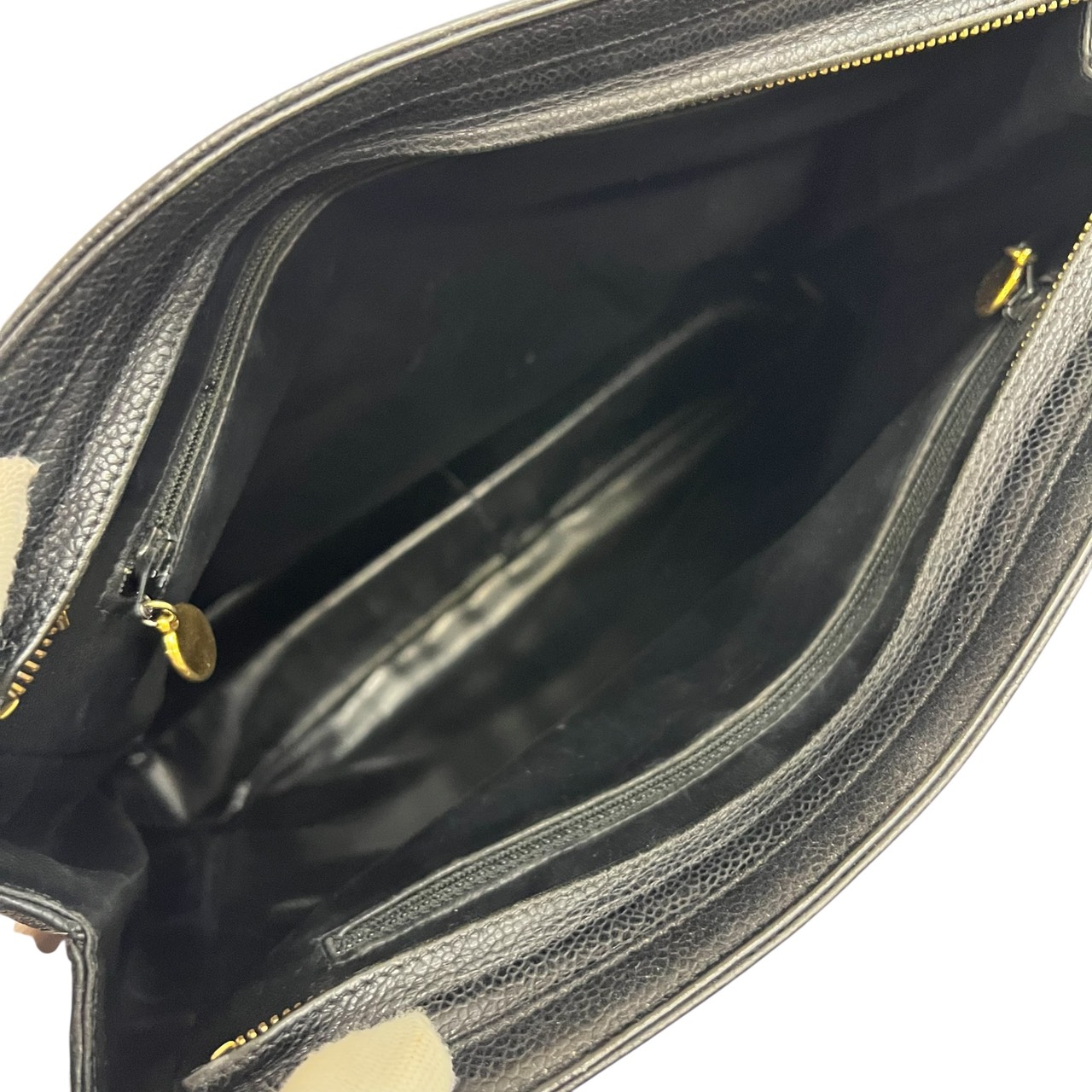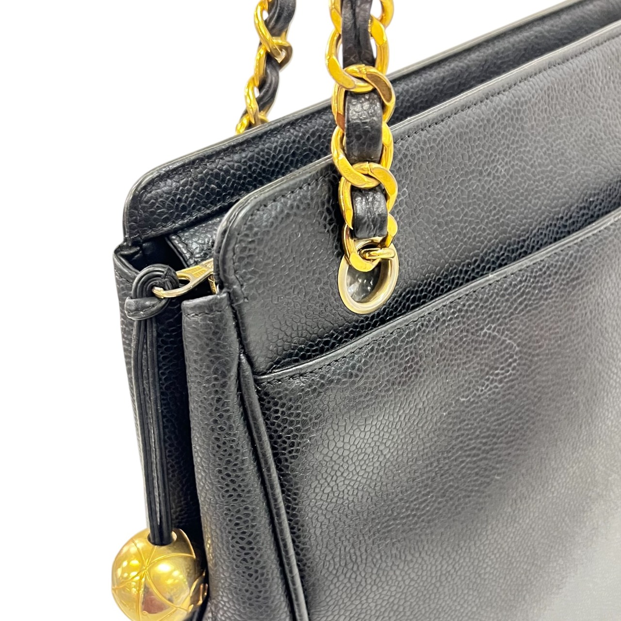 キャビアスキン トリプルココ チェーントート トートバッグ ブラック系