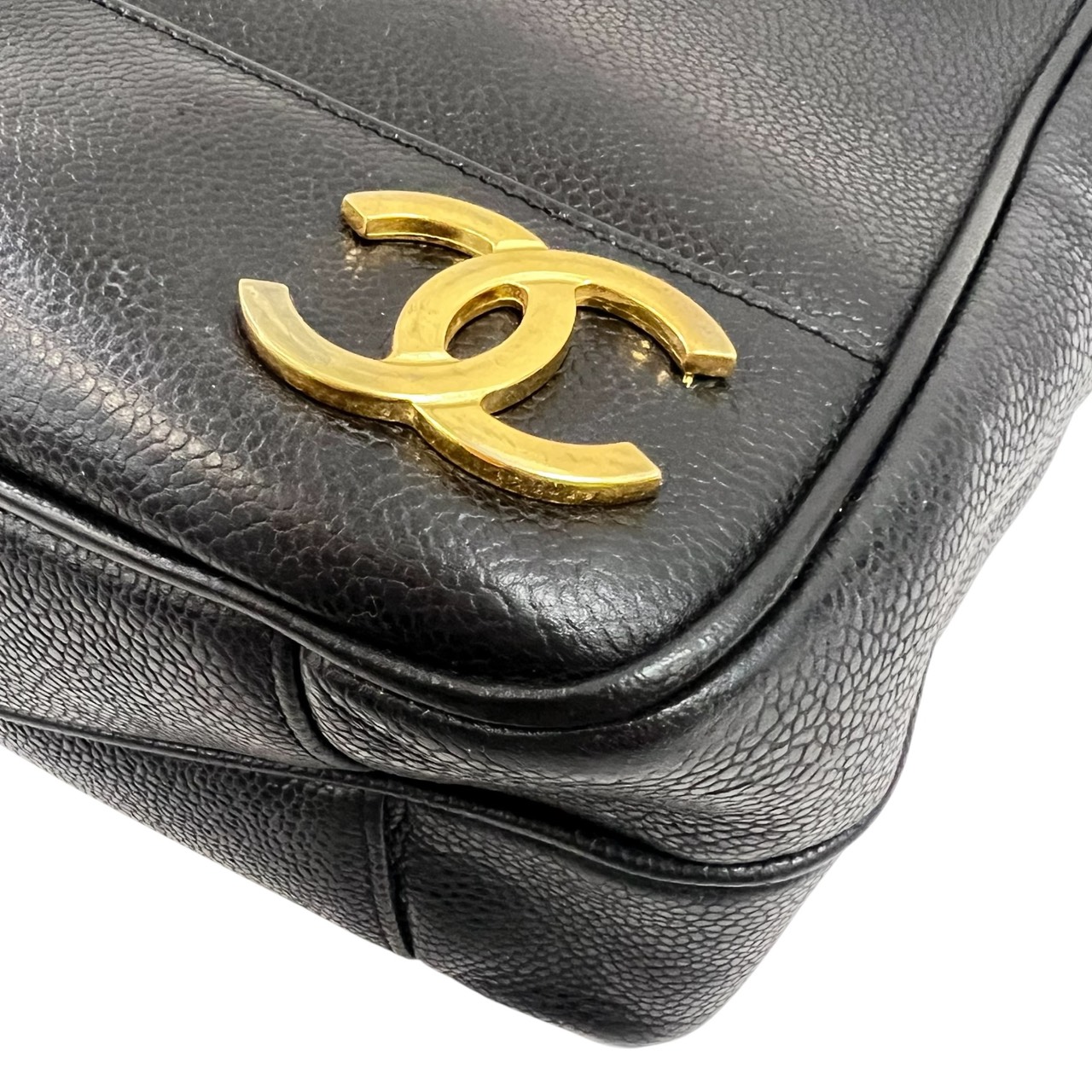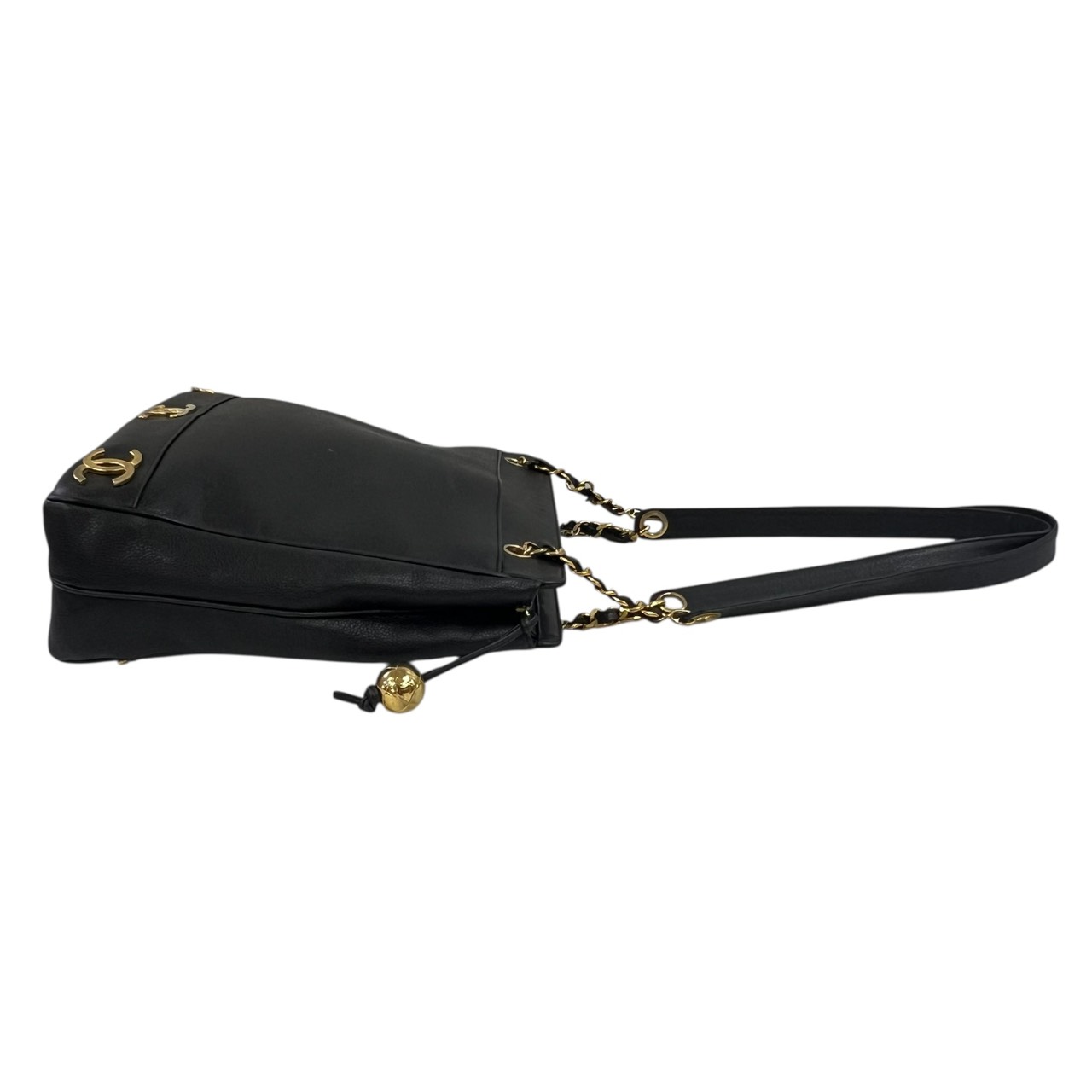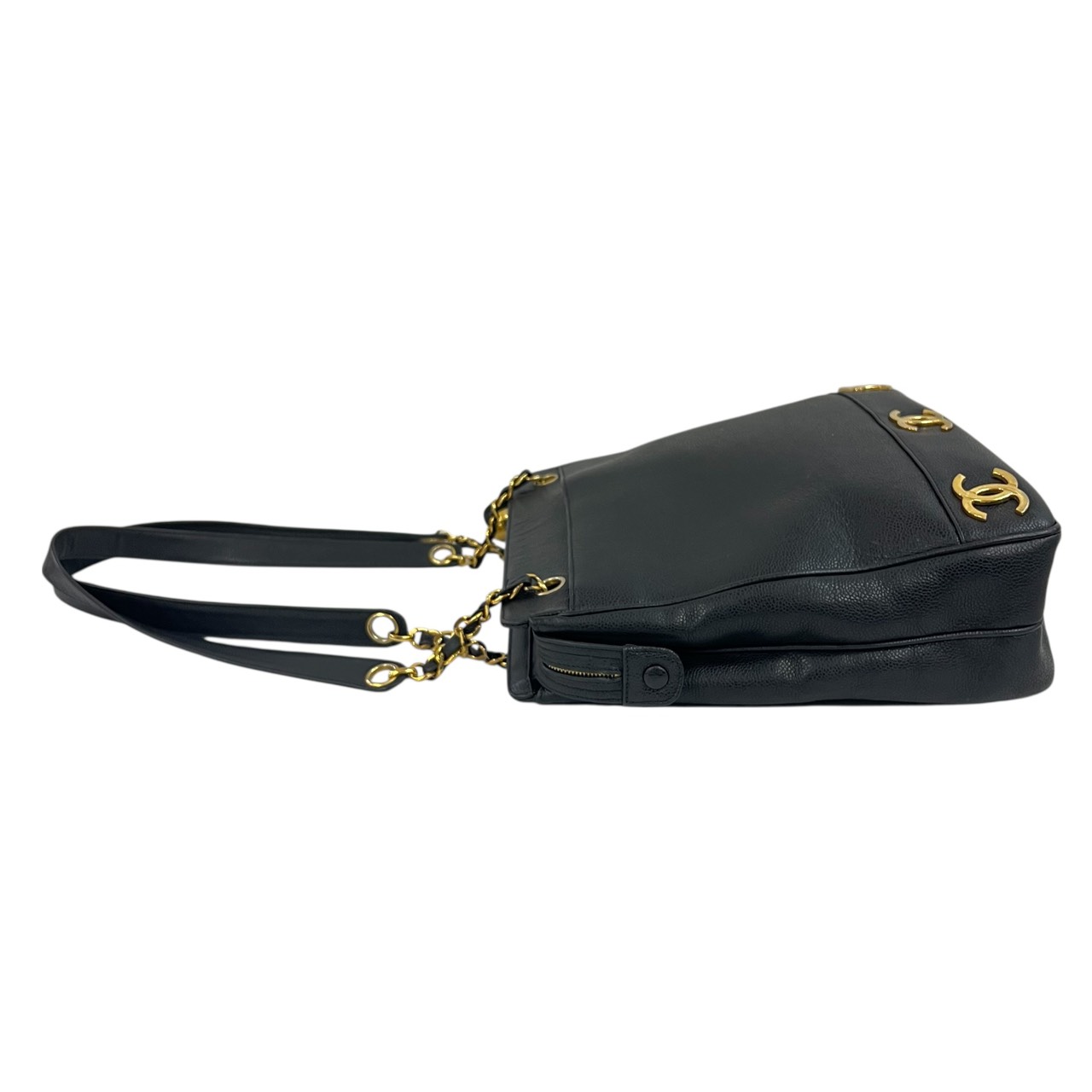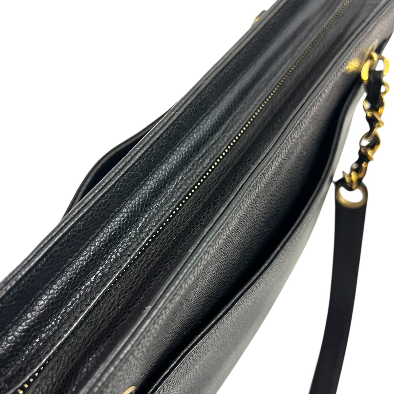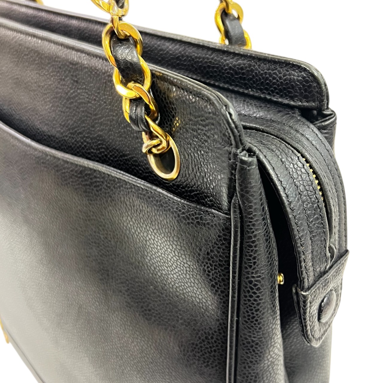 キャビアスキン トリプルココ チェーントート トートバッグ ブラック系