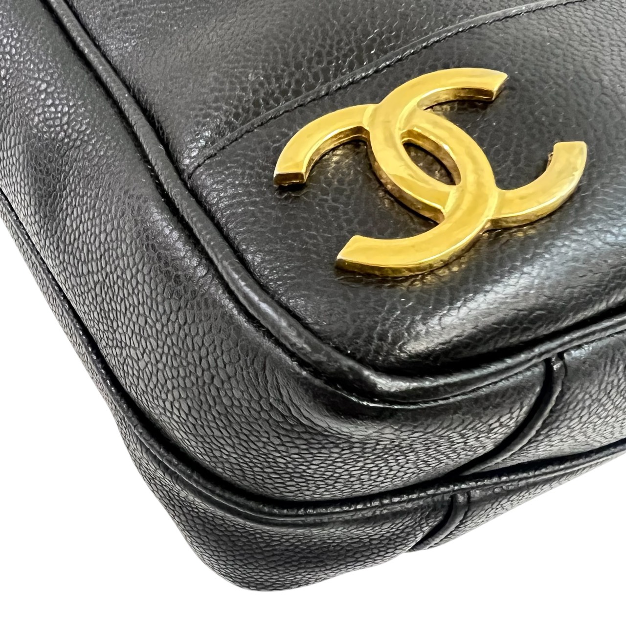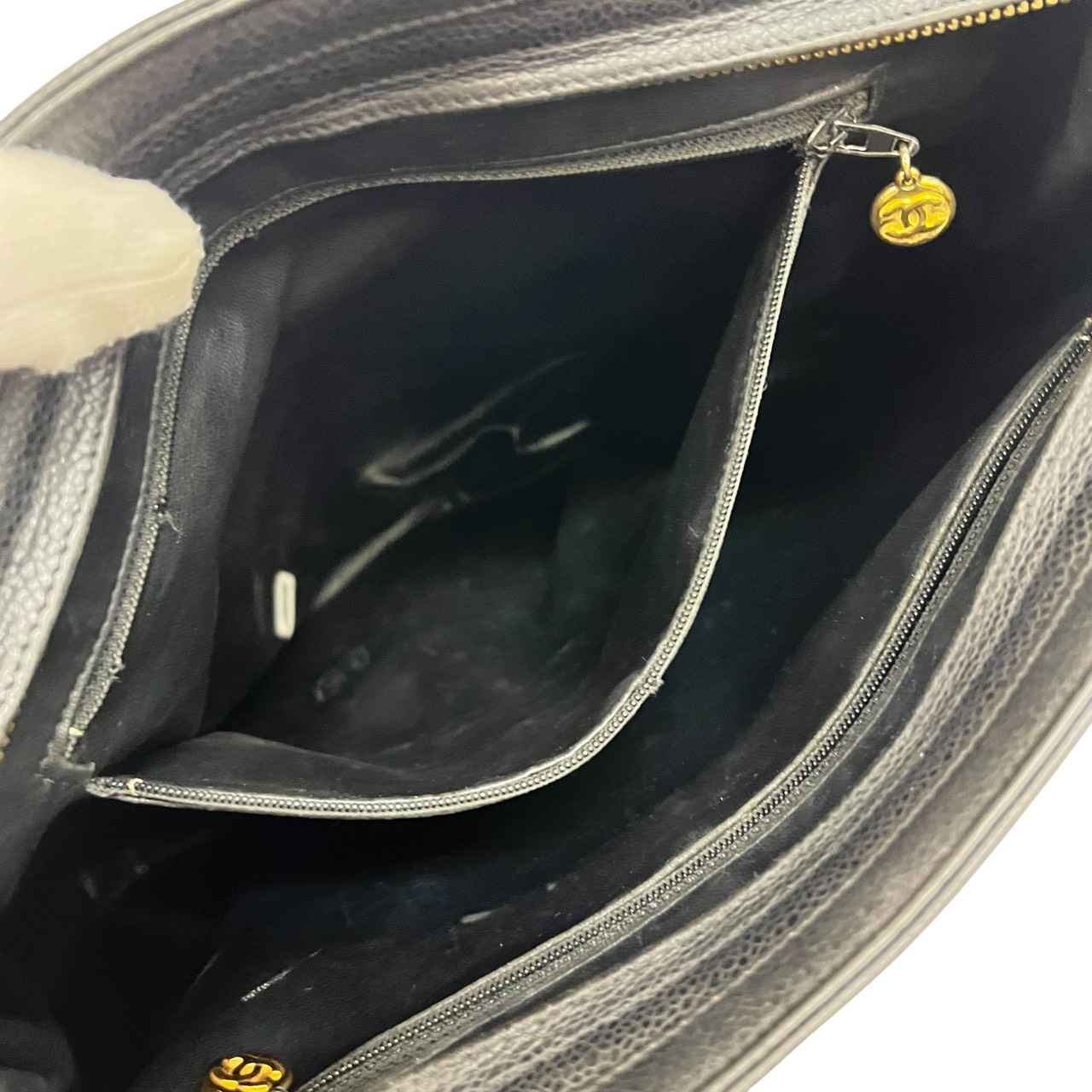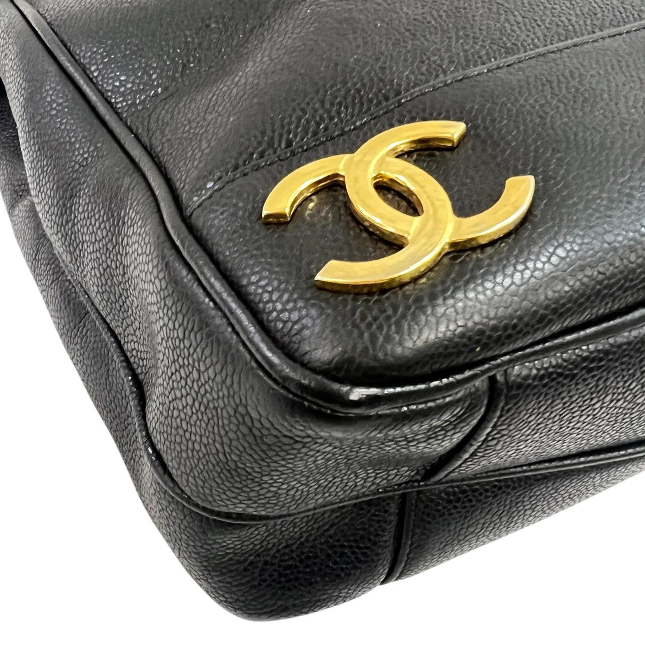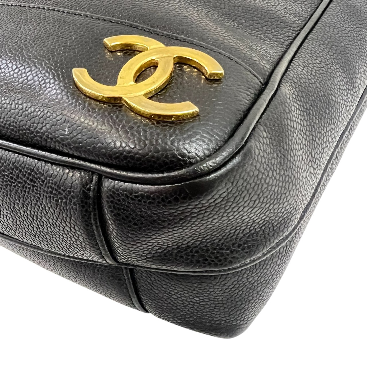 キャビアスキン トリプルココ チェーントート トートバッグ ブラック系