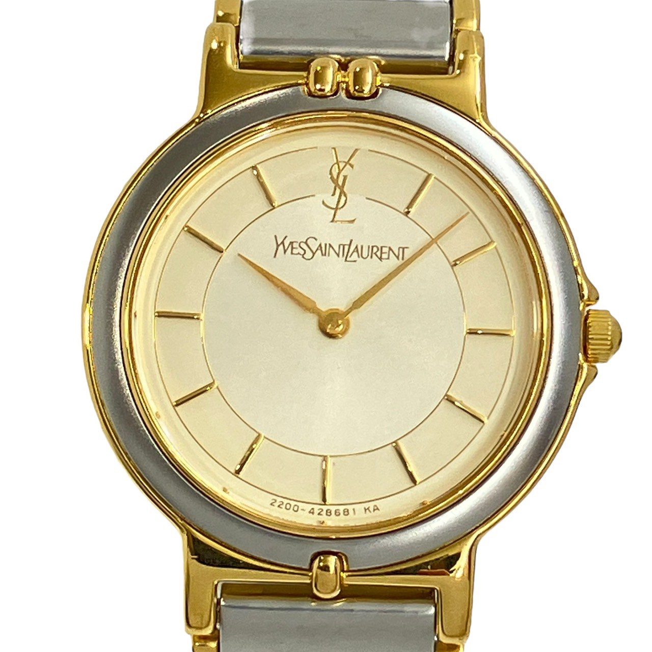 SAINT LAURENT Round Qz Gold Plated/Stainless Steel Champagne Dial 2200-228481 Working Watches None Women's