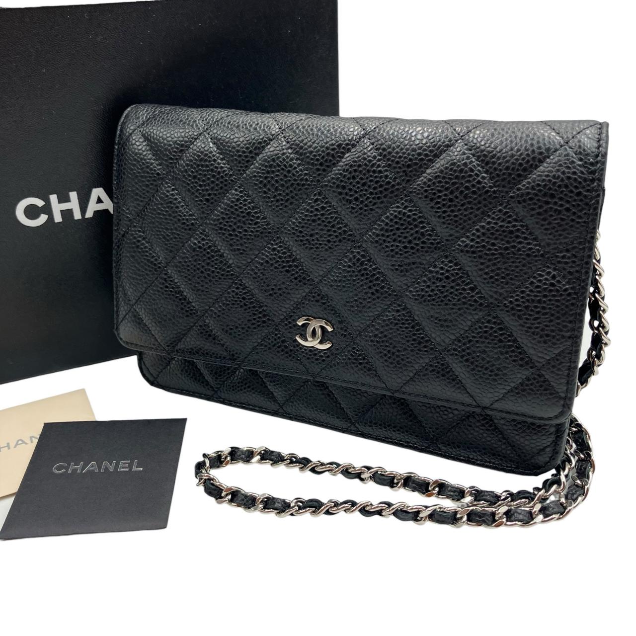 CHANEL Matelasse Chain Wallet Purse Caviar Skin Silver Metal Black 16 Series Shoulder Bag Caviar skin black Women's