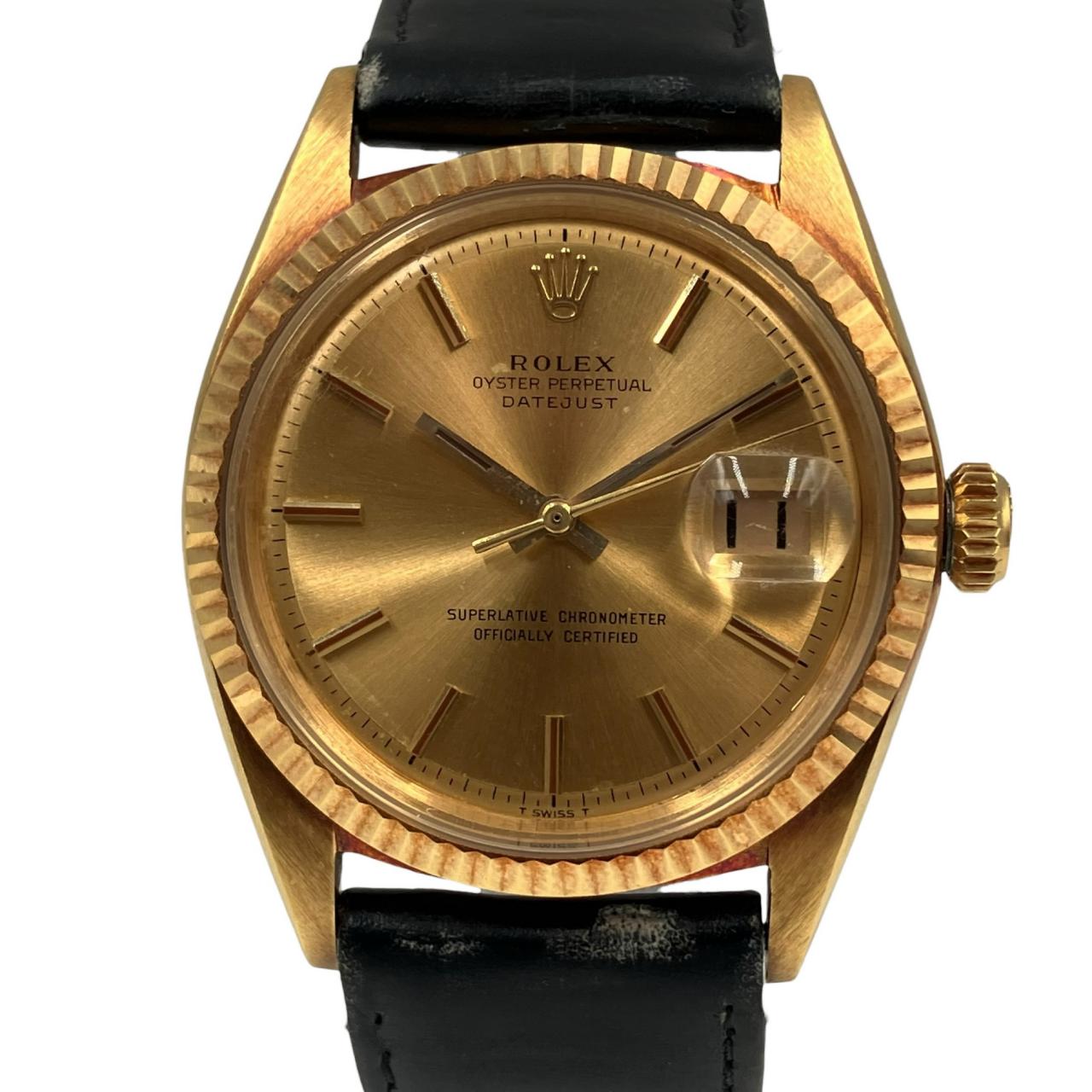 デイトジャスト 自動巻き NJ ゴールド文字盤 K18 プラ風防 革ベルト 1601 13番台 総重量約59.5g Cal.1570 稼動確認済み