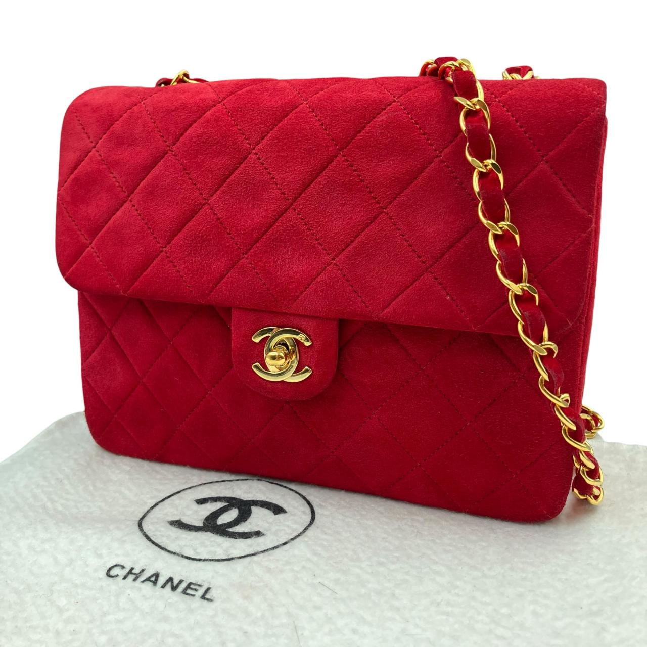 ミニマトラッセ ターンロック チェーンショルダーバッグ Sチェーン/Sフラップ スエード ゴールド金具 レッド系 2番台