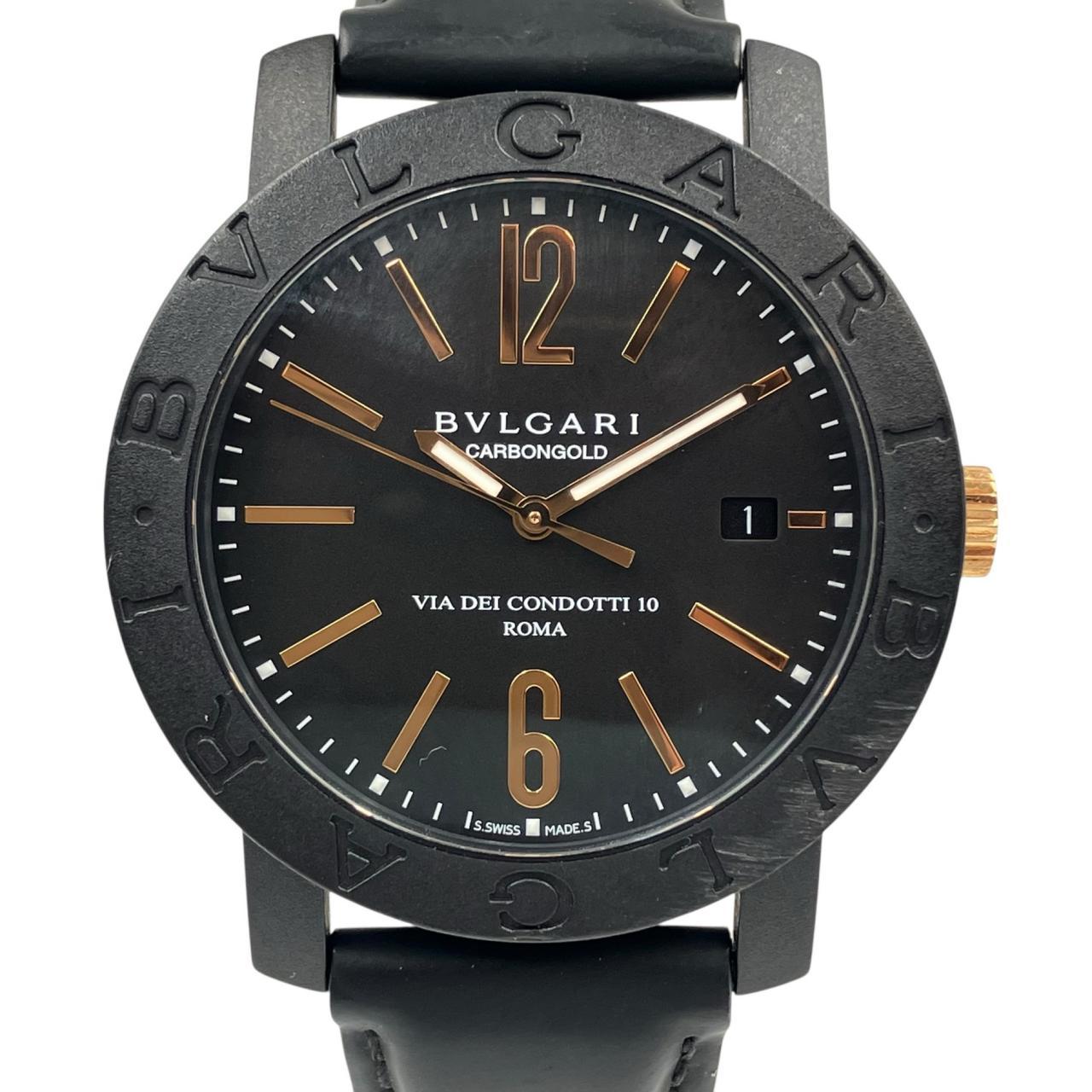 ブルガリブルガリ カーボンゴールド デイト 自動巻き 黒文字盤 裏スケ 革ベルト 稼動確認済み 腕時計 BB40CL