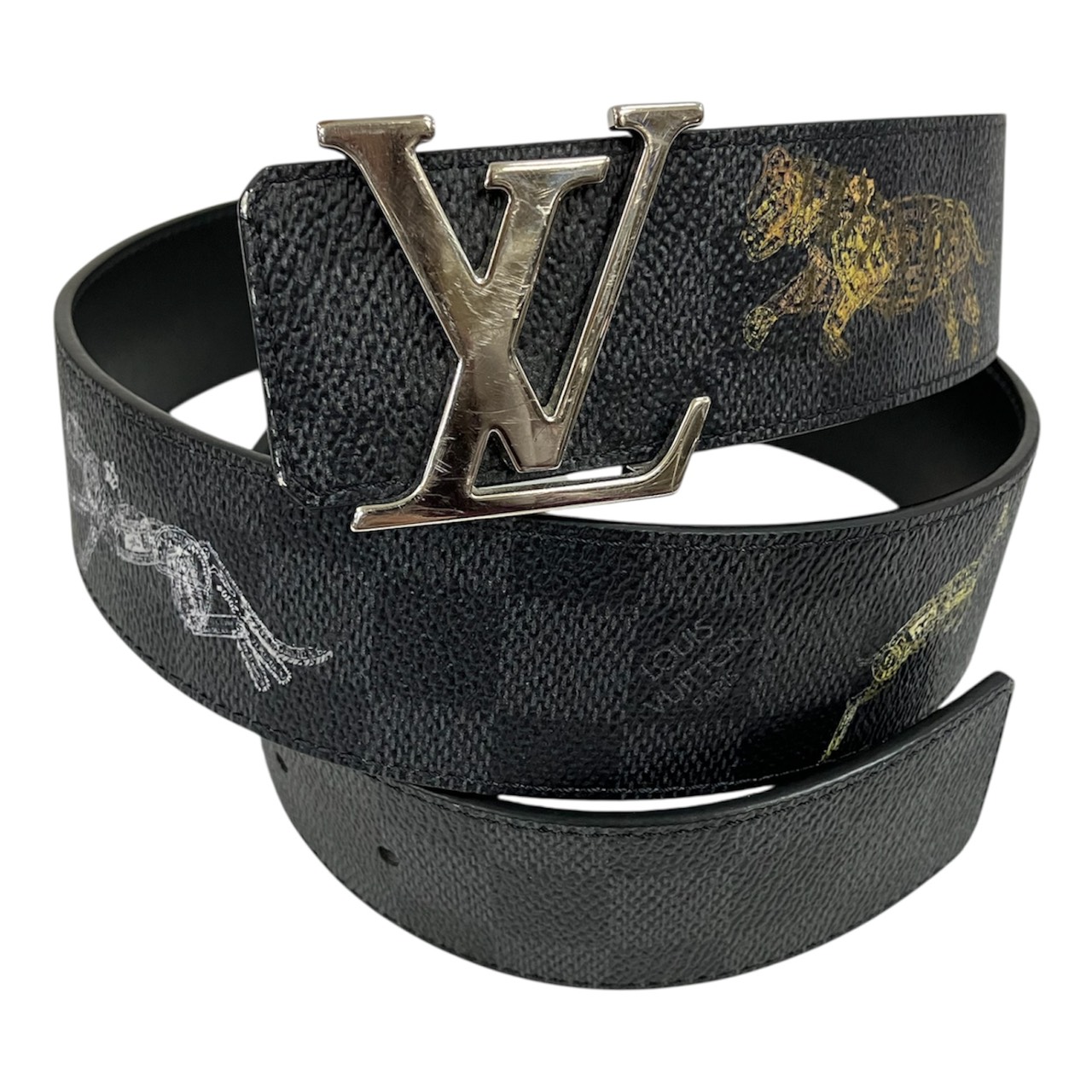 LOUIS VUITTON LOUIS VUITTON Santur LV Initial 1.6" 90/36 Damier Animal Print belt Black series unisex