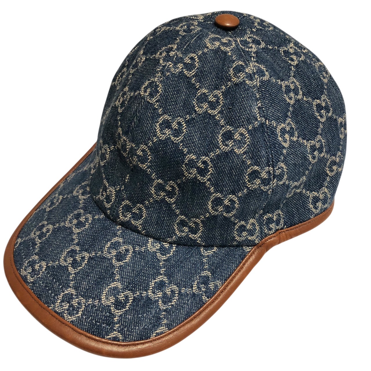 キャップ GG デニム×レザー インディゴ 帽子 S/57cm