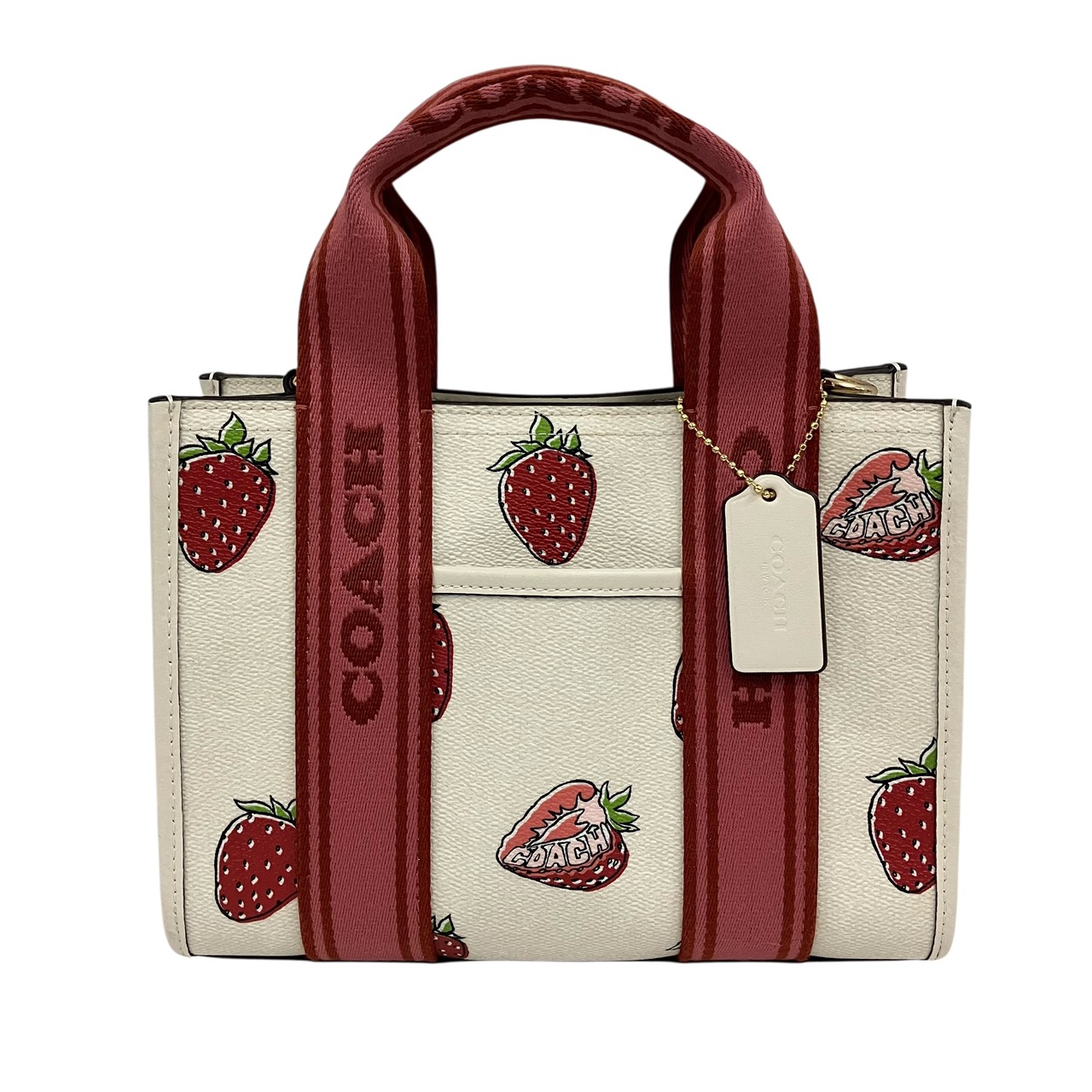 COACH CAR80 Excellent condition Smith Tote Bag, Size 24, Strawberry Print, 2-Way Tote Bag White system Women's