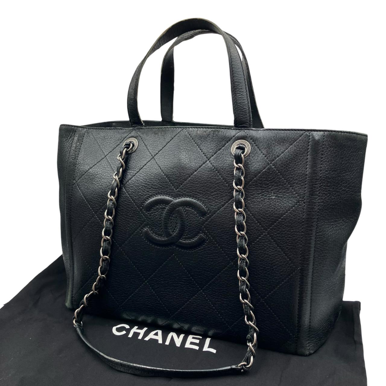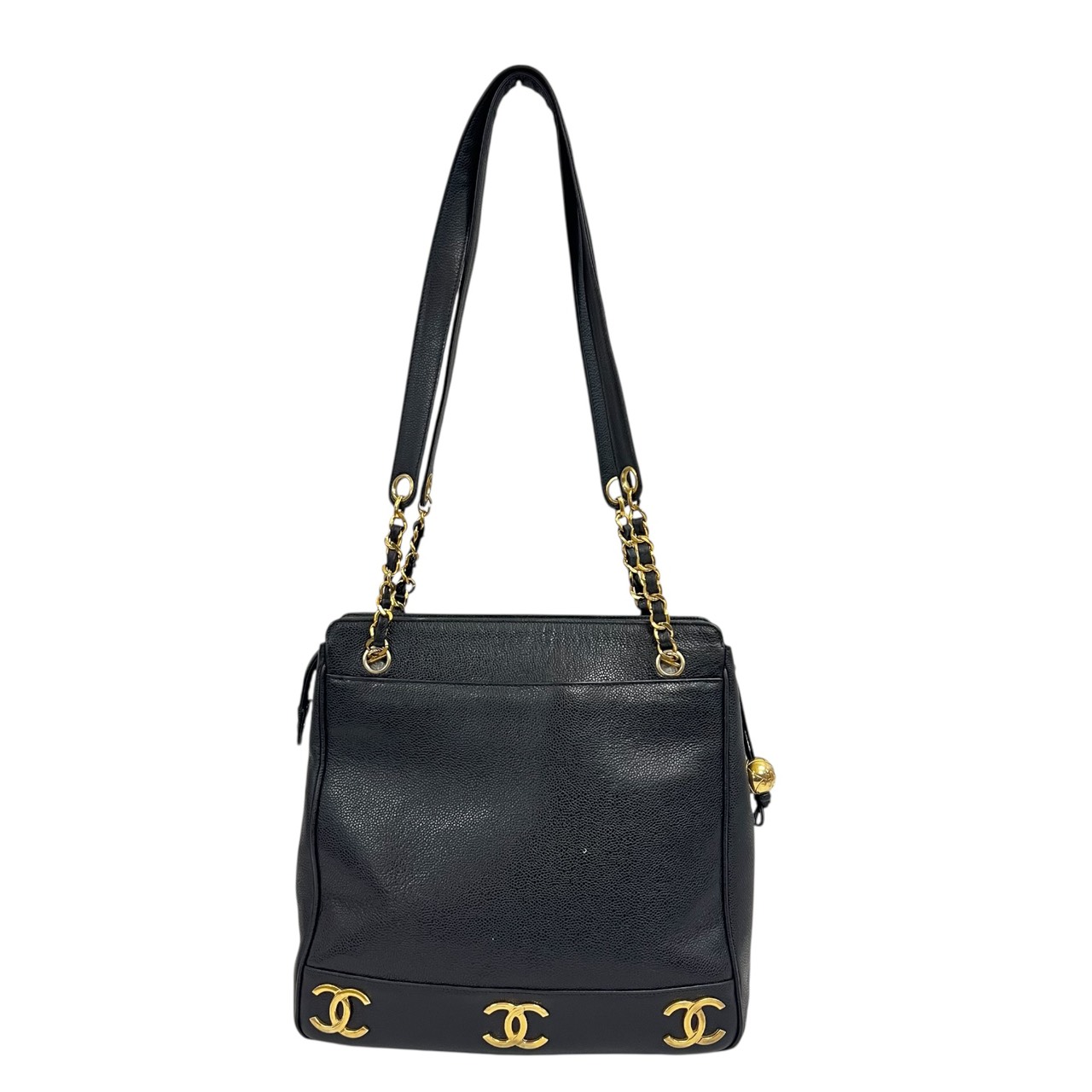 キャビアスキン トリプルココ チェーントート トートバッグ ブラック系
