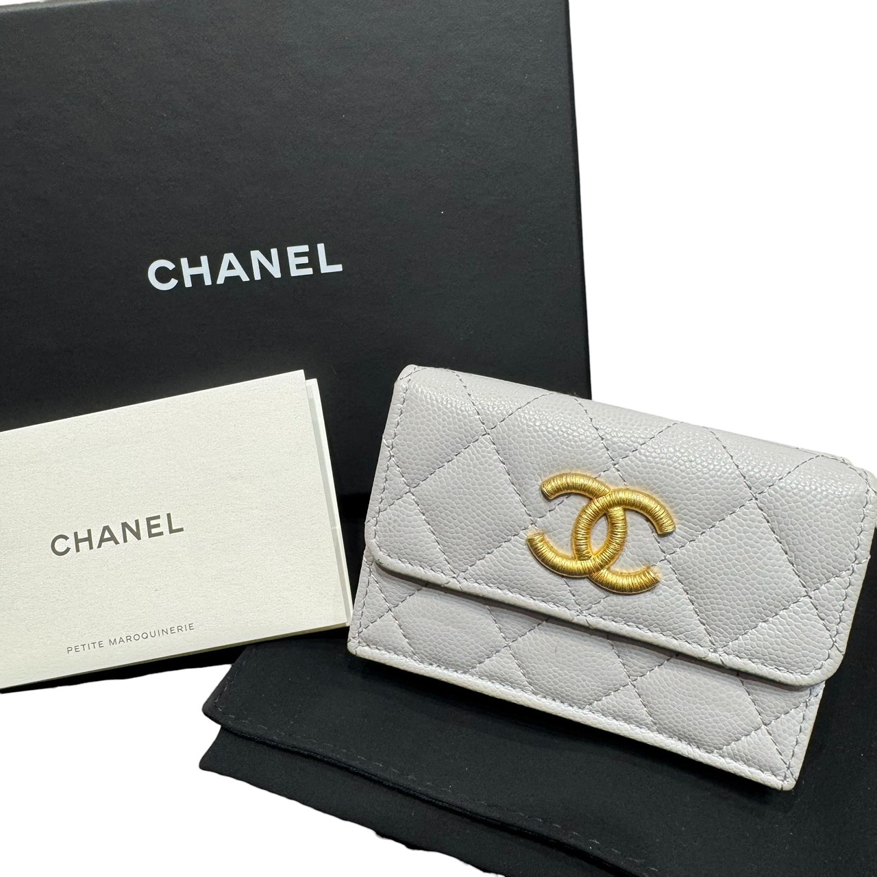 スモールフラップウォレット キャビア ライトグレー ココマーク ゴールド金具 三つ折り財布 GPN2LH13