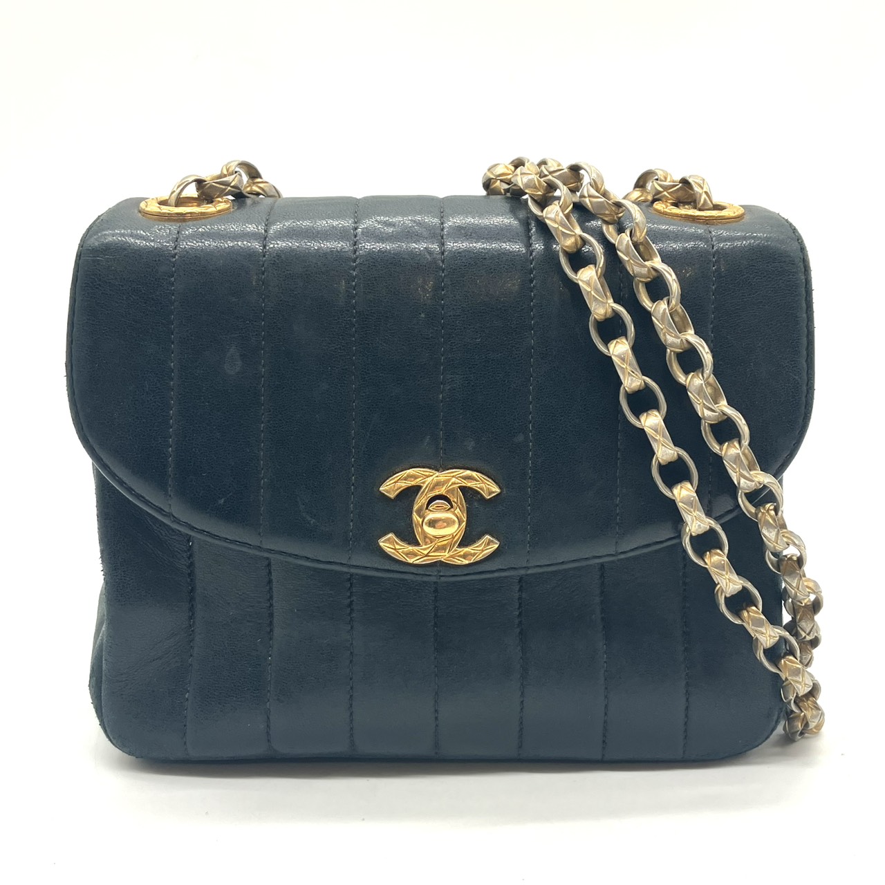 マドモアゼル 17.5cm Wチェーンショルダーバッグ ラムスキン ノワール シールなし