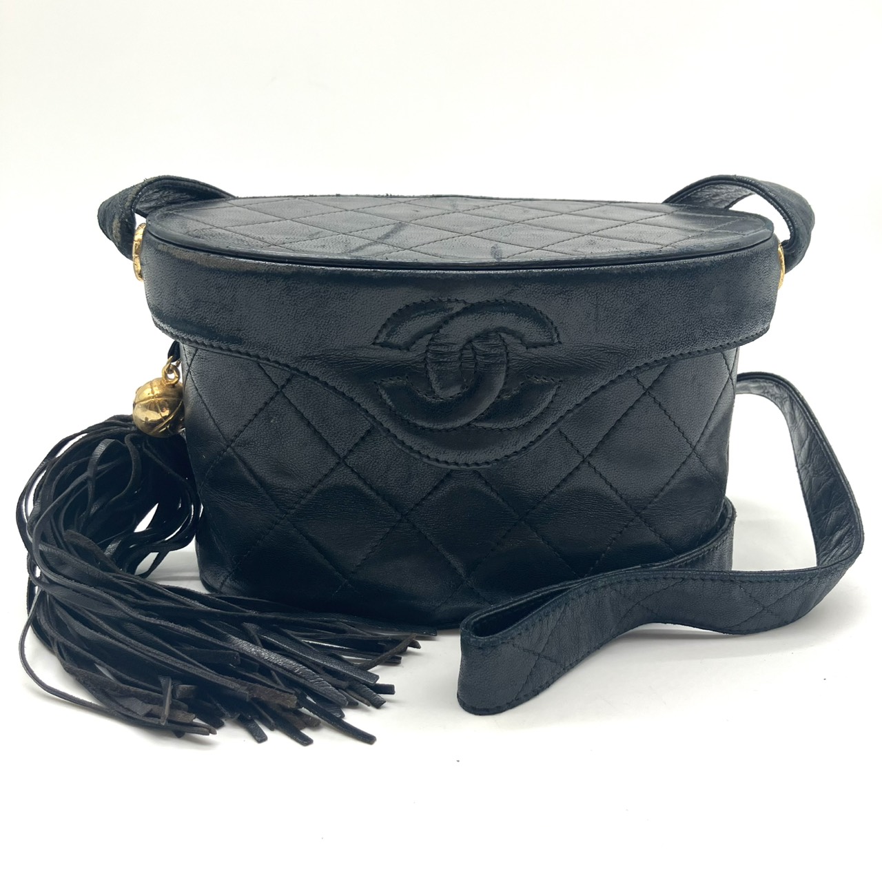 ショルダーバッグ バニティ タッセルフリンジ ラムスキン ノワール シールなし