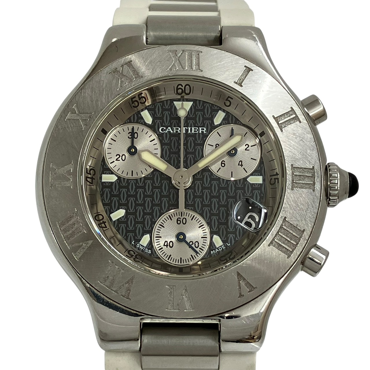 マスト21 クロノスカフ Qz SS 白ラバーベルト 黒文字盤 2424 稼働品