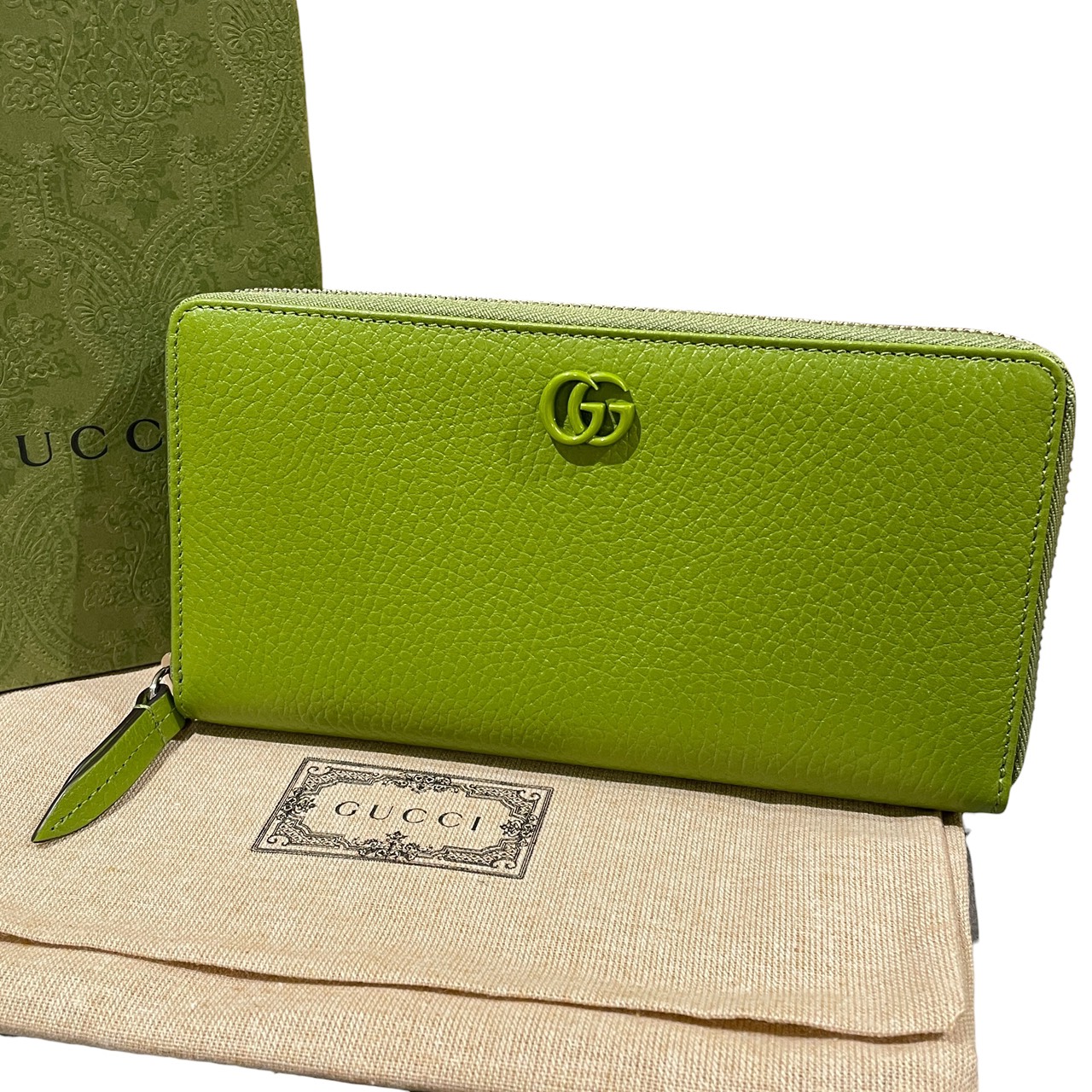 美品 GG マーモントレザー ジップアラウンドウォレット グリーン系 ラウンドファスナー長財布
