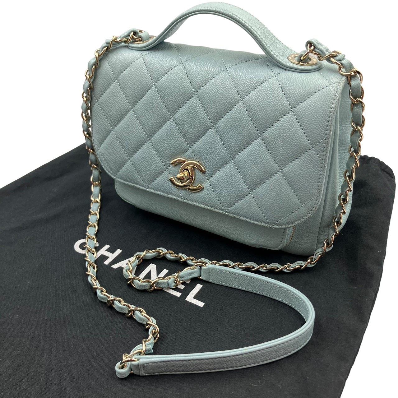 キャビアスキン ポケット 2WAY チェーン ハンドバッグ ブルー系 N2U1CP1L