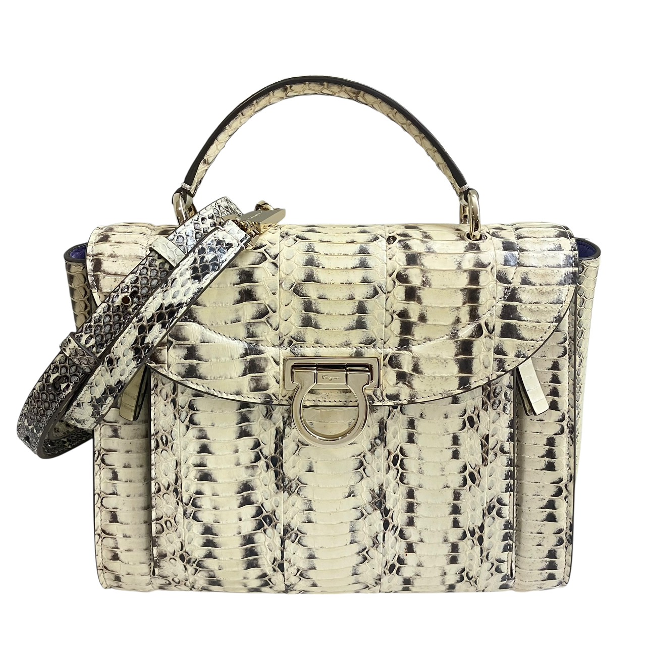 ガンチーニ 2WAYハンドバッグ パイソン型押 レザー ベージュ系 RM-21G953