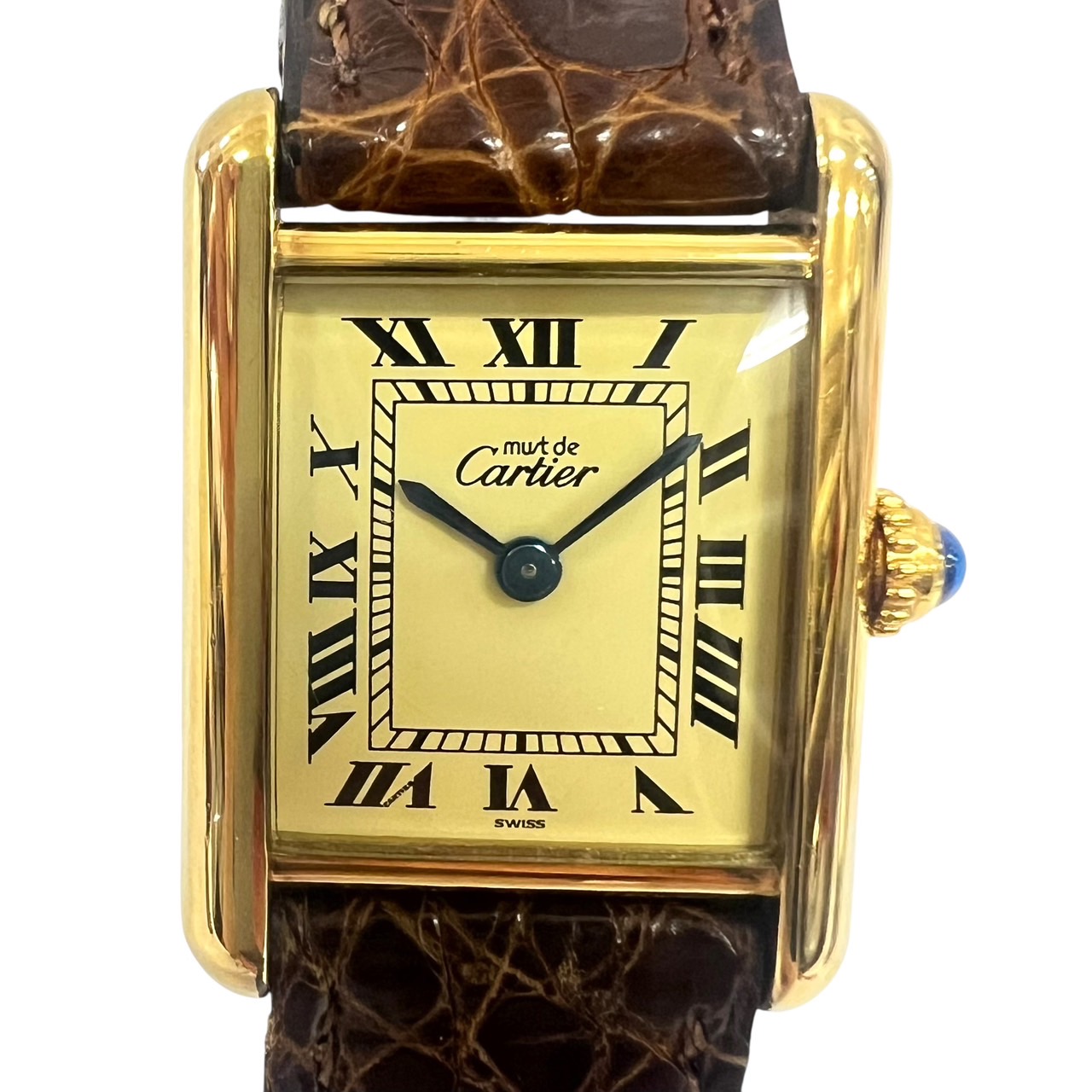 【クォーツ】マストタンク ヴェルメイユSM アイボリー文字盤 スクエア 2針 純正革ベルト SV925 レディース腕時計