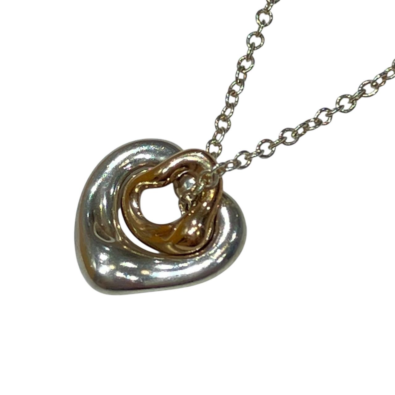 オープンハート ネックレス K18RG 750 シルバー925 ダブルハート ツイン 2.4g