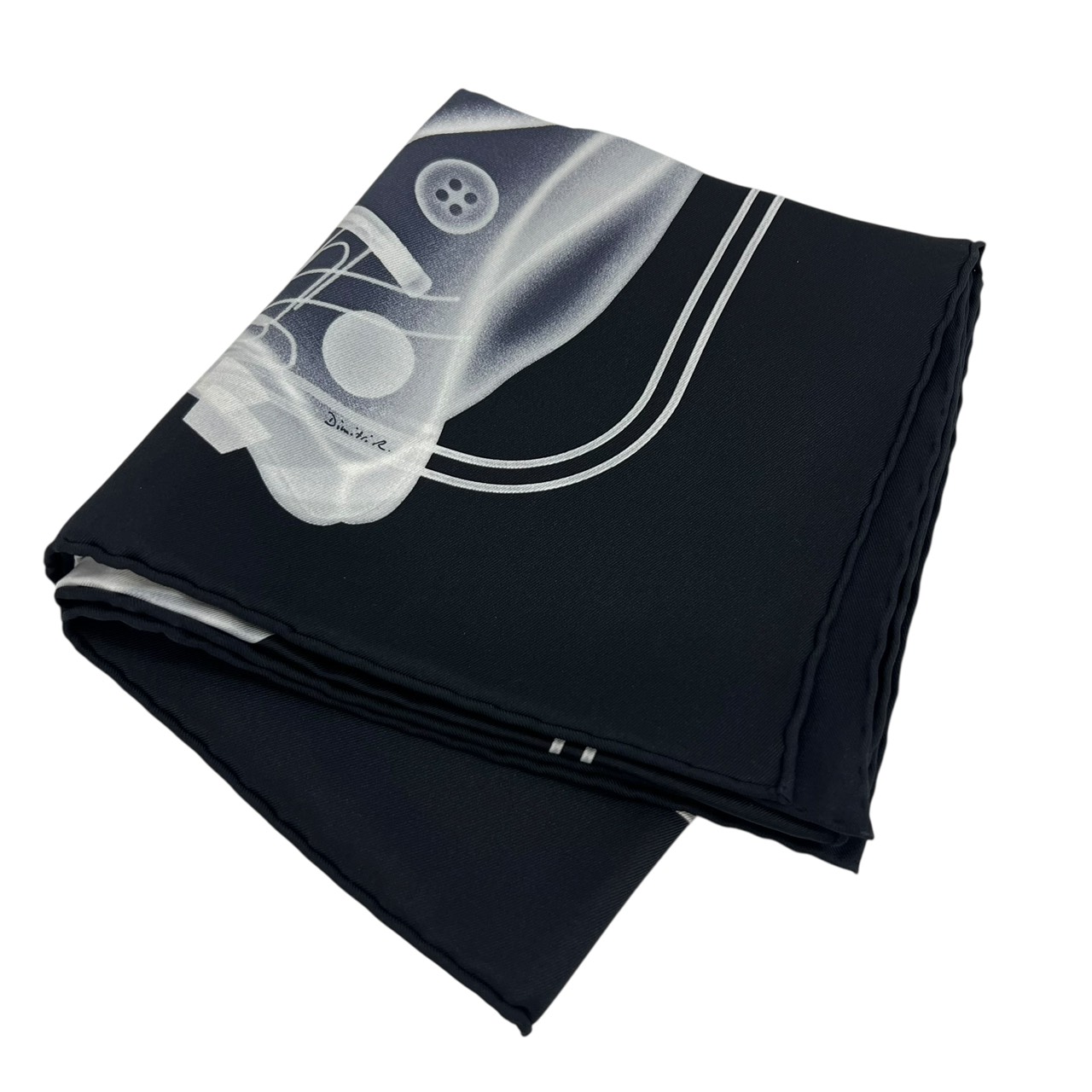 カレ65 大判シルクスカーフ プリーズチェックイン ブラック×ホワイト系 美品