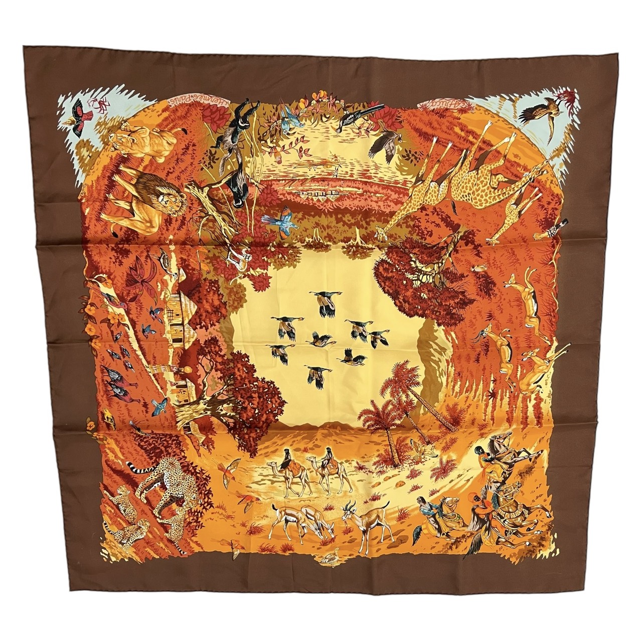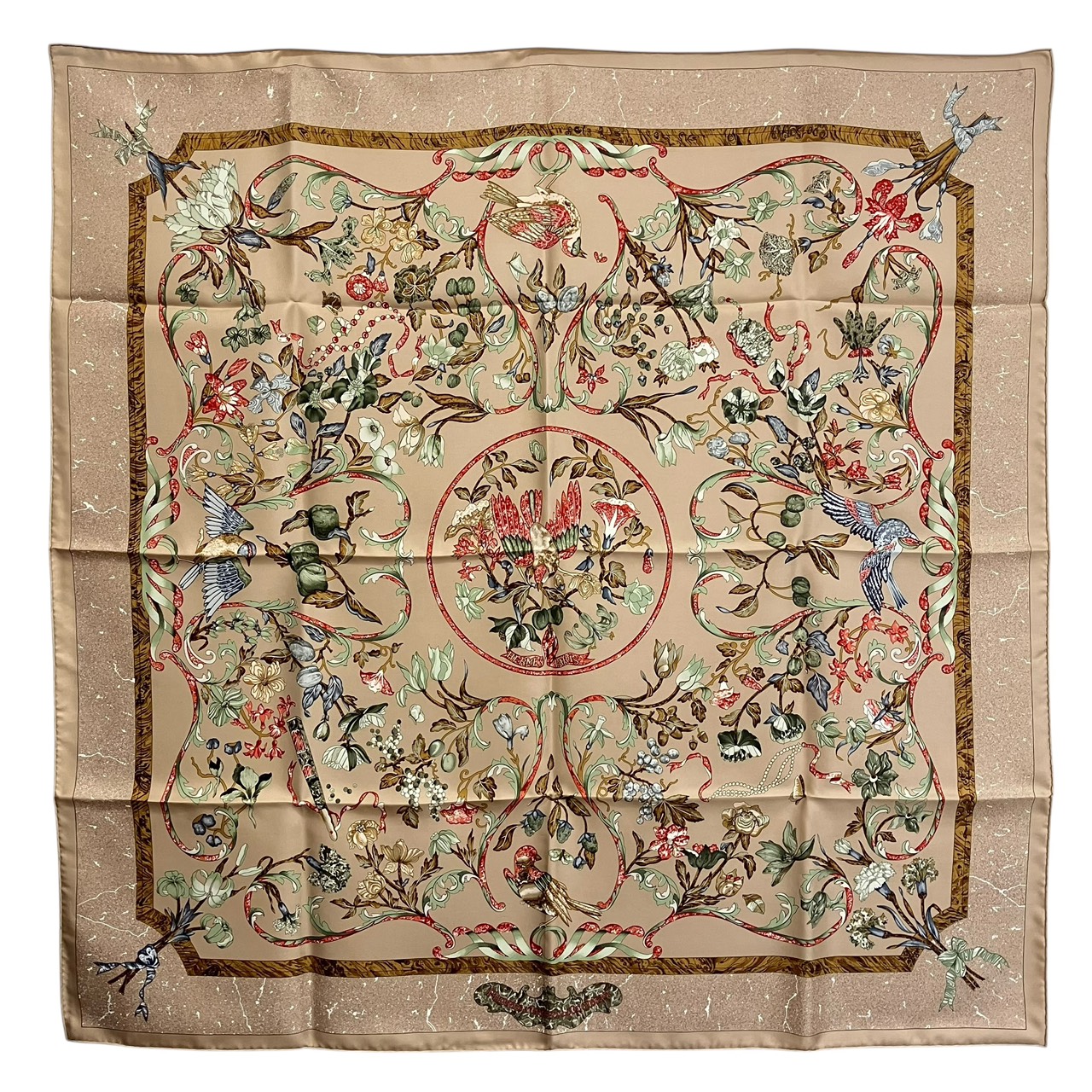 カレ90 スカーフ PIERRES d' ORIENT et d' OCCIDENT 東洋の石と西洋の石細工 シルク ベージュ系